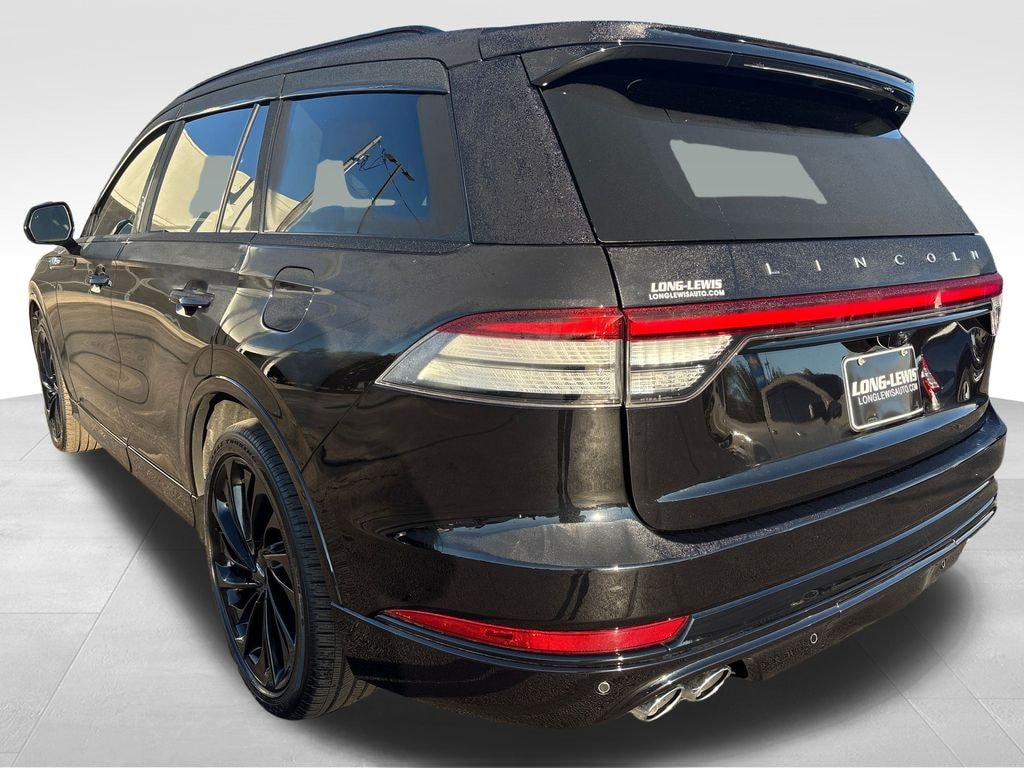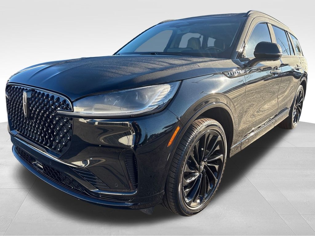 2025 Lincoln Aviator Reserve Infinite Black Metallic Clearcoat Reserve AWD 10-Speed Automatic 3.0L V6 14 Speakers, 30-Way Perfect Position Seats w/Active Motion, 3rd row seats: split-bench, 4-Wheel Disc Brakes, 40/Mini Console/40 Dual Captain's Chairs, ABS brakes, Adaptive Dynamic Bending Lighting, Adaptive Pixel LED Headlamps, Adaptive suspension, Advanced Heads-Up Display, Air Conditioning, Alloy wheels, AM/FM radio: SiriusXM, Apple CarPlay/Android Auto, Audio memory, Auto Air Refresh, Auto High-beam Headlights, Auto-dimming door mirrors, Auto-dimming Rear-View mirror, Automatic temperature control, Black Exterior Elements, Body-Color Exterior Elements, Brake assist, Bumpers: body-color, Compass, Delay-off headlights, Driver door bin, Driver vanity mirror, Dual front impact airbags, Dual front side impact airbags, Electronic Stability Control, Emergency communication system: 911 Assist, Equipment Group 200A, Four wheel independent suspension, Front anti-roll bar, Front Bucket Seats, Front Center Armrest, Front dual zone A/C, Front reading lights, Full Rear Console, Fully automatic headlights, Garage door transmitter, Genuine wood console insert, Genuine wood dashboard insert, Heads-Up Display, Heated & Ventilated Rear Seats, Heated door mirrors, Heated front seats, Heated steering wheel, HVAC memory, Illuminated entry, Illuminated Lincoln Star in Grille, Illumination Package, Jet Appearance Package, Knee airbag, Leather steering wheel, Lincoln BlueCruise Equipped (4-Years Included), Lincoln Digital Experience, Lincoln Dynamic Signature Lighting, Low tire pressure warning, Luxury Package, Memory seat, Navigation system: Connected Navigation (1-year trial), Occupant sensing airbag, Outside temperature display, Overhead airbag, Overhead console, Panic alarm, Passenger door bin, Passenger vanity mirror, Power door mirrors, Power driver seat, Power Liftgate, Power moonroof: Panoramic Vista Roof, Power passenger seat, Power steering, Power windows, Premium Lthr Heated/Ventilated Fnt Captain's Chairs, Radio data system, Radio: Revel Audio System w/14 Speakers, Radio: Revel Ultima 3D Audio System w/28 Speakers, Rain sensing wipers, Rear air conditioning, Rear anti-roll bar, Rear audio controls, Rear dual zone A/C, Rear reading lights, Rear window defroster, Rear window wiper, Remote keyless entry, Security system, SiriusXM, Speed control, Speed Dependent Lighting, Speed-Sensitive Wipers, Split folding rear seat, Spoiler, Steering wheel memory, Steering wheel mounted A/C controls, Steering wheel mounted audio controls, Tachometer, Telescoping steering wheel, Tilt steering wheel, Traction control, Trip computer, Turn signal indicator mirrors, Variably intermittent wipers, Ventilated front seats, Wheels: 21" Bright-Machined Aluminum, Wheels: 22" Black Aluminum w/Adaptive Suspension, Wireless Charging Pad.