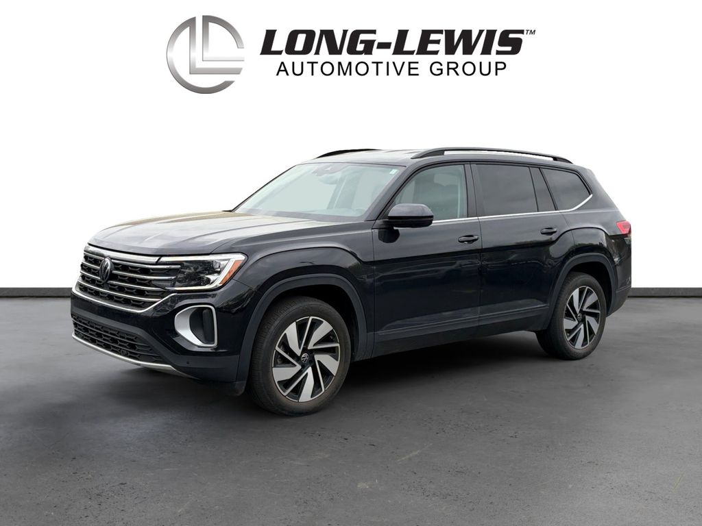2024 Volkswagen Atlas 2.0T SE w/Technology Certified. Deep Black Pearl 2.0T SE w/Technology FWD 8-Speed Automatic with Tiptronic 2.0L TSI Volkswagen Certified, 3.60 Axle Ratio, 3rd row seats: split-bench, 4-Wheel Disc Brakes, 6 Speakers, ABS brakes, Air Conditioning, Alloy wheels, AM/FM radio: SiriusXM with 360L, Auto-dimming Rear-View mirror, Automatic temperature control, Brake assist, Bumpers: body-color, Compass, Delay-off headlights, Driver door bin, Driver vanity mirror, Dual front impact airbags, Dual front side impact airbags, Electronic Stability Control, Emergency communication system: VW Car-Net Safe & Secure 5-year, Exterior Parking Camera Rear, Four wheel independent suspension, Front anti-roll bar, Front Bucket Seats, Front Center Armrest, Front dual zone A/C, Front fog lights, Front reading lights, Fully automatic headlights, Heated door mirrors, Heated front seats, Heated steering wheel, Heated/Actively Ventilated Front Bucket Seats, Illuminated entry, Low tire pressure warning, Occupant sensing airbag, Outside temperature display, Overhead airbag, Overhead console, Panic alarm, Passenger door bin, Passenger vanity mirror, Perforated V-Tex Leatherette Seating Surfaces, Power door mirrors, Power driver seat, Power Liftgate, Power steering, Power windows, Radio data system, Radio: MIB3 Composition Media, Rain sensing wipers, Rear air conditioning, Rear anti-roll bar, Rear reading lights, Rear seat center armrest, Rear window defroster, Rear window wiper, Remote keyless entry, Security system, Speed control, Speed-sensing steering, Split folding rear seat, Spoiler, Standard Suspension, Steering wheel mounted audio controls, Tachometer, Telescoping steering wheel, Tilt steering wheel, Traction control, Trip computer, Turn signal indicator mirrors, Variably intermittent wipers, Ventilated front seats, Wheels: 20" 2-Tone Machined Alloy.