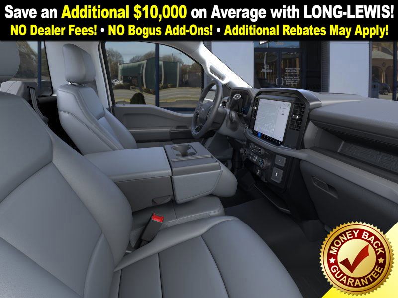 Oxford White 2025 Ford F-150 XL FLT RWD 10-Speed Automatic 2.7L V6 EcoBoost 4 Speakers, 4-Wheel Disc Brakes, ABS brakes, Air Conditioning, AM/FM radio: SiriusXM with 360L, Auto High-beam Headlights, Brake assist, Cloth 40/20/40 Front Seat, Compass, Delay-off headlights, Driver door bin, Dual front impact airbags, Dual front side impact airbags, Electronic Stability Control, Emergency communication system: SYNC 4 911 Assist, Front anti-roll bar, Front Center Armrest, Front License Plate Bracket, Front reading lights, Front wheel independent suspension, Fully automatic headlights, GVWR: 6,220 lb Payload Package, Heated door mirrors, Illuminated entry, Low tire pressure warning, Occupant sensing airbag, Outside temperature display, Overhead airbag, Overhead console, Panic alarm, Passenger door bin, Passenger vanity mirror, Power door mirrors, Power steering, Power windows, Radio data system, Radio: AM/FM Stereo w/SiriusXM 360L, Rear Parking Sensors, Rear step bumper, Remote keyless entry, Security system, Speed control, Steering wheel mounted audio controls, SYNC 4 w/Enhanced Voice Recognition, Tachometer, Telescoping steering wheel, Tilt steering wheel, Traction control, Trip computer, Variably intermittent wipers, Vinyl 40/20/40 Front Seat, Voltmeter, Wheels: 17" Silver Steel.