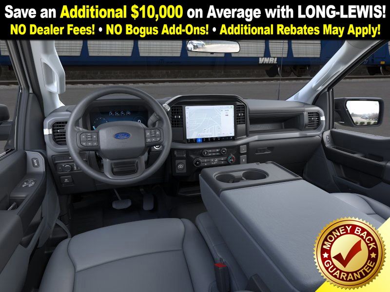 Oxford White 2025 Ford F-150 XL FLT RWD 10-Speed Automatic 2.7L V6 EcoBoost 4 Speakers, 4-Wheel Disc Brakes, ABS brakes, Air Conditioning, AM/FM radio: SiriusXM with 360L, Auto High-beam Headlights, Brake assist, Cloth 40/20/40 Front Seat, Compass, Delay-off headlights, Driver door bin, Dual front impact airbags, Dual front side impact airbags, Electronic Stability Control, Emergency communication system: SYNC 4 911 Assist, Front anti-roll bar, Front Center Armrest, Front License Plate Bracket, Front reading lights, Front wheel independent suspension, Fully automatic headlights, GVWR: 6,220 lb Payload Package, Heated door mirrors, Illuminated entry, Low tire pressure warning, Occupant sensing airbag, Outside temperature display, Overhead airbag, Overhead console, Panic alarm, Passenger door bin, Passenger vanity mirror, Power door mirrors, Power steering, Power windows, Radio data system, Radio: AM/FM Stereo w/SiriusXM 360L, Rear Parking Sensors, Rear step bumper, Remote keyless entry, Security system, Speed control, Steering wheel mounted audio controls, SYNC 4 w/Enhanced Voice Recognition, Tachometer, Telescoping steering wheel, Tilt steering wheel, Traction control, Trip computer, Variably intermittent wipers, Vinyl 40/20/40 Front Seat, Voltmeter, Wheels: 17" Silver Steel.