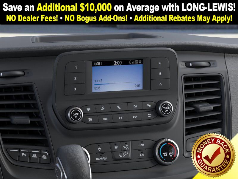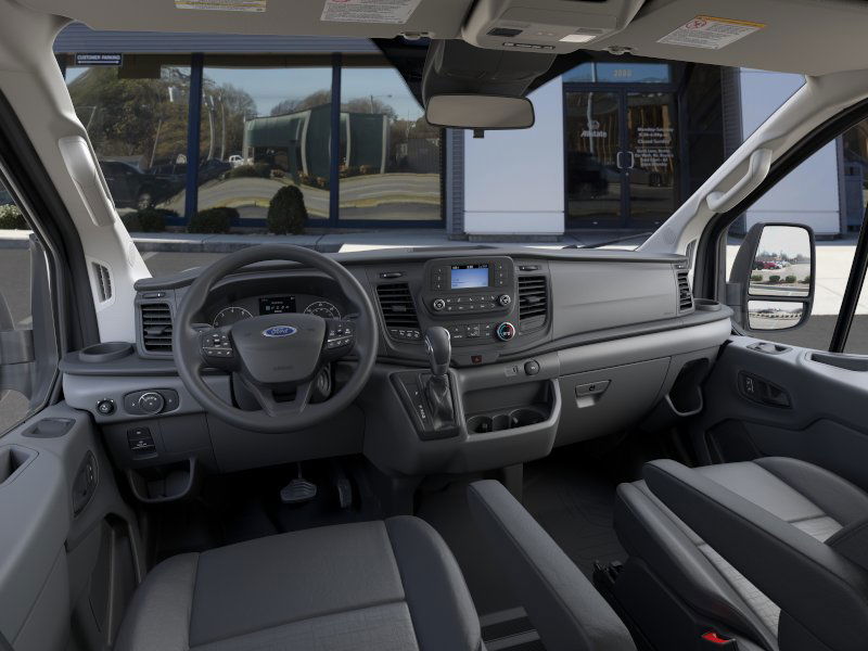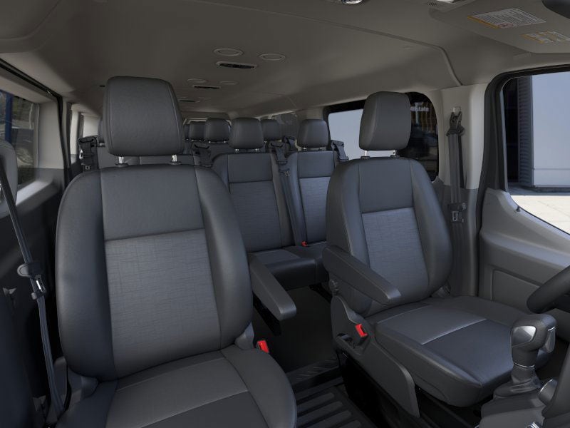 Oxford White 2025 Ford Transit-350 XL FLT RWD 10-Speed Automatic with Overdrive 3.5L V6 Flex Fuel 15-Passenger Seats, 2 Additional Keys (4 Total), 3.73 Axle Ratio, 3rd row seats: split-bench, 4-Wheel Disc Brakes, 4th-Row Bench Seat, 8 Speakers, ABS brakes, Air Conditioning, AM/FM radio, Auto High-beam Headlights, Brake assist, Cloth Front Bucket Seats, Dark Palazzo Gray Cloth Bucket Seats, Delay-off headlights, Driver door bin, Driver vanity mirror, Driver's Seat Mounted Armrest, Dual front impact airbags, Dual front side impact airbags, Electronic Air Temperature Control, Electronic Stability Control, Front All-Weather Floor Mats, Front anti-roll bar, Front Bucket Seats, Front Fog Lamps, Front License Plate Bracket, Front reading lights, Front Sensing System, Front wheel independent suspension, Fully automatic headlights, Illuminated entry, Large Center Console, Low tire pressure warning, Midship Extended Range Fuel Tank (31 Gallons), Occupant sensing airbag, Overhead airbag, Panic alarm, Passenger door bin, Passenger Running Board, Passenger seat mounted armrest, Passenger vanity mirror, Power door mirrors, Power steering, Power windows, Privacy Glass, Radio: AM/FM Stereo w/SYNC 4 & Nav, Rain sensing wipers, Rear air conditioning, Rear window defroster, Rear-Window Defroster, Remote keyless entry, Reverse Sensing System, Side Sensing System, Speed control, Steering wheel mounted audio controls, Tachometer, Telescoping steering wheel, Tilt steering wheel, Traction control, Variably intermittent wipers, Wheels: 16" Steel w/Full Silver Cover.