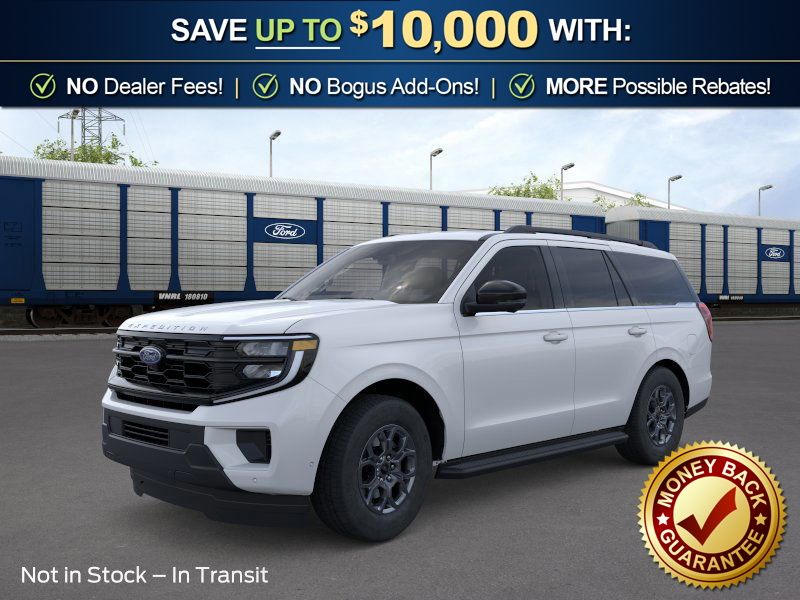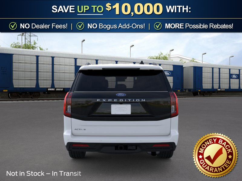 Oxford White 2026 Ford Expedition Active FLT 4WD 10-Speed Automatic EcoBoost 3.5L V6 GTDi DOHC 24V Twin Turbocharged 4WD, 3.73 Axle Ratio, 3rd row seats: split-bench, 4-Wheel Disc Brakes, 6 Speakers, ABS brakes, ActiveX-Trimmed Front Heated Captain's Chairs, Air Conditioning, Alloy wheels, AM/FM radio: SiriusXM with 360L, Apple CarPlay/Android Auto, Auto High-beam Headlights, Auto-dimming Rear-View mirror, Automatic temperature control, Brake assist, Bumpers: body-color, Cloth Front Captain's Chairs, Compass, Delay-off headlights, Driver door bin, Driver vanity mirror, Dual front impact airbags, Dual front side impact airbags, Electronic Stability Control, Emergency communication system: 911 Assist, Exterior Parking Camera Rear, Ford Connectivity Package (1-Year Included), Ford Digital Experience, Four wheel independent suspension, Front and 2nd Rows Floor Liners Without Carper Mats, Front anti-roll bar, Front Bucket Seats, Front Center Armrest, Front dual zone A/C, Front License Plate Bracket, Front reading lights, Fully automatic headlights, Heated door mirrors, Illuminated entry, Low tire pressure warning, Navigation System, Occupant sensing airbag, Outside temperature display, Overhead airbag, Overhead console, Panic alarm, Passenger door bin, Passenger vanity mirror, Power door mirrors, Power driver seat, Power passenger seat, Power steering, Power windows, Radio data system, Radio: AM/FM Stereo with MP3 Capable, Rear air conditioning, Rear anti-roll bar, Rear reading lights, Rear window defroster, Rear window wiper, Reclining 3rd row seat, Remote keyless entry, Security system, SiriusXM with 360L, Speed control, Speed-sensing steering, Speed-Sensitive Wipers, Split folding rear seat, Spoiler, Steering wheel mounted audio controls, Tachometer, Telescoping steering wheel, Tilt steering wheel, Traction control, Trip computer, Variably intermittent wipers, Voltmeter, Wheels: 18" x 8.5" Dark Alloy Painted Aluminum, 4WD.