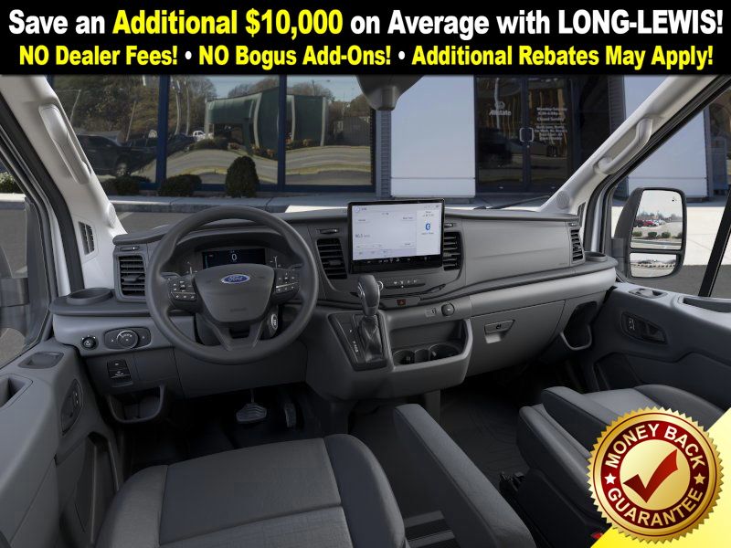 Oxford White 2026 Ford Transit-250 FLT RWD 10-Speed Automatic with Overdrive 3.5L V6 Flex Fuel 4 Speakers, 4-Wheel Disc Brakes, ABS brakes, Air Conditioning, AM/FM radio, AM/FM Stereo, Apple CarPlay/Android Auto, Auto High-beam Headlights, Brake assist, Cloth Front Bucket Seats, Dark Palazzo Gray Vinyl Bucket Seats, Delay-off headlights, Driver door bin, Driver's Seat Mounted Armrest, Dual front impact airbags, Dual front side impact airbags, Electronic Stability Control, Emergency communication system: 911 Assist, Engine Block Heater, Exterior Parking Camera Rear, Ford Connectivity Package (1-Year Included), Front anti-roll bar, Front Bucket Seats, Front reading lights, Front wheel independent suspension, Fully automatic headlights, Illuminated entry, Low tire pressure warning, Navigation system: Connected Navigation, Occupant sensing airbag, Overhead airbag, Panic alarm, Passenger cancellable airbag, Passenger door bin, Power door mirrors, Power steering, Power windows, Remote keyless entry, Speed control, Steering wheel mounted audio controls, SYNC 4, Tachometer, Telescoping steering wheel, Tilt steering wheel, Traction control, Variably intermittent wipers, Vinyl Front Bucket Seats, Wheels: 16" Silver Steel w/Black Hubcap.