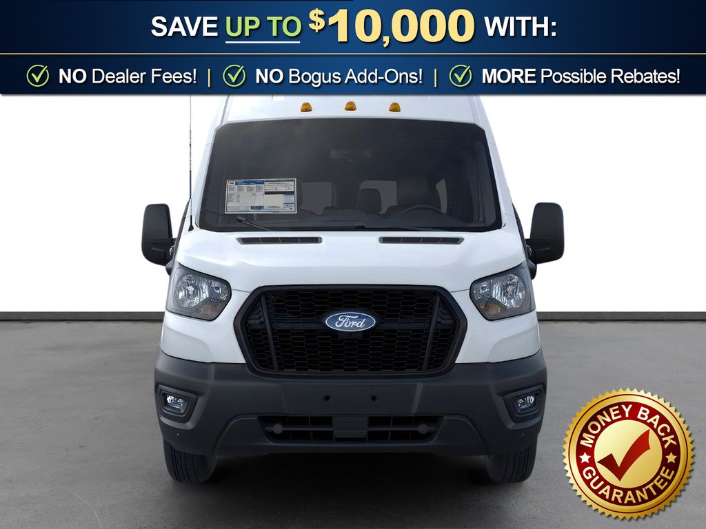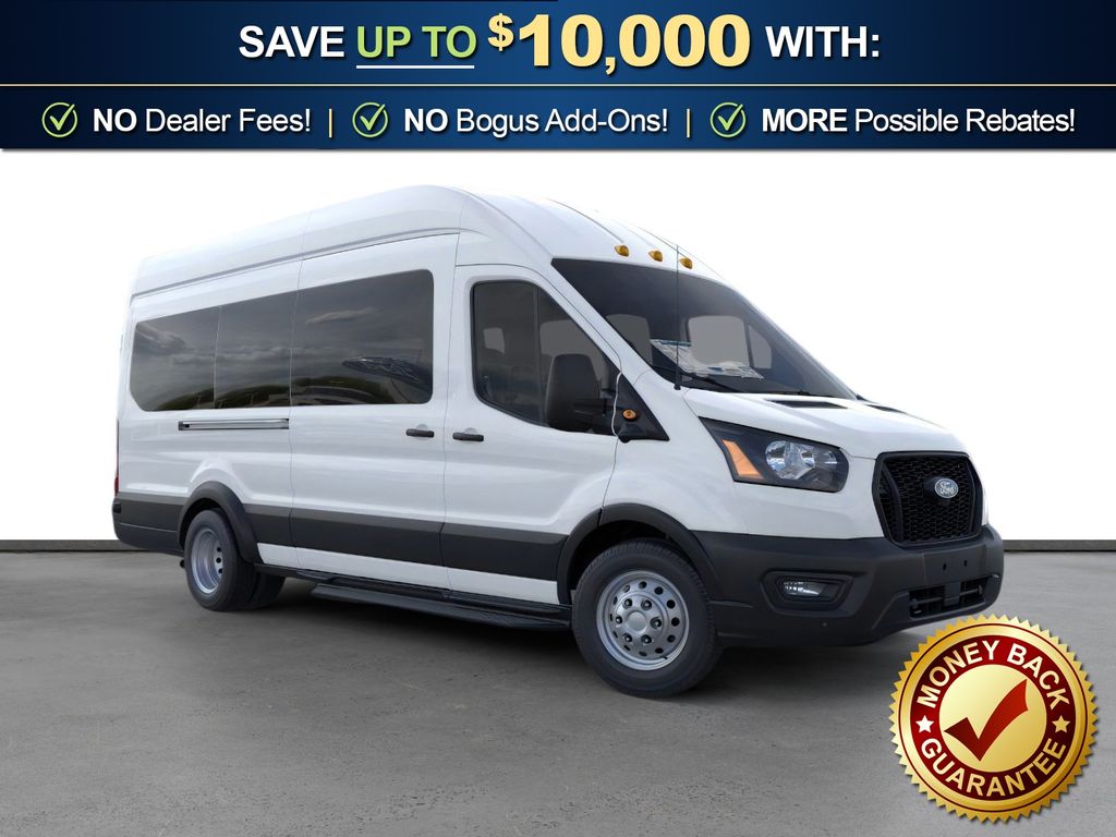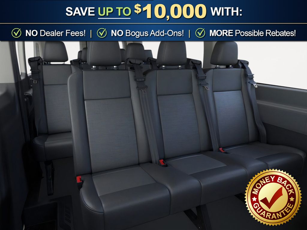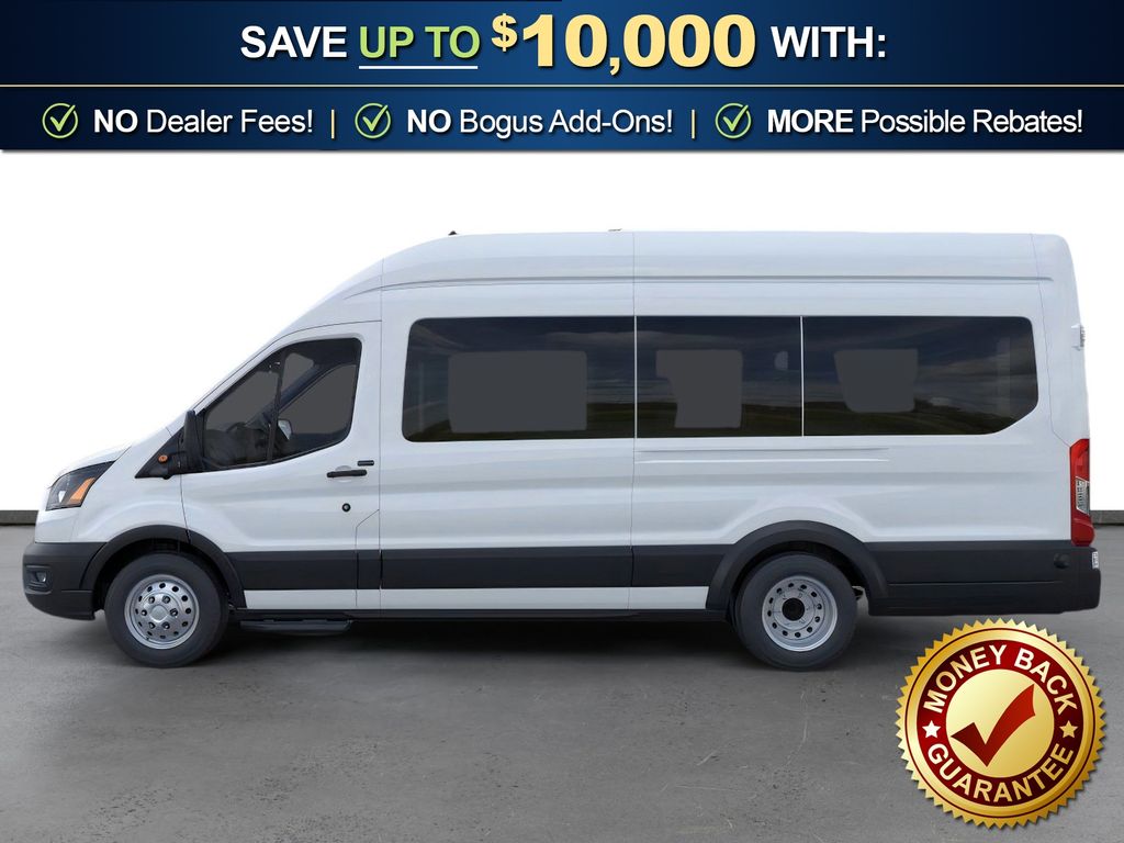 Oxford White 2026 Ford Transit-350 XL FLT RWD 10-Speed Automatic with Overdrive EcoBoost 3.5L V6 GTDi DOHC 24V Twin Turbocharged 2 Additional Keys (4 Total), 253-Degree Rear Door Opening, 3.73 Limited-Slip Axle Ratio, 3rd row seats: split-bench, 4-Wheel Disc Brakes, 4th-Row Bench Seat, 5th row bench seat, 8 Speakers, ABS brakes, Air Conditioning, Apple CarPlay/Android Auto, Auto High-beam Headlights, Back Up Alarm, Black High-Intensity Discharge (HID) Headlamps, Brake assist, Cloth Front Bucket Seats, Delay-off headlights, Driver door bin, Driver vanity mirror, Driver's Seat Mounted Armrest, Dual front impact airbags, Dual front side impact airbags, Dual rear wheels, Electronic Stability Control, Emergency communication system: 911 Assist, Extended Length Passenger Running Board, Ford Connectivity Package (1-Year Included), Frame Mounted Hitch Receiver, Front anti-roll bar, Front Bucket Seats, Front License Plate Bracket, Front Overhead Shelf, Front reading lights, Front wheel independent suspension, Heavy-Duty Trailer Tow Package, Illuminated entry, Keyless Entry Keypad, Large Center Console, Low tire pressure warning, Midship Extended Range Fuel Tank (31 Gallons), Navigation system: Connected Navigation, Occupant sensing airbag, Overhead airbag, Panic alarm, Passenger door bin, Passenger seat mounted armrest, Passenger vanity mirror, Power door mirrors, Power steering, Power windows, Rain sensing wipers, Rear air conditioning, Rear window defroster, Remote keyless entry, Speed control, Steering wheel mounted audio controls, SYNC 4, Tachometer, Telescoping steering wheel, Tilt steering wheel, Traction control, Trailer Brake Controller, Variably intermittent wipers, Wheels: 16" Heavy-Duty Silver Steel with Silver Hubcaps.