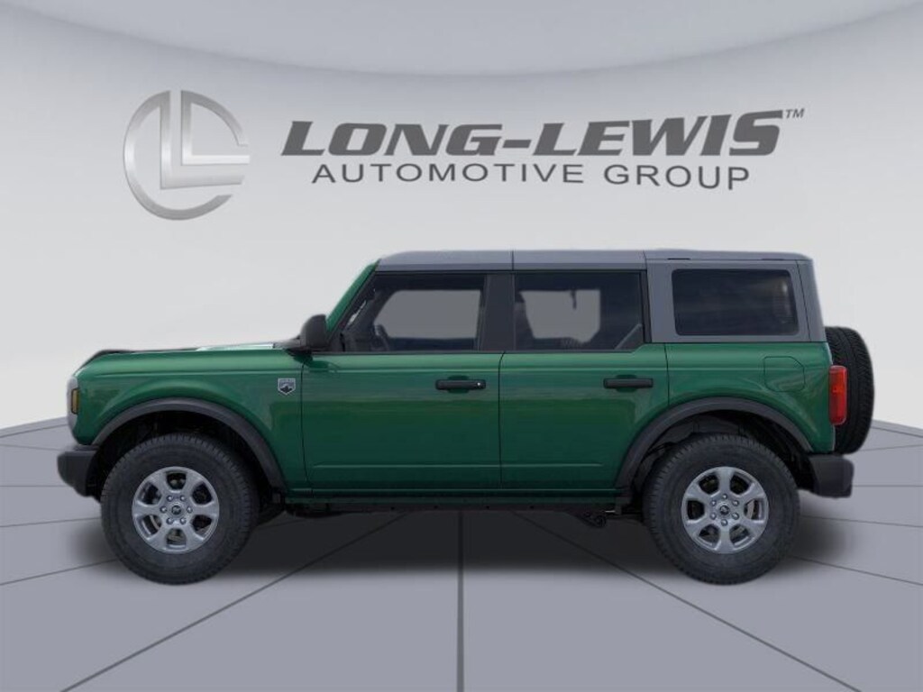 Eruption Green Metallic 2025 Ford Bronco Big Bend 4WD 10-Speed Automatic 2.3L EcoBoost I-4 4-Wheel Disc Brakes, 4.46 Axle Ratio, 7 Speakers, ABS brakes, Air Conditioning, Alloy wheels, AM/FM radio: SiriusXM with 360L, AM/FM Stereo, Auto High-beam Headlights, Brake assist, Carbonized Gray Molded-In-Color Hard Top, Cloth Bucket Seats, Compass, Delay-off headlights, Driver door bin, Driver vanity mirror, Dual front impact airbags, Dual front side impact airbags, Electronic Stability Control, Emergency communication system: 911 Assist, Exterior Parking Camera Rear, Front anti-roll bar, Front Bucket Seats, Front Center Armrest, Front License Plate Bracket, Front reading lights, Front wheel independent suspension, Fully automatic headlights, Hard Top Sound Deadening Headliner, Heated door mirrors, Illuminated entry, Integrated roll-over protection, Leather Shift Knob, Low tire pressure warning, Occupant sensing airbag, Outside temperature display, Overhead airbag, Overhead console, Panic alarm, Passenger door bin, Passenger vanity mirror, Power door mirrors, Power steering, Power windows, Radio data system, Rear-Window Defroster & Washer, Remote keyless entry, Security system, SiriusXM w/360L, Speed control, Split folding rear seat, Steering wheel mounted audio controls, SYNC 4, Tachometer, Telescoping steering wheel, Tilt steering wheel, Traction control, Trip computer, Variably intermittent wipers, Wheels: 17" Carbonized Gray-Painted Aluminum.