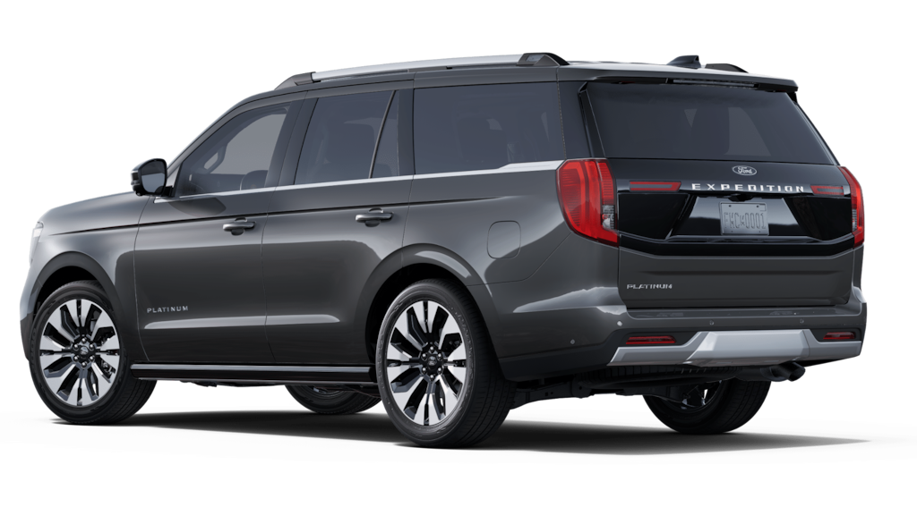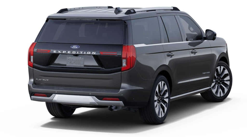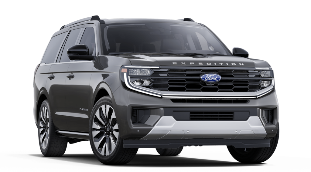 Dark Matter Gray Metallic 2025 Ford Expedition Platinum 4WD 10-Speed Automatic 3.5L V6 4WD, 10 Speakers, 2nd Row Power-Folding Captain's Chairs, 3.73 Axle Ratio, 3rd row seats: split-bench, 4-Wheel Disc Brakes, ABS brakes, Adjustable pedals, Air Conditioning, Alloy wheels, AM/FM radio: SiriusXM with 360L, Apple CarPlay/Android Auto, Auto High-beam Headlights, Auto-dimming door mirrors, Auto-dimming Rear-View mirror, Automatic temperature control, Black Headlamp Bezel w/Satin Trim Applique, BlueCruise Equipped (1-Year Plan), Brake assist, Bumpers: body-color, Carbon Black Front Bumper w/Lit Grille Bar, Compass, Continuous Control Damping Suspension, Delay-off headlights, Driver door bin, Driver vanity mirror, Driver's Package, Dual front impact airbags, Dual front side impact airbags, Electronic Stability Control, Emergency communication system: 911 Assist, Engine Sound Enhancer, Exterior Parking Camera Rear, Four wheel independent suspension, Front anti-roll bar, Front Bucket Seats, Front Center Armrest, Front Door Scuff Plates w/Met Insert & Bright Rear, Front dual zone A/C, Front License Plate Bracket, Front reading lights, Fully automatic headlights, Garage door transmitter, Genuine wood dashboard insert, Genuine wood door panel insert, Heated & Ventilated Leather Front Captain's Chairs, Heated door mirrors, Heated front seats, Heated rear seats, Heated steering wheel, High Flow Exhaust System, Illuminated entry, Leather steering wheel, Low tire pressure warning, Memory seat, Multicontour Active Motion Lthr Frnt Captains Chairs, Navigation System, Occupant sensing airbag, Outside temperature display, Overhead airbag, Overhead console, Panic alarm, Passenger door bin, Passenger vanity mirror, Pedal memory, Platinum Ultimate Interior Package, Platinum Ultimate Package, Polished Stainless Steel Beltline Molding, Power door mirrors, Power driver seat, Power moonroof: Vista Roof, Power passenger seat, Power steering, Power windows, Radio data system, Radio: B&O Sound System by Bang & Olufsen, Radio: B&O Unleashed Sound System by Bang & Olufsen, Rain sensing wipers, Rear air conditioning, Rear anti-roll bar, Rear reading lights, Rear Seat Radio Controls, Rear Side Windows Laminated Glass, Rear window defroster, Rear window wiper, Reclining 3rd row seat, Remote keyless entry, Satin Aluminum Expedition Lettering On Side & Hood, Satin Aluminum Platinum Badge On Tailgate, Security system, Signature Grille Lighting, SiriusXM w/360L, Speed control, Speed-sensing steering, Speed-Sensitive Wipers, Split folding rear seat, Spoiler, Steering wheel memory, Steering wheel mounted audio controls, Tachometer, Telescoping steering wheel, Tilt steering wheel, Traction control, Trip computer, Turn signal indicator mirrors, Variably intermittent wipers, Ventilated front seats, Voltmeter, Wheels: 20" Ebony Bright Machined Aluminum, Wheels: 22" Ebony Bright Machined Face Aluminum, 4WD.