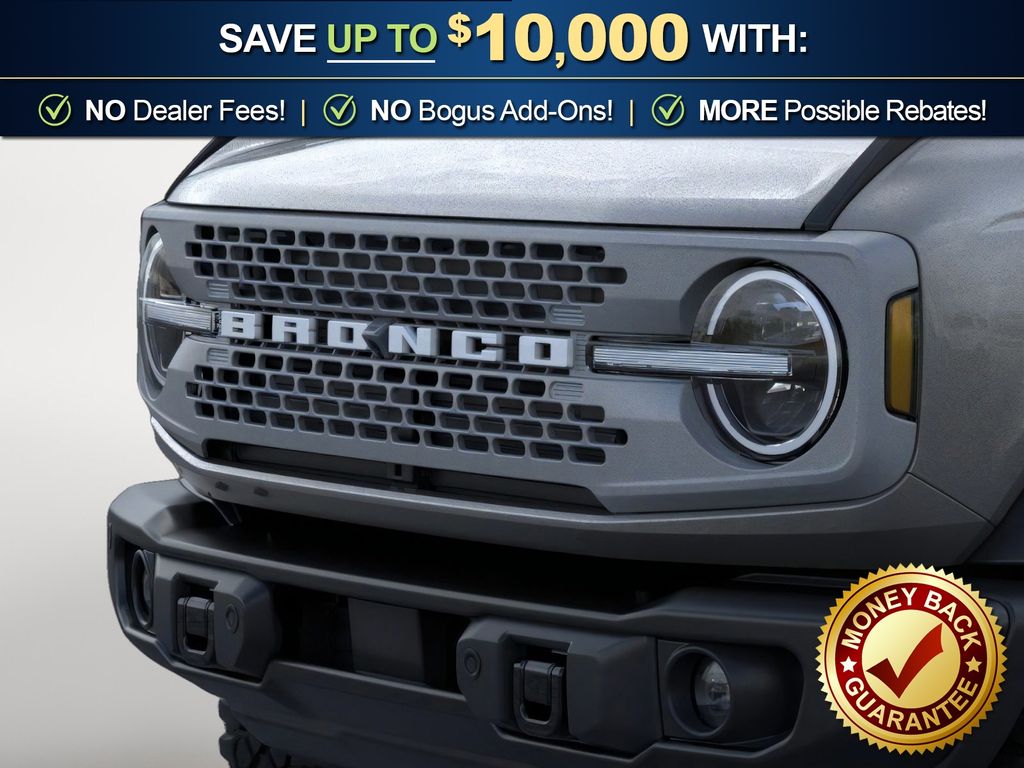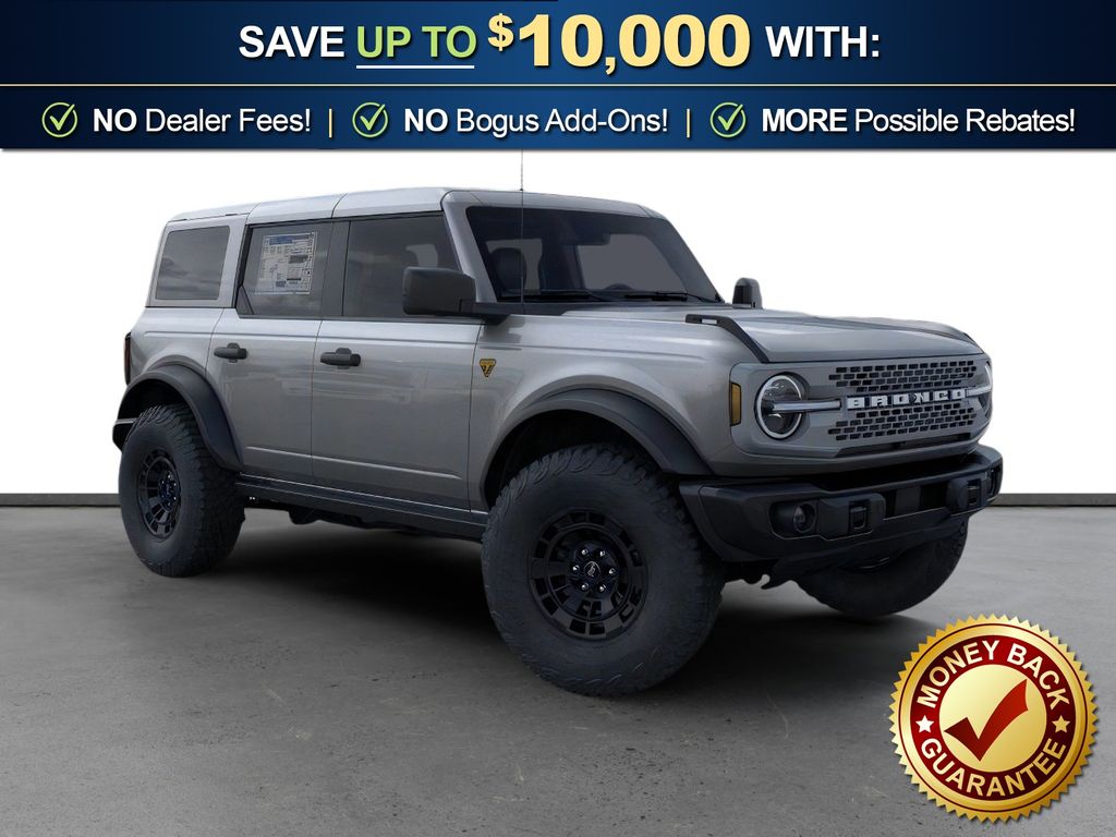Carbonized Gray Metallic 2026 Ford Bronco Badlands NFT 4WD 10-Speed Automatic 2.7L EcoBoost V6 4-Wheel Disc Brakes, 7 Speakers, ABS brakes, Air Conditioning, Alloy wheels, AM/FM radio: SiriusXM with 360L, AM/FM Stereo, Auto High-beam Headlights, Auto-dimming Rear-View mirror, Brake assist, Compass, Delay-off headlights, Driver door bin, Driver vanity mirror, Dual front impact airbags, Dual front side impact airbags, Electronic Stability Control, Emergency communication system: 911 Assist, Exterior Parking Camera Rear, Ford Connectivity Package (1-Year Included), Front anti-roll bar, Front Bucket Seats, Front Center Armrest, Front fog lights, Front License Plate Bracket, Front reading lights, Front Stabilizer Disconnect, Front wheel independent suspension, Fully automatic headlights, Hard Top Sound Deadening Headliner, Heated door mirrors, Heated front seats, High Clearance Suspension, Illuminated entry, Integrated roll-over protection, Leather Shift Knob, Leather-Trimmed/Vinyl Bucket Seats, Low tire pressure warning, Marine Grade Vinyl Heated Bucket Seats, Occupant sensing airbag, Outside temperature display, Overhead airbag, Overhead console, Painted Hard Top, Panic alarm, Passenger door bin, Passenger vanity mirror, Position-Sensitive Bilstein Shock Absorbers, Power door mirrors, Power steering, Power windows, Radio data system, Rear-Window Defroster and Washer, Remote keyless entry, Sasquatch Package, Security system, SiriusXM with 360L, Speed control, Split folding rear seat, Steering wheel mounted audio controls, SYNC 4, Tachometer, Telescoping steering wheel, Tilt steering wheel, Traction control, Trip computer, Variably intermittent wipers, Voltmeter, Wheels: 17" Carbonized Gray-Painted Aluminum, Wheels: 17" Matte Black Alloy.