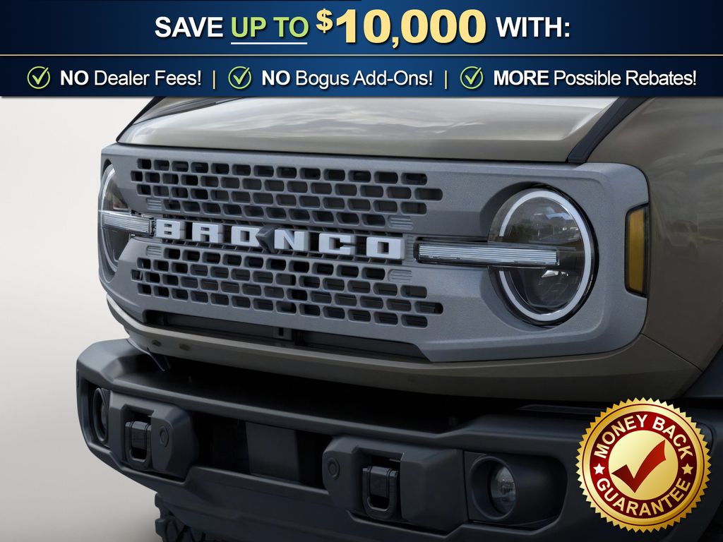 Marsh Gray 2026 Ford Bronco Badlands NFT 4WD 10-Speed Automatic 2.7L EcoBoost V6 4-Wheel Disc Brakes, 7 Speakers, ABS brakes, Air Conditioning, Alloy wheels, AM/FM radio: SiriusXM with 360L, AM/FM Stereo, Auto High-beam Headlights, Auto-dimming Rear-View mirror, Brake assist, Compass, Delay-off headlights, Driver door bin, Driver vanity mirror, Dual front impact airbags, Dual front side impact airbags, Electronic Stability Control, Emergency communication system: 911 Assist, Exterior Parking Camera Rear, Ford Connectivity Package (1-Year Included), Front anti-roll bar, Front Bucket Seats, Front Center Armrest, Front fog lights, Front License Plate Bracket, Front reading lights, Front Stabilizer Disconnect, Front wheel independent suspension, Fully automatic headlights, Hard Top Sound Deadening Headliner, Heated door mirrors, Heated front seats, High Clearance Suspension, Illuminated entry, Integrated roll-over protection, Leather Shift Knob, Leather-Trimmed/Vinyl Bucket Seats, Low tire pressure warning, Marine Grade Vinyl Heated Bucket Seats, Occupant sensing airbag, Outside temperature display, Overhead airbag, Overhead console, Painted Hard Top, Panic alarm, Passenger door bin, Passenger vanity mirror, Position-Sensitive Bilstein Shock Absorbers, Power door mirrors, Power steering, Power windows, Radio data system, Rear-Window Defroster and Washer, Remote keyless entry, Sasquatch Package, Security system, SiriusXM with 360L, Speed control, Split folding rear seat, Steering wheel mounted audio controls, SYNC 4, Tachometer, Telescoping steering wheel, Tilt steering wheel, Traction control, Trip computer, Variably intermittent wipers, Voltmeter, Wheels: 17" Black High Gloss-Painted Aluminum, Wheels: 17" Carbonized Gray-Painted Aluminum, Wheels: 17" Matte Black Alloy.