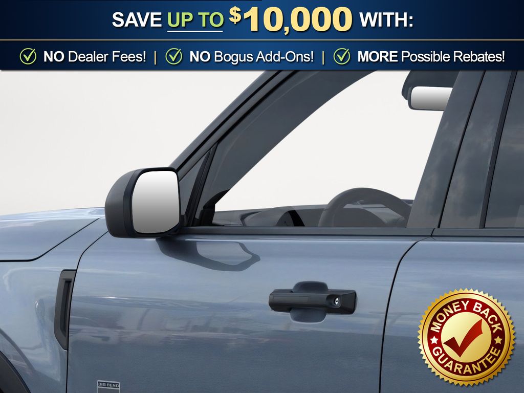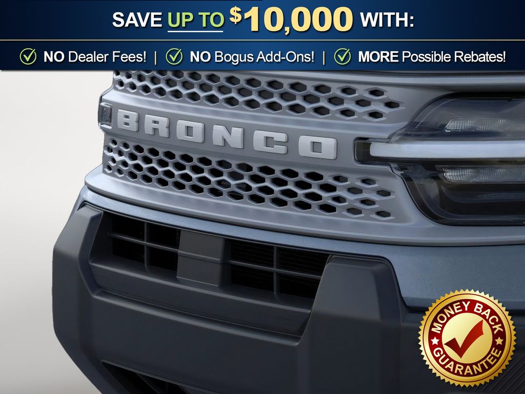 Azure Gray Metallic Tri-Coat 2026 Ford Bronco Sport Big Bend NFT 4WD 8-Speed Automatic 1.5L EcoBoost 4-Wheel Disc Brakes, 6 Speakers, ABS brakes, Air Conditioning, Alloy wheels, AM/FM radio: SiriusXM with 360L, AM/FM Stereo, Apple CarPlay/Android Auto, Auto High-beam Headlights, Automatic temperature control, Brake assist, Cloth with Easy-to-Clean Front Bucket Seats, Compass, Convenience Package, Delay-off headlights, Driver door bin, Driver vanity mirror, Dual front impact airbags, Dual front side impact airbags, Electronic Stability Control, Emergency communication system: SYNC 4 911 Assist, Exterior Parking Camera Rear, Ford Connectivity Package (1-Year Included), Four wheel independent suspension, Front anti-roll bar, Front Bucket Seats, Front Center Armrest, Front Driver/Passenger Seat Back Map Pockets, Front License Plate Bracket, Front reading lights, Fully automatic headlights, Heated 8-Way Power Driver's Seat, Heated door mirrors, Illuminated entry, Internet access capable: 5G Modem - Ford Connectivity Package, Knee airbag, LED Fog Lamps, Liftgate with Black BRONCO SPORT Lettering, Low tire pressure warning, Occupant sensing airbag, Outside temperature display, Overhead airbag, Overhead console, Panic alarm, Passenger door bin, Passenger vanity mirror, Power door mirrors, Power Moonroof, Power steering, Power windows, Premium Wrapped Steering Wheel, Radio data system, Rear anti-roll bar, Rear Parking Sensors, Rear reading lights, Rear seat center armrest, Rear window defroster, Rear window wiper, Remote keyless entry, Security system, SiriusXM with 360L, Speed control, Speed-sensing steering, Speed-Sensitive Wipers, Split folding rear seat, Steering wheel mounted audio controls, SYNC 4 with Enhanced Voice Recognition, Tachometer, Telescoping steering wheel, Tilt steering wheel, Traction control, Trip computer, Variably intermittent wipers, Wheels: 17" Carbonized Gray Painted Aluminum.