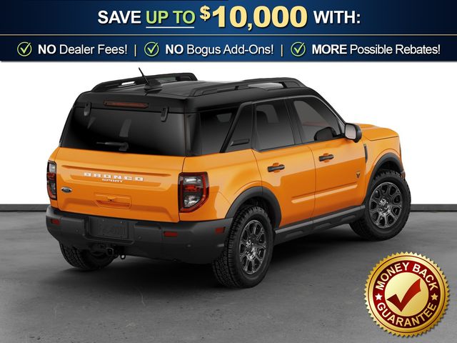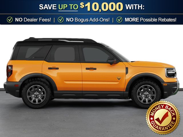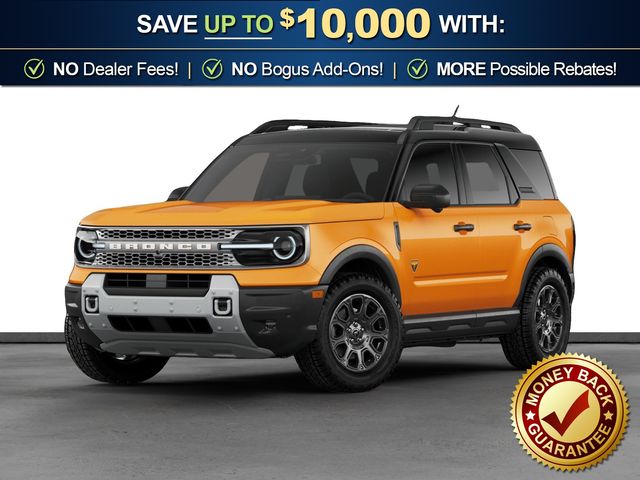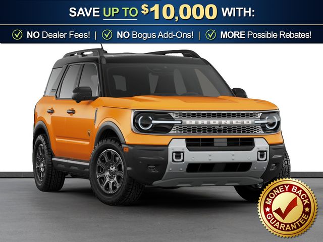 2026 Ford Bronco Sport Badlands NFT Orange Fury Metallic Tri-Coat Badlands NFT 4WD 8-Speed Automatic EcoBoost 2.0L I4 GTDi DOHC Turbocharged VCT 4-Wheel Disc Brakes, 6 Speakers, ABS brakes, Air Conditioning, Alloy wheels, AM/FM radio: SiriusXM with 360L, AM/FM Stereo, Apple CarPlay/Android Auto, Auto High-beam Headlights, Auto-dimming Rear-View mirror, Automatic temperature control, Badlands Tech Package, Brake assist, Compass, Connected Navigation (1-Year Included), Delay-off headlights, Driver door bin, Driver vanity mirror, Dual front impact airbags, Dual front side impact airbags, Electronic Stability Control, Emergency communication system: SYNC 4 911 Assist, Exterior Parking Camera Rear, Ford Connectivity Package (1-Year Included), Four wheel independent suspension, Front anti-roll bar, Front Bucket Seats, Front Center Armrest, Front fog lights, Front reading lights, Fully automatic headlights, Heated door mirrors, Heated front seats, Heated steering wheel, Illuminated entry, Internet access capable: 5G Modem - Ford Connectivity Package, Knee airbag, Leather-Trimmed Heated Front Sport Contour Bucket Seats, Low tire pressure warning, Memory seat, Noise Reduction Module, Occupant sensing airbag, Outside temperature display, Overhead airbag, Overhead console, Panic alarm, Passenger door bin, Passenger vanity mirror, Power door mirrors, Power driver seat, Power Moonroof, Power passenger seat, Power steering, Power windows, Radio data system, Radio: HD w/B&O Sound System by Bang & Olufsen, Rear anti-roll bar, Rear reading lights, Rear seat center armrest, Rear window defroster, Rear window wiper, Remote keyless entry, Security system, SiriusXM with 360L, Speed control, Speed-sensing steering, Speed-Sensitive Wipers, Split folding rear seat, Steering wheel mounted audio controls, SYNC 4 with Enhanced Voice Recognition, Tachometer, Telescoping steering wheel, Tilt steering wheel, Traction control, Trip computer, Variably intermittent wipers, Wheels: 17" Matte Black-Painted Aluminum.