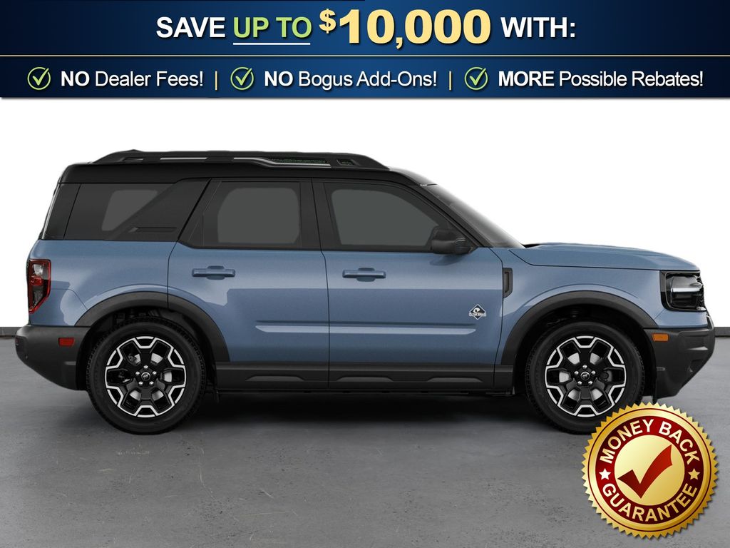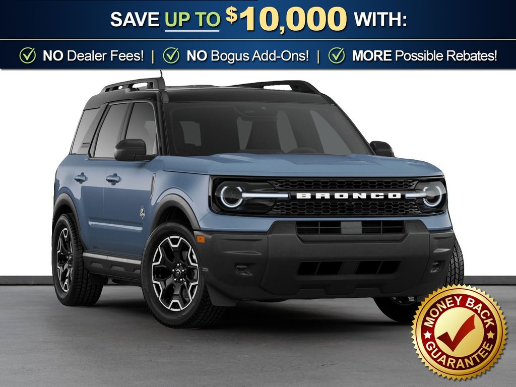 Azure Gray Metallic Tri-Coat 2026 Ford Bronco Sport Outer Banks NFT 4WD 8-Speed Automatic 1.5L EcoBoost 4-Wheel Disc Brakes, 6 Speakers, ABS brakes, Air Conditioning, Alloy wheels, AM/FM radio: SiriusXM with 360L, AM/FM Stereo, Apple CarPlay/Android Auto, Auto High-beam Headlights, Auto-dimming Rear-View mirror, Automatic temperature control, Brake assist, Compass, Delay-off headlights, Driver door bin, Driver vanity mirror, Dual front impact airbags, Dual front side impact airbags, Electronic Stability Control, Emergency communication system: SYNC 4 911 Assist, Exterior Parking Camera Rear, Ford Connectivity Package (1-Year Included), Four wheel independent suspension, Front anti-roll bar, Front Bucket Seats, Front Center Armrest, Front Driver/Passenger Seat Back Map Pockets, Front dual zone A/C, Front fog lights, Front License Plate Bracket, Front reading lights, Fully automatic headlights, Heated door mirrors, Heated front seats, Heated steering wheel, Illuminated entry, Internet access capable: 5G Modem - Ford Connectivity Package, Knee airbag, Low tire pressure warning, Memory seat, Occupant sensing airbag, Outside temperature display, Overhead airbag, Overhead console, Panic alarm, Passenger door bin, Passenger vanity mirror, Power door mirrors, Power driver seat, Power passenger seat, Power steering, Power windows, Radio data system, Rear anti-roll bar, Rear Parking Sensors, Rear reading lights, Rear seat center armrest, Rear window defroster, Rear window wiper, Remote keyless entry, Security system, SiriusXM with 360L, Speed control, Speed-sensing steering, Speed-Sensitive Wipers, Split folding rear seat, Steering wheel mounted audio controls, SYNC 4 with Enhanced Voice Recognition, Tachometer, Telescoping steering wheel, Tilt steering wheel, Traction control, Trip computer, Variably intermittent wipers, Wheels: 18" Ebony Black.