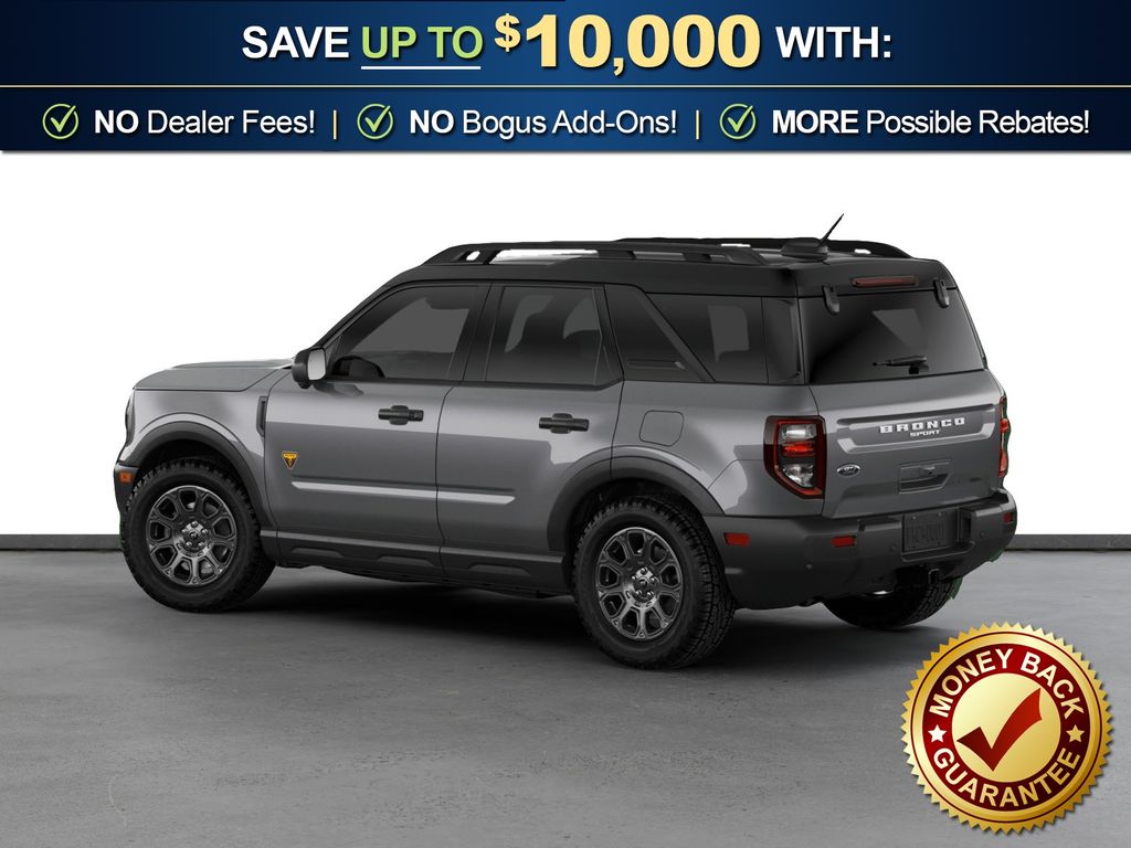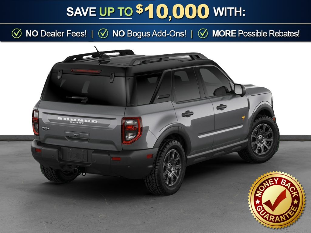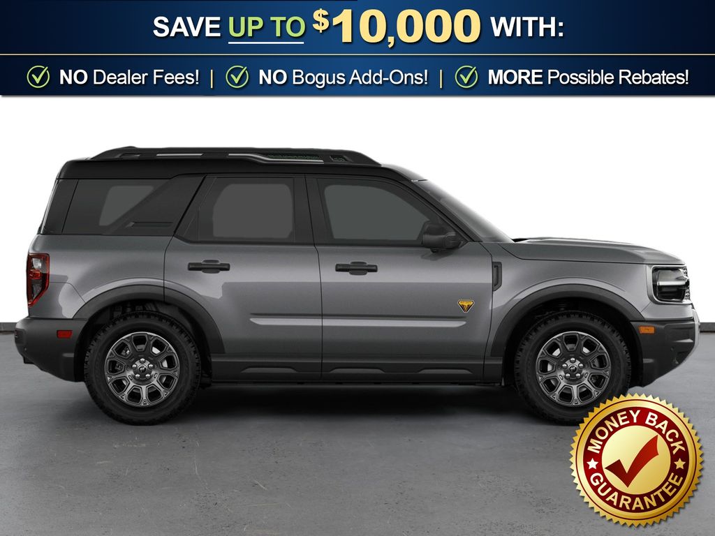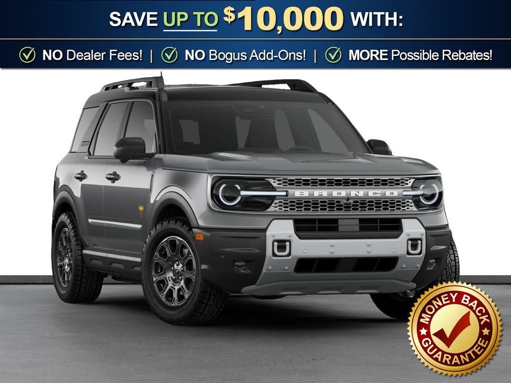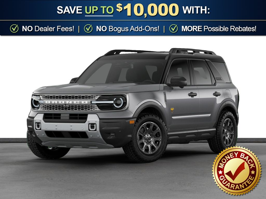 Carbonized Gray Metallic 2026 Ford Bronco Sport Badlands NFT 4WD 8-Speed Automatic EcoBoost 2.0L I4 GTDi DOHC Turbocharged VCT 4-Wheel Disc Brakes, 6 Speakers, ABS brakes, Air Conditioning, Alloy wheels, AM/FM radio: SiriusXM with 360L, AM/FM Stereo, Apple CarPlay/Android Auto, Auto High-beam Headlights, Auto-dimming Rear-View mirror, Automatic temperature control, Badlands Tech Package, Brake assist, Compass, Connected Navigation (1-Year Included), Delay-off headlights, Driver door bin, Driver vanity mirror, Dual front impact airbags, Dual front side impact airbags, Electronic Stability Control, Emergency communication system: SYNC 4 911 Assist, Exterior Parking Camera Rear, Ford Connectivity Package (1-Year Included), Four wheel independent suspension, Front anti-roll bar, Front Bucket Seats, Front Center Armrest, Front fog lights, Front License Plate Bracket, Front reading lights, Fully automatic headlights, Heated door mirrors, Heated front seats, Heated steering wheel, Illuminated entry, Internet access capable: 5G Modem - Ford Connectivity Package, Knee airbag, Leather-Trimmed Heated Front Sport Contour Bucket Seats, Low tire pressure warning, Memory seat, Noise Reduction Module, Occupant sensing airbag, Outside temperature display, Overhead airbag, Overhead console, Panic alarm, Passenger door bin, Passenger vanity mirror, Power door mirrors, Power driver seat, Power passenger seat, Power steering, Power windows, Radio data system, Radio: HD w/B&O Sound System by Bang & Olufsen, Rear anti-roll bar, Rear reading lights, Rear seat center armrest, Rear window defroster, Rear window wiper, Remote keyless entry, Security system, SiriusXM with 360L, Speed control, Speed-sensing steering, Speed-Sensitive Wipers, Split folding rear seat, Steering wheel mounted audio controls, SYNC 4 with Enhanced Voice Recognition, Tachometer, Telescoping steering wheel, Tilt steering wheel, Traction control, Trip computer, Variably intermittent wipers, Wheels: 17" Matte Black-Painted Aluminum.