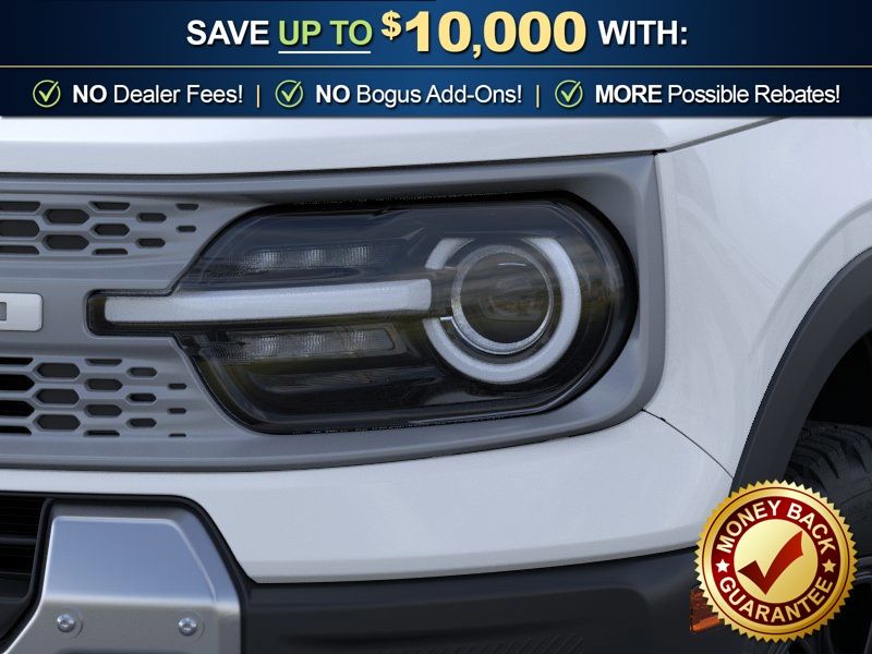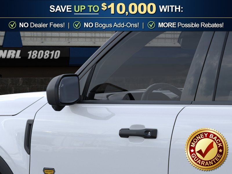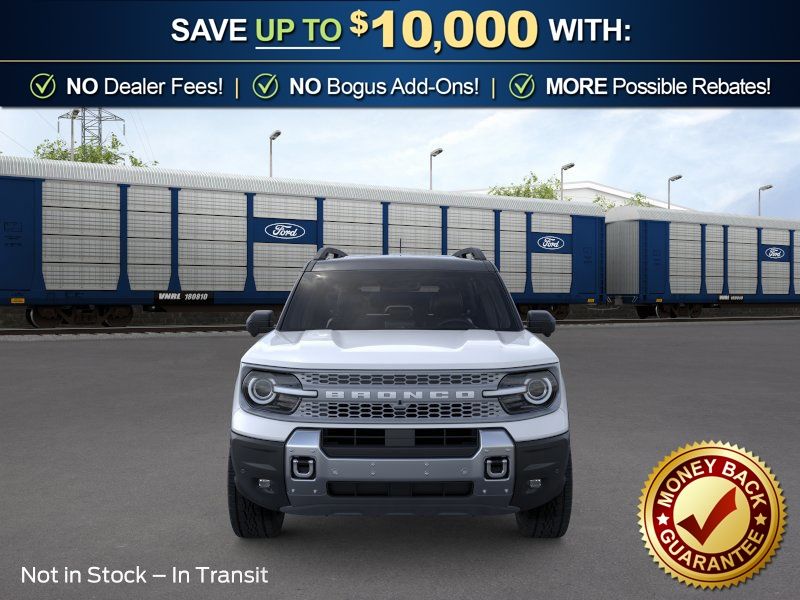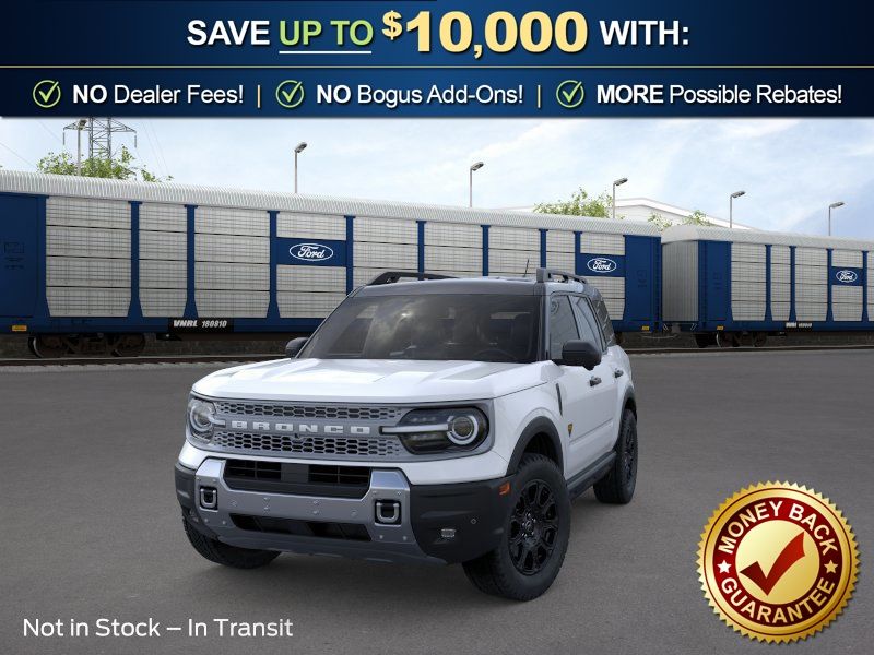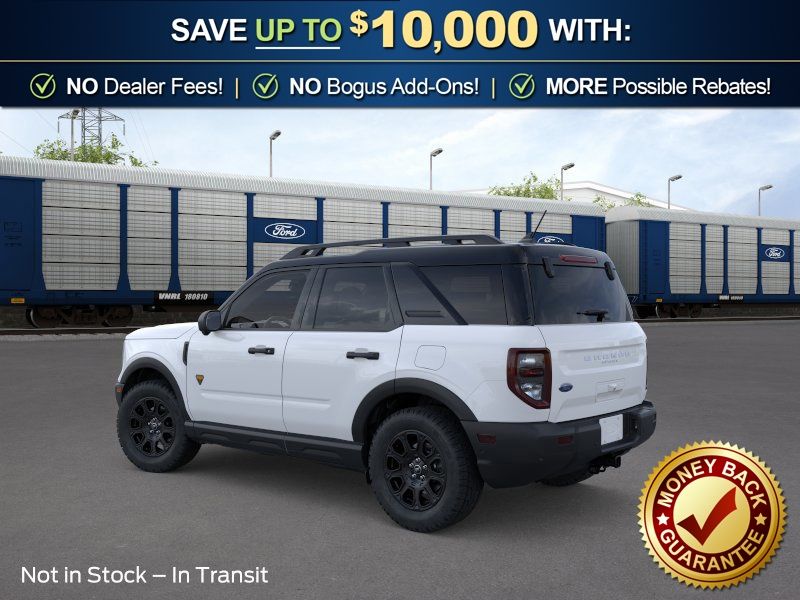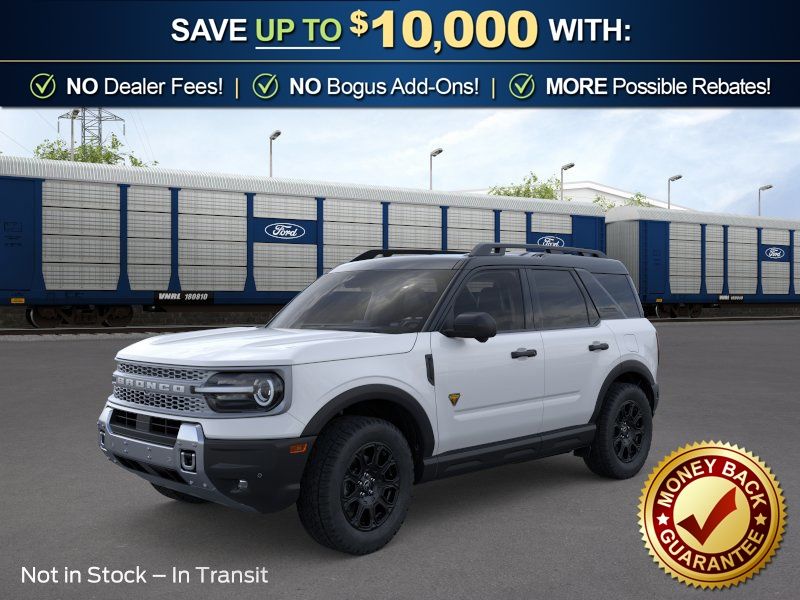 Oxford White 2026 Ford Bronco Sport Badlands NFT 4WD 8-Speed Automatic EcoBoost 2.0L I4 GTDi DOHC Turbocharged VCT 4-Wheel Disc Brakes, 6 Speakers, ABS brakes, Air Conditioning, Alloy wheels, AM/FM radio: SiriusXM with 360L, AM/FM Stereo, Apple CarPlay/Android Auto, Auto High-beam Headlights, Auto-dimming Rear-View mirror, Automatic temperature control, Badlands Tech Package, Brake assist, Compass, Connected Navigation (1-Year Included), Delay-off headlights, Driver door bin, Driver vanity mirror, Dual front impact airbags, Dual front side impact airbags, Electronic Stability Control, Emergency communication system: SYNC 4 911 Assist, Exterior Parking Camera Rear, Ford Connectivity Package (1-Year Included), Four wheel independent suspension, Front anti-roll bar, Front Bucket Seats, Front Center Armrest, Front fog lights, Front License Plate Bracket, Front reading lights, Fully automatic headlights, Heated door mirrors, Heated front seats, Heated steering wheel, Illuminated entry, Internet access capable: 5G Modem - Ford Connectivity Package, Knee airbag, Leather-Trimmed Heated Front Sport Contour Bucket Seats, Low tire pressure warning, Memory seat, Noise Reduction Module, Occupant sensing airbag, Outside temperature display, Overhead airbag, Overhead console, Panic alarm, Passenger door bin, Passenger vanity mirror, Power door mirrors, Power driver seat, Power passenger seat, Power steering, Power windows, Radio data system, Radio: HD w/B&O Sound System by Bang & Olufsen, Rear anti-roll bar, Rear reading lights, Rear seat center armrest, Rear window defroster, Rear window wiper, Remote keyless entry, Security system, SiriusXM with 360L, Speed control, Speed-sensing steering, Speed-Sensitive Wipers, Split folding rear seat, Steering wheel mounted audio controls, SYNC 4 with Enhanced Voice Recognition, Tachometer, Telescoping steering wheel, Tilt steering wheel, Traction control, Trip computer, Variably intermittent wipers, Wheels: 17" Matte Black-Painted Aluminum.
