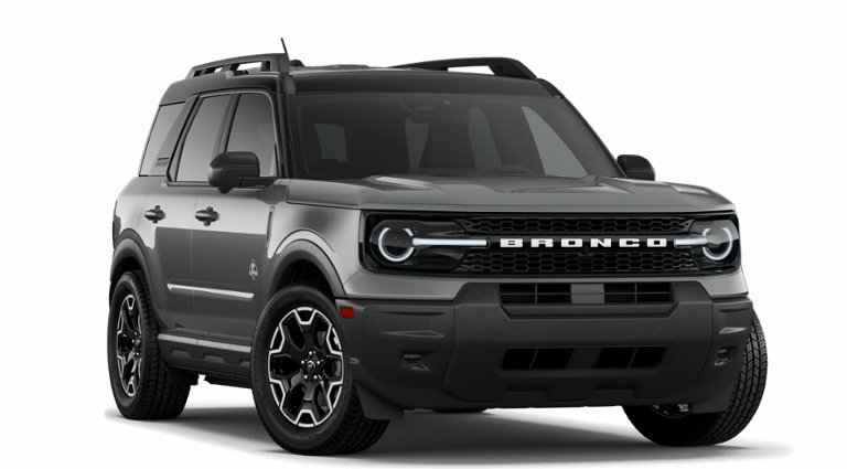 Carbonized Gray Metallic 2026 Ford Bronco Sport Outer Banks NFT 4WD 8-Speed Automatic 1.5L EcoBoost 360-Degree Camera w/Trail View, 4-Wheel Disc Brakes, 6 Speakers, ABS brakes, Air Conditioning, Alloy wheels, AM/FM radio: SiriusXM with 360L, AM/FM Stereo, Apple CarPlay/Android Auto, Auto High-beam Headlights, Auto-dimming Rear-View mirror, Automatic temperature control, Brake assist, Compass, Connected Navigation (1-Year Included), Delay-off headlights, Driver door bin, Driver vanity mirror, Dual front impact airbags, Dual front side impact airbags, Electronic Stability Control, Emergency communication system: SYNC 4 911 Assist, Exterior Parking Camera Rear, Ford Connectivity Package (1-Year Included), Four wheel independent suspension, Front anti-roll bar, Front Bucket Seats, Front Center Armrest, Front Driver/Passenger Seat Back Map Pockets, Front dual zone A/C, Front fog lights, Front License Plate Bracket, Front Parking Sensors, Front reading lights, Fully automatic headlights, Heated door mirrors, Heated front seats, Heated steering wheel, Illuminated entry, Internet access capable: 5G Modem - Ford Connectivity Package, Knee airbag, Low tire pressure warning, Memory seat, Occupant sensing airbag, Outer Banks Tech Package+, Outside temperature display, Overhead airbag, Overhead console, Panic alarm, Passenger door bin, Passenger vanity mirror, Power door mirrors, Power driver seat, Power passenger seat, Power steering, Power windows, Premium Trimmed Htd Fr Sport Contour Bucket Seats, Radio data system, Radio: HD w/B&O Sound System by Bang & Olufsen, Rear anti-roll bar, Rear Parking Sensors, Rear reading lights, Rear seat center armrest, Rear window defroster, Rear window wiper, Remote keyless entry, Reverse Brake Assist, Security system, SiriusXM w/360L, Speed control, Speed-sensing steering, Speed-Sensitive Wipers, Split folding rear seat, Steering wheel mounted audio controls, SYNC 4 w/Enhanced Voice Recognition, Tachometer, Telescoping steering wheel, Tilt steering wheel, Traction control, Trip computer, Variably intermittent wipers, Wheels: 18" Ebony Black-Painted Aluminum.