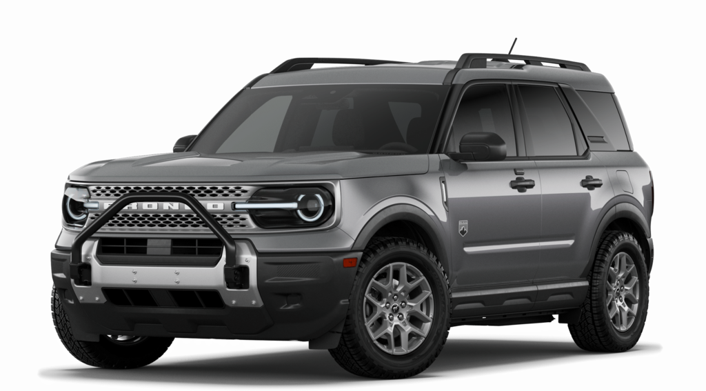 Carbonized Gray Metallic 2026 Ford Bronco Sport Big Bend NFT 4WD 8-Speed Automatic 1.5L EcoBoost 4-Wheel Disc Brakes, 400W Pro Power Onboard, 6 Speakers, ABS brakes, Air Conditioning, Alloy wheels, AM/FM radio: SiriusXM with 360L, AM/FM Stereo, Apple CarPlay/Android Auto, Auto High-beam Headlights, Automatic temperature control, Auxiliary Switches & Wiring, Black Diamond Off-Road Package, Brake assist, Class II Trailer Tow Pack w/Trailer Sway Control, Cloth w/Easy-to-Clean Front Bucket Seats, Compass, Delay-off headlights, Driver door bin, Driver vanity mirror, Dual front impact airbags, Dual front side impact airbags, Electronic Stability Control, Emergency communication system: SYNC 4 911 Assist, Exterior Parking Camera Rear, Ford Connectivity Package (1-Year Included), Four wheel independent suspension, Front anti-roll bar, Front Black Molded-in-Color (MIC) Bumper, Front Bucket Seats, Front Center Armrest, Front License Plate Bracket, Front reading lights, Frt Brush Guard, Fully automatic headlights, Heated door mirrors, Illuminated entry, Internet access capable: 5G Modem - Ford Connectivity Package, Knee airbag, Low tire pressure warning, Occupant sensing airbag, Outside temperature display, Overhead airbag, Overhead console, Panic alarm, Passenger door bin, Passenger vanity mirror, Power door mirrors, Power steering, Power windows, Radio data system, Rear anti-roll bar, Rear Parking Sensors, Rear reading lights, Rear seat center armrest, Rear window defroster, Rear window wiper, Remote keyless entry, Security system, SiriusXM w/360L, Speed control, Speed-sensing steering, Speed-Sensitive Wipers, Split folding rear seat, Steering wheel mounted audio controls, SYNC 4 w/Enhanced Voice Recognition, Tachometer, Telescoping steering wheel, Tilt steering wheel, Traction control, Trip computer, Variably intermittent wipers, Wheels: 17" Carbonized Gray Painted Aluminum, Wheels: 17" Carbonized Gray-Painted Aluminum.