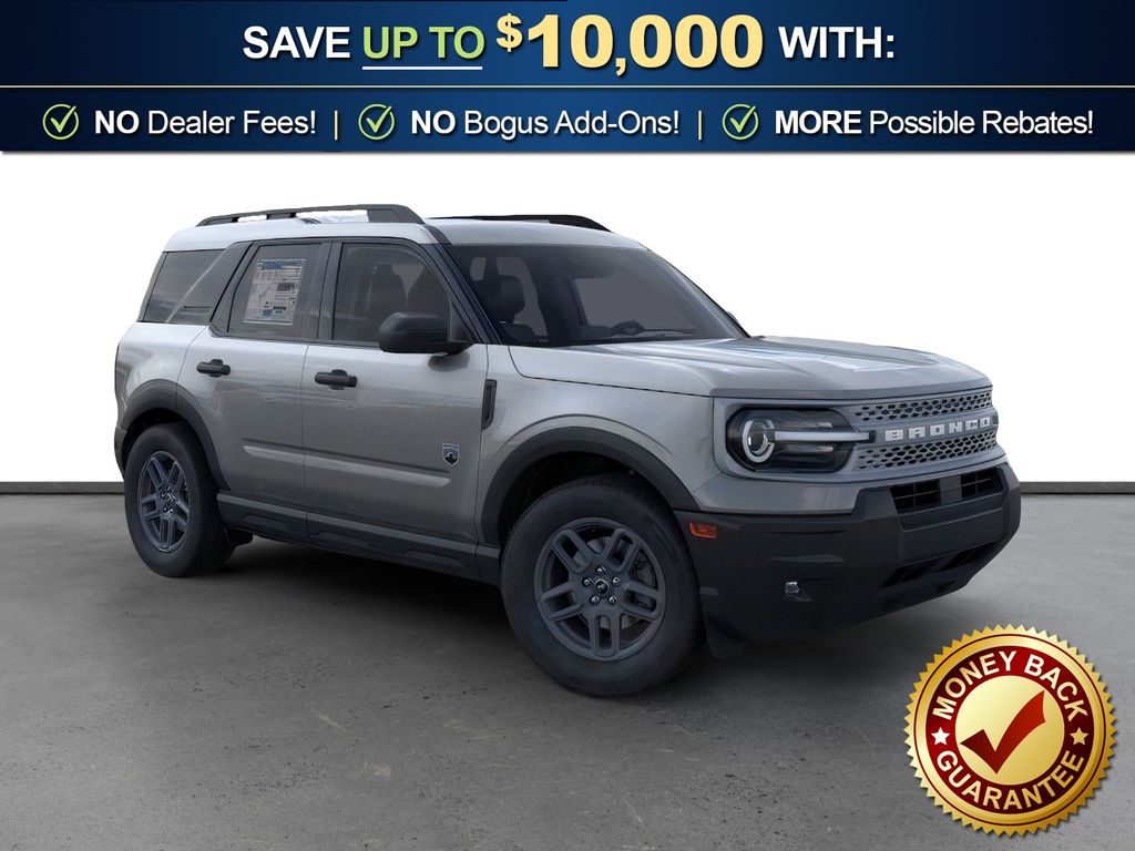 Carbonized Gray Metallic 2026 Ford Bronco Sport Big Bend NFT 4WD 8-Speed Automatic 1.5L EcoBoost 4-Wheel Disc Brakes, 6 Speakers, ABS brakes, Air Conditioning, Alloy wheels, AM/FM radio: SiriusXM with 360L, AM/FM Stereo, Apple CarPlay/Android Auto, Auto High-beam Headlights, Automatic temperature control, Brake assist, Cloth with Easy-to-Clean Front Bucket Seats, Compass, Convenience Package, Delay-off headlights, Driver door bin, Driver vanity mirror, Dual front impact airbags, Dual front side impact airbags, Electronic Stability Control, Emergency communication system: SYNC 4 911 Assist, Exterior Parking Camera Rear, Ford Connectivity Package (1-Year Included), Four wheel independent suspension, Front anti-roll bar, Front Bucket Seats, Front Center Armrest, Front Driver/Passenger Seat Back Map Pockets, Front License Plate Bracket, Front reading lights, Fully automatic headlights, Heated 8-Way Power Driver's Seat, Heated door mirrors, Illuminated entry, Internet access capable: 5G Modem - Ford Connectivity Package, Knee airbag, LED Fog Lamps, Liftgate with Black BRONCO SPORT Lettering, Low tire pressure warning, Occupant sensing airbag, Outside temperature display, Overhead airbag, Overhead console, Panic alarm, Passenger door bin, Passenger vanity mirror, Power door mirrors, Power steering, Power windows, Premium Wrapped Steering Wheel, Radio data system, Rear anti-roll bar, Rear Parking Sensors, Rear reading lights, Rear seat center armrest, Rear window defroster, Rear window wiper, Remote keyless entry, Security system, SiriusXM with 360L, Speed control, Speed-sensing steering, Speed-Sensitive Wipers, Split folding rear seat, Steering wheel mounted audio controls, SYNC 4 with Enhanced Voice Recognition, Tachometer, Telescoping steering wheel, Tilt steering wheel, Traction control, Trip computer, Variably intermittent wipers, Wheels: 17" Carbonized Gray Painted Aluminum.