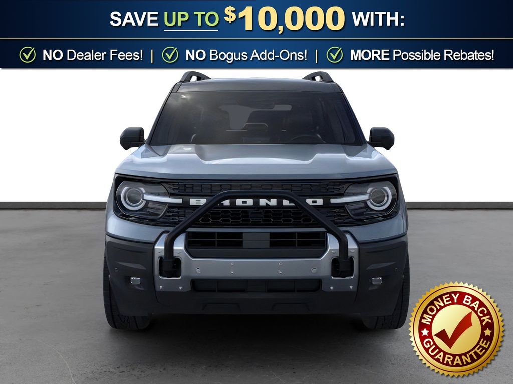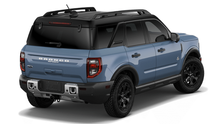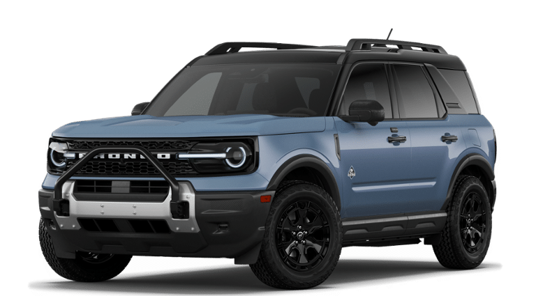Azure Gray Metallic Tri-Coat 2026 Ford Bronco Sport Outer Banks NFT 4WD 8-Speed Automatic 1.5L EcoBoost 12.3" Cluster Display, 2 Rear D-Ring Recovery Hooks, 2nd Row Carpeted Seatback, 360-Degree Camera with Trail View, 4-Wheel Disc Brakes, 400W Pro Power Onboard, 6 Speakers, ABS brakes, Air Conditioning, Alloy wheels, AM/FM radio: SiriusXM with 360L, AM/FM Stereo, Apple CarPlay/Android Auto, Auto High-beam Headlights, Auto-dimming Rear-View mirror, Automatic temperature control, Auxiliary Switches and Wiring, Brake assist, Class II Trailer Tow Package with Trailer Sway Control, Compass, Connected Navigation (1-Year Included), Delay-off headlights, Driver door bin, Driver vanity mirror, Dual front impact airbags, Dual front side impact airbags, Electronic Stability Control, Emergency communication system: SYNC 4 911 Assist, Exterior Parking Camera Rear, Ford Connectivity Package (1-Year Included), Four wheel independent suspension, Front and Rear Black Bumpers with Steel Plates, Front anti-roll bar, Front Brush Guard with Integrated Recovery Hooks, Front Bucket Seats, Front Center Armrest, Front Driver/Passenger Seat Back Map Pockets, Front dual zone A/C, Front fog lights, Front License Plate Bracket, Front Parking Sensors, Front reading lights, Fully automatic headlights, Heated door mirrors, Heated front seats, Heated steering wheel, High Clearance Fender Flares, HOSS 2.0 Off-Road Suspension, Illuminated entry, Internet access capable: 5G Modem - Ford Connectivity Package, Knee airbag, Low tire pressure warning, Memory seat, Occupant sensing airbag, Outer Banks Tech Package+, Outside temperature display, Overhead airbag, Overhead console, Panic alarm, Passenger door bin, Passenger vanity mirror, Power door mirrors, Power driver seat, Power Moonroof, Power passenger seat, Power steering, Power windows, Premium Trimmed Heated Front Sport Contour Bucket Seats, Radio data system, Radio: HD w/B&O Sound System by Bang & Olufsen, Rear anti-roll bar, Rear Parking Sensors, Rear reading lights, Rear seat center armrest, Rear window defroster, Rear window wiper, Remote keyless entry, Reverse Brake Assist, Rubberized Flooring, Sasquatch Outer Banks Package, Security system, SiriusXM with 360L, Speed control, Speed-sensing steering, Speed-Sensitive Wipers, Split folding rear seat, Steering wheel mounted audio controls, SYNC 4 with Enhanced Voice Recognition, Tachometer, Telescoping steering wheel, Tilt steering wheel, Traction control, Trail Control with Trail One-Pedal Drive, Trip computer, Variably intermittent wipers, Wheels: 17" Ebony Black-Painted Aluminum, Wheels: 18" Ebony Black.