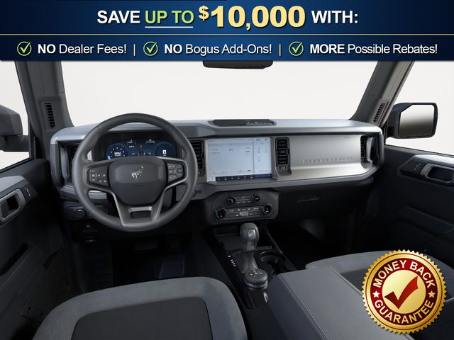 2026 Ford Bronco Big Bend NFT Oxford White Big Bend NFT 4WD 10-Speed Automatic 2.3L EcoBoost I-4 4-Wheel Disc Brakes, 4.46 Axle Ratio, 7 Speakers, ABS brakes, Air Conditioning, Alloy wheels, AM/FM radio: SiriusXM with 360L, AM/FM Stereo, Auto High-beam Headlights, Black Appearance Package, Black Molded-in-Color Door Handles, Black Molded-in-Color Fender Flares, Black Molded-in-Color Sideview Mirror Caps, Black-Painted Molded-in-Color Grille, Brake assist, Cloth Bucket Seats, Compass, Delay-off headlights, Driver door bin, Driver vanity mirror, Dual front impact airbags, Dual front side impact airbags, Electronic Stability Control, Emergency communication system: 911 Assist, Exterior Parking Camera Rear, Ford Connectivity Package (1-Year Included), Front anti-roll bar, Front Bucket Seats, Front Center Armrest, Front reading lights, Front wheel independent suspension, Fully automatic headlights, Hard Top Sound Deadening Headliner, Heated door mirrors, Illuminated entry, Integrated roll-over protection, Low tire pressure warning, Occupant sensing airbag, Outside temperature display, Overhead airbag, Overhead console, Panic alarm, Passenger door bin, Passenger vanity mirror, Power door mirrors, Power steering, Power windows, Radio data system, Rear-Window Defroster and Washer, Remote keyless entry, Security system, Shadow Black Painted Hard Top, SiriusXM with 360L, Speed control, Split folding rear seat, Steering wheel mounted audio controls, SYNC 4, Tachometer, Telescoping steering wheel, Tilt steering wheel, Traction control, Trip computer, Variably intermittent wipers, Wheels: 17" Carbonized Gray-Painted Aluminum.