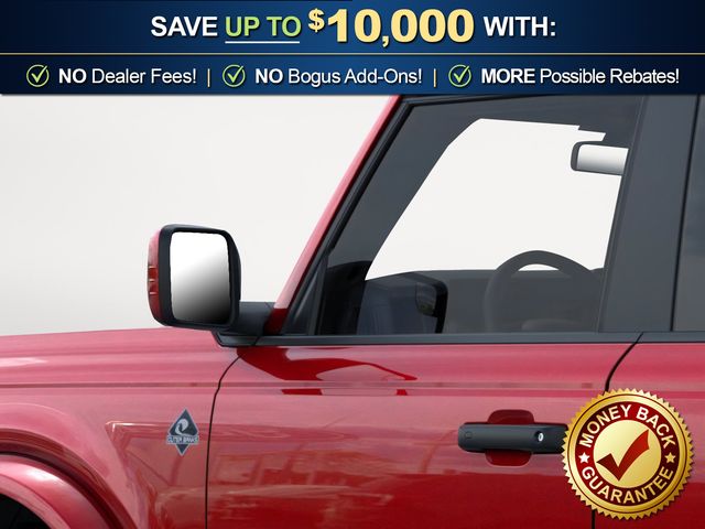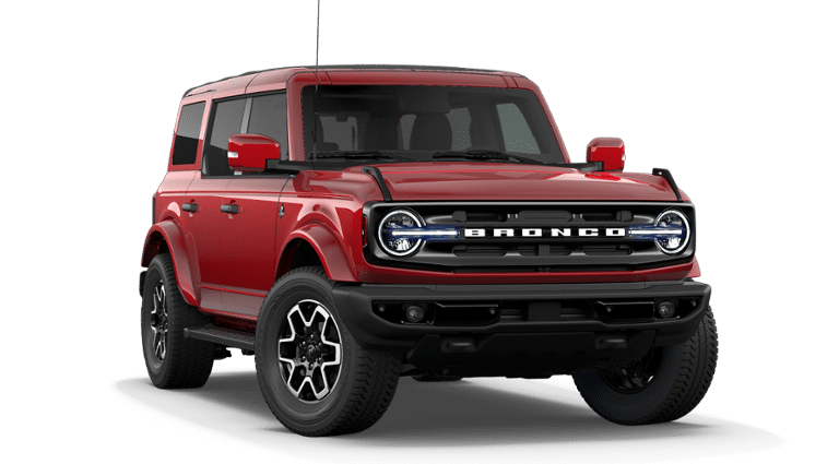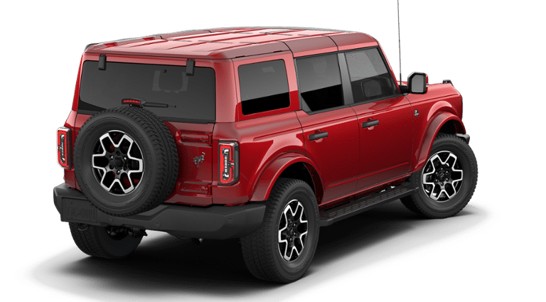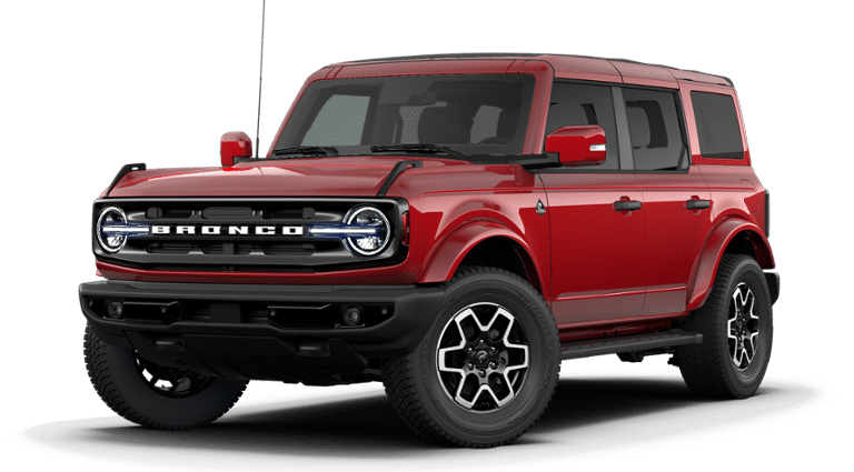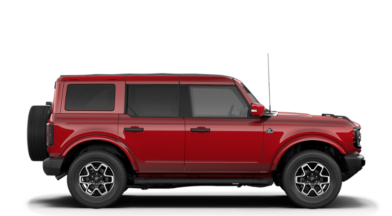 2026 Ford Bronco Outer Banks NFT Ruby Red Metallic Tinted Clearcoat Outer Banks NFT 4WD 10-Speed Automatic 2.7L EcoBoost V6 18" Bright Machined Aluminum Wheels, 3.73 Axle Ratio, 4-Wheel Disc Brakes, 7 Speakers, ABS brakes, Air Conditioning, Alloy wheels, AM/FM radio: SiriusXM with 360L, AM/FM Stereo, Auto High-beam Headlights, Auto-dimming Rear-View mirror, Automatic temperature control, Brake assist, Compass, Connected Navigation, Delay-off headlights, Driver door bin, Driver vanity mirror, Dual front impact airbags, Dual front side impact airbags, Electronic Stability Control, Emergency communication system: 911 Assist, Exterior Parking Camera Rear, Ford Connectivity Package (1-Year Included), Front anti-roll bar, Front Bucket Seats, Front Center Armrest, Front dual zone A/C, Front fog lights, Front reading lights, Front wheel independent suspension, Fully automatic headlights, Hard Top Sound Deadening Headliner, Heated door mirrors, Heated front seats, Heated Leather-Trimmed/Vinyl Bucket Seats, Heated steering wheel, Illuminated entry, Integrated roll-over protection, Leather Shift Knob, Low tire pressure warning, Navigation system: Connected Navigation, Occupant sensing airbag, Outside temperature display, Overhead airbag, Overhead console, Painted Hard Top, Panic alarm, Passenger door bin, Passenger vanity mirror, Power door mirrors, Power driver seat, Power passenger seat, Power steering, Power windows, Radio data system, Rear seat center armrest, Rear-Window Defroster and Washer, Remote keyless entry, Security system, SiriusXM with 360L, Speed control, Split folding rear seat, Steering wheel mounted audio controls, SYNC 4, Tachometer, Telescoping steering wheel, Tilt steering wheel, Traction control, Trip computer, Variably intermittent wipers, Voltmeter.
