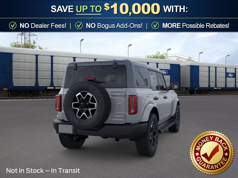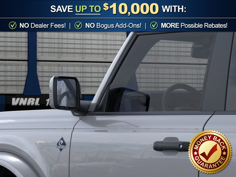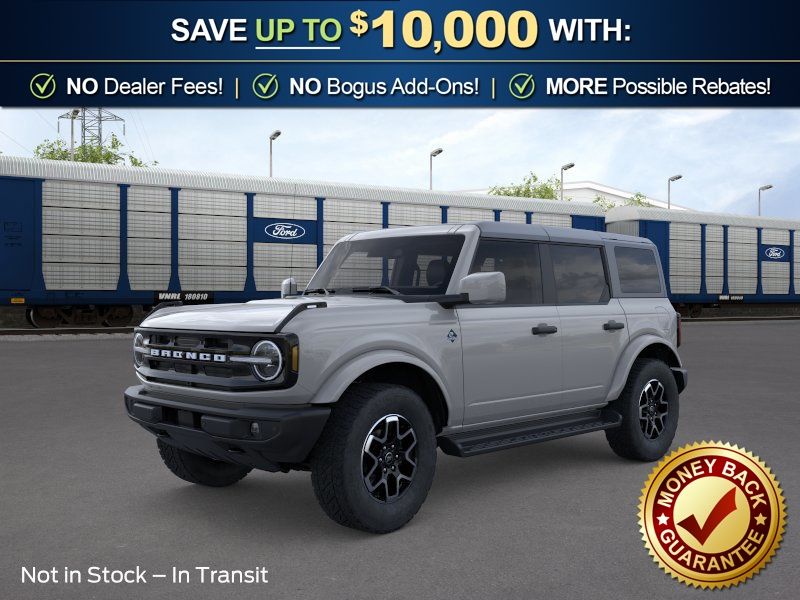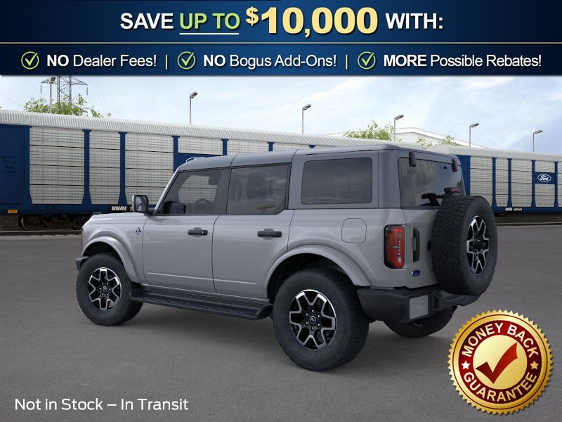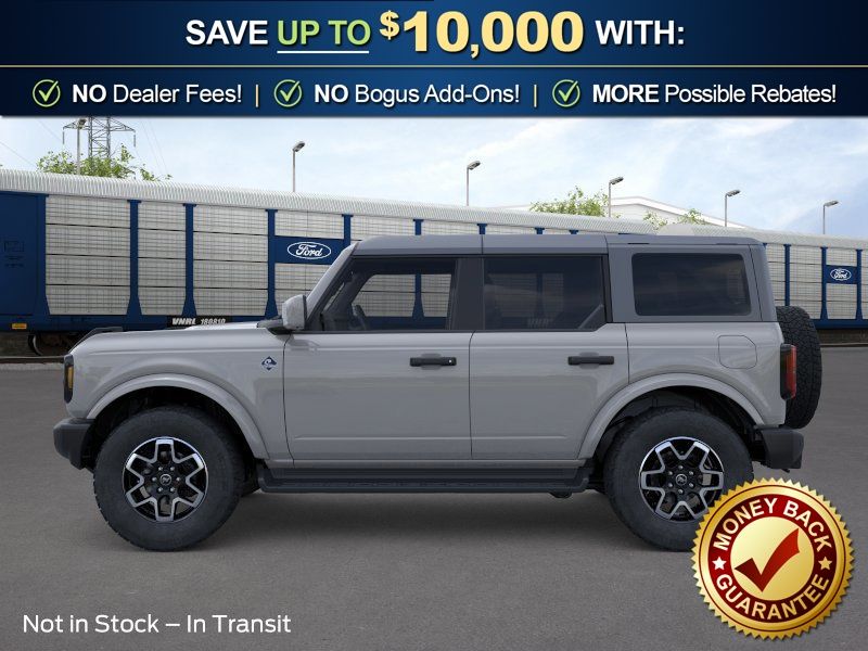 Avalanche Gray 2026 Ford Bronco Outer Banks NFT 4WD 10-Speed Automatic 2.7L EcoBoost V6 18" Bright Machined Aluminum Wheels, 3.73 Axle Ratio, 4-Wheel Disc Brakes, 7 Speakers, ABS brakes, Air Conditioning, Alloy wheels, AM/FM radio: SiriusXM with 360L, AM/FM Stereo, Auto High-beam Headlights, Auto-dimming Rear-View mirror, Automatic temperature control, Brake assist, Carbonized Gray Molded-in-Color Hard Top, Compass, Connected Navigation, Delay-off headlights, Driver door bin, Driver vanity mirror, Dual front impact airbags, Dual front side impact airbags, Electronic Stability Control, Emergency communication system: 911 Assist, Exterior Parking Camera Rear, Ford Connectivity Package (1-Year Included), Front anti-roll bar, Front Bucket Seats, Front Center Armrest, Front dual zone A/C, Front fog lights, Front License Plate Bracket, Front reading lights, Front wheel independent suspension, Fully automatic headlights, Hard Top Sound Deadening Headliner, Heated door mirrors, Heated front seats, Heated Leather-Trimmed/Vinyl Bucket Seats, Heated steering wheel, Illuminated entry, Integrated roll-over protection, Leather Shift Knob, Low tire pressure warning, Navigation system: Connected Navigation, Occupant sensing airbag, Outside temperature display, Overhead airbag, Overhead console, Panic alarm, Passenger door bin, Passenger vanity mirror, Power door mirrors, Power driver seat, Power passenger seat, Power steering, Power windows, Radio data system, Rear seat center armrest, Rear-Window Defroster and Washer, Remote keyless entry, Security system, SiriusXM with 360L, Speed control, Split folding rear seat, Steering wheel mounted audio controls, SYNC 4, Tachometer, Telescoping steering wheel, Tilt steering wheel, Traction control, Trip computer, Variably intermittent wipers, Voltmeter.