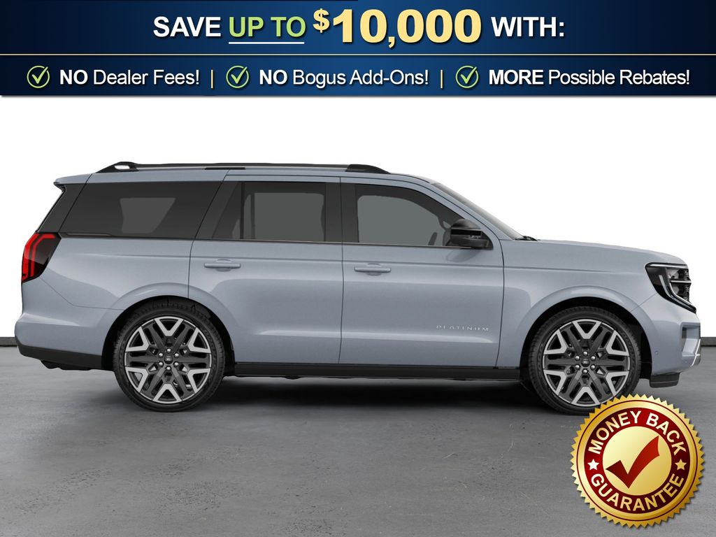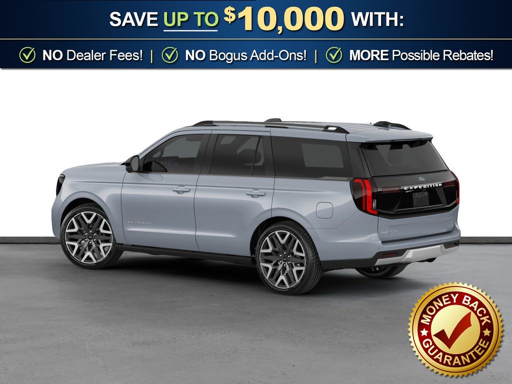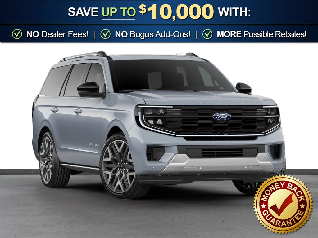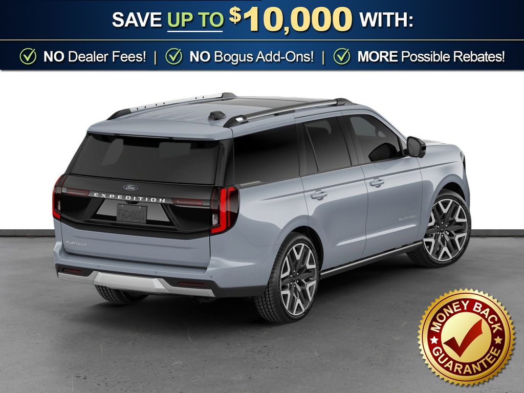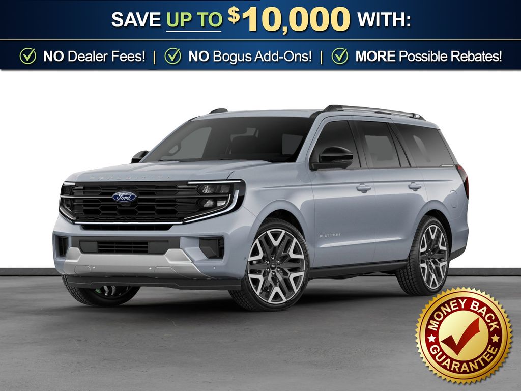Glacier Gray Metallic Tri-Coat 2026 Ford Expedition Platinum NFT 4WD 10-Speed Automatic 3.5L V6 EcoBoost High Output 4WD, 10 Speakers, 2nd Row Power-Folding Captain's Chairs, 3.73 Axle Ratio, 3rd row seats: split-bench, 4-Wheel Disc Brakes, ABS brakes, Air Conditioning, Alloy wheels, AM/FM radio: SiriusXM with 360L, Apple CarPlay/Android Auto, Auto High-beam Headlights, Auto-dimming door mirrors, Auto-dimming Rear-View mirror, Automatic temperature control, Black Headlamp Bezel with Satin Trim Applique, Black Onyx Painted Power Deployable Running Boards, BlueCruise (equipment + 1-Year + 90-Day Plan), Brake assist, Bumpers: body-color, Carbon Black Front Bumper with Lit Grille Bar, Chrome Roof Rails with Black End Caps, Compass, Delay-off headlights, Driver door bin, Driver vanity mirror, Driver's Package, Dual front impact airbags, Dual front side impact airbags, Electronic Stability Control, Emergency communication system: 911 Assist, Engine Sound Enhancer, Exterior Parking Camera Rear, Ford Connectivity Package (1-Year Included), Ford Digital Experience, Four wheel independent suspension, Front anti-roll bar, Front Bucket Seats, Front Center Armrest, Front Door Scuff Plates with Met Insert and Bright Rear, Front dual zone A/C, Front License Plate Bracket, Front reading lights, Fully automatic headlights, Garage door transmitter, Genuine wood dashboard insert, Genuine wood door panel insert, Heated and Ventilated Leather Front Captain's Chairs, Heated door mirrors, Heated front seats, Heated rear seats, Heated steering wheel, High Flow Exhaust System, Illuminated entry, Intersection Assist, Leather steering wheel, Low tire pressure warning, Memory seat, Multicontour Active Motion Lthr Frnt Captains Chairs, Navigation System, Occupant sensing airbag, Outside temperature display, Overhead airbag, Overhead console, Panic alarm, Passenger door bin, Passenger vanity mirror, Platinum Ultimate Interior Package, Platinum Ultimate Package, Polished Stainless Steel Beltline Molding, Power door mirrors, Power driver seat, Power moonroof: Vista Roof, Power passenger seat, Power steering, Power windows, Radio data system, Radio: B&O Play Unleashed, Radio: B&O Sound System by Bang and Olufsen, Rain sensing wipers, Rear air conditioning, Rear anti-roll bar, Rear reading lights, Rear Seat Radio Controls, Rear Side Windows Laminated Glass, Rear window defroster, Rear window wiper, Reclining 3rd row seat, Remote keyless entry, Satin Aluminum Expedition Lettering on Side and Hood, Satin Aluminum Platinum Badge on Tailgate, Security system, Signature Grille Lighting, SiriusXM with 360L, Speed control, Speed-sensing steering, Speed-Sensitive Wipers, Split folding rear seat, Spoiler, Steering wheel memory, Steering wheel mounted audio controls, Tachometer, Telescoping steering wheel, Tilt steering wheel, Traction control, Trip computer, Turn signal indicator mirrors, Variably intermittent wipers, Ventilated front seats, Voltmeter, Wheels: 20" x 8.5" Ebony Bright Machined Aluminum, Wheels: 22" x 9.0" Ebony Bright Machined Face Aluminum, Wheels: 24" x 9.5" Tarnished Dark Metallic, 4WD.