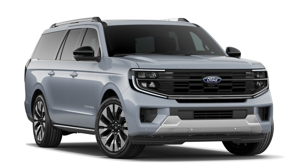 Glacier Gray Metallic Tri-Coat 2026 Ford Expedition Max Platinum 4WD 10-Speed Automatic EcoBoost 3.5L V6 GTDi DOHC 24V Twin Turbocharged 10 Speakers, 2nd Row Power-Folding Captain's Chairs, 3.73 Axle Ratio, 3rd row seats: split-bench, 4-Wheel Disc Brakes, ABS brakes, Air Conditioning, Alloy wheels, AM/FM radio: SiriusXM with 360L, Apple CarPlay/Android Auto, Auto High-beam Headlights, Auto-dimming door mirrors, Auto-dimming Rear-View mirror, Automatic temperature control, Black Onyx Painted Power Deployable Running Boards, Brake assist, Bumpers: body-color, Compass, Delay-off headlights, Driver door bin, Driver vanity mirror, Driver's Package, Dual front impact airbags, Dual front side impact airbags, Electronic Stability Control, Emergency communication system: 911 Assist, Exterior Parking Camera Rear, Ford Connectivity Package (1-Year Included), Ford Digital Experience, Four wheel independent suspension, Front anti-roll bar, Front Bucket Seats, Front Center Armrest, Front dual zone A/C, Front License Plate Bracket, Front reading lights, Fully automatic headlights, Garage door transmitter, Genuine wood dashboard insert, Genuine wood door panel insert, Heated & Ventilated Leather Front Captain's Chairs, Heated door mirrors, Heated front seats, Heated rear seats, Heated steering wheel, Illuminated entry, Intersection Assist, Leather steering wheel, Low tire pressure warning, Memory seat, Multicontour Active Motion Lthr Frnt Captains Chairs, Navigation System, Occupant sensing airbag, Outside temperature display, Overhead airbag, Overhead console, Panic alarm, Passenger door bin, Passenger vanity mirror, Power door mirrors, Power driver seat, Power moonroof: Vista Roof, Power passenger seat, Power steering, Power windows, Radio data system, Radio: B&O Play Unleashed, Radio: B&O Sound System by Bang & Olufsen, Rain sensing wipers, Rear air conditioning, Rear anti-roll bar, Rear reading lights, Rear window defroster, Rear window wiper, Reclining 3rd row seat, Remote keyless entry, Security system, SiriusXM w/360L, Speed control, Speed-sensing steering, Speed-Sensitive Wipers, Split folding rear seat, Spoiler, Steering wheel memory, Steering wheel mounted audio controls, Tachometer, Telescoping steering wheel, Tilt steering wheel, Traction control, Trip computer, Turn signal indicator mirrors, Variably intermittent wipers, Ventilated front seats, Voltmeter, Wheels: 20" x 8.5" Ebony Bright Machined Aluminum, Wheels: 22" x 9.0" Ebony Bright Machined Face Alum.