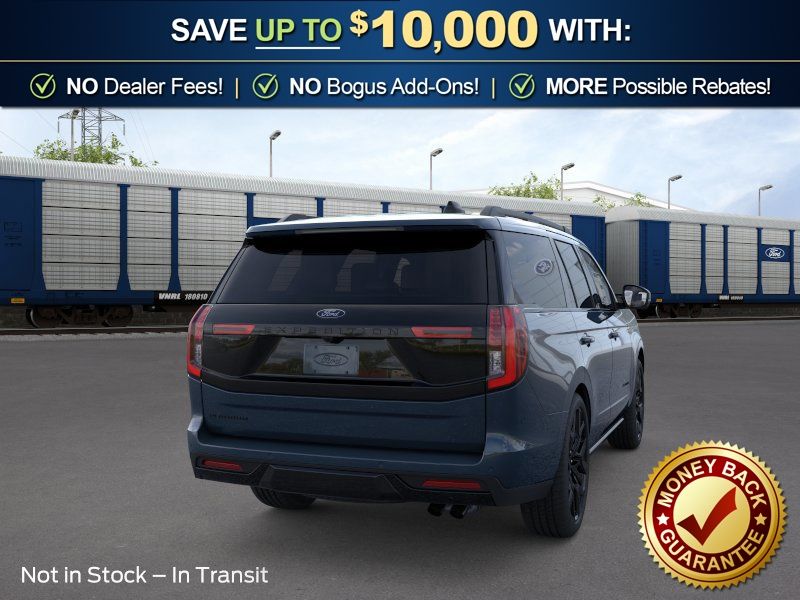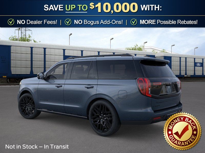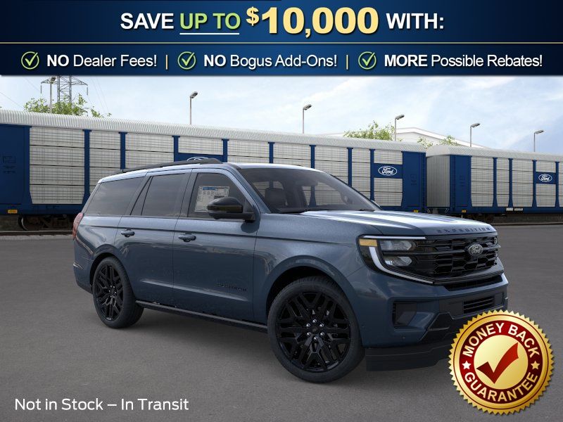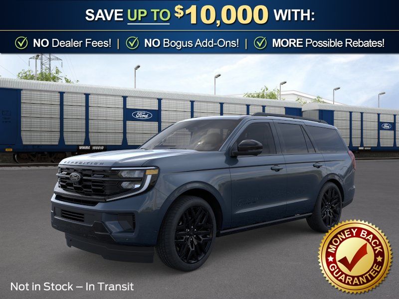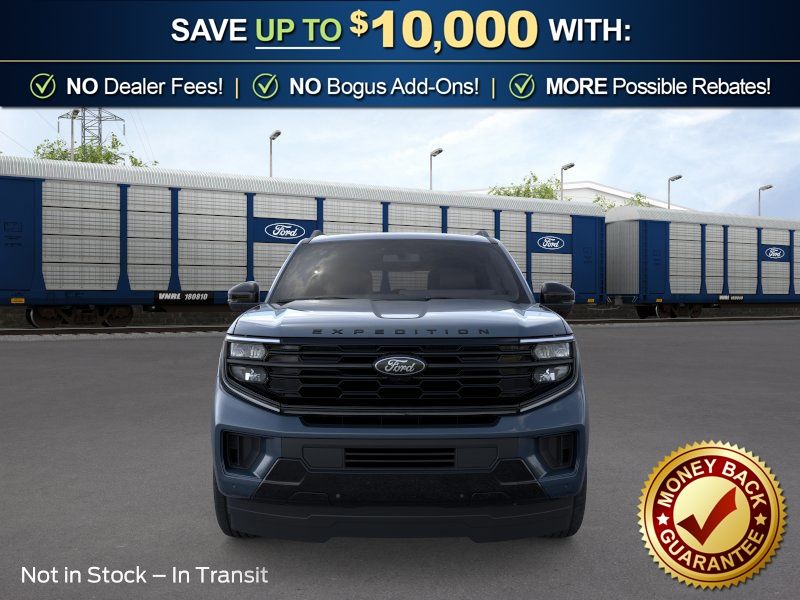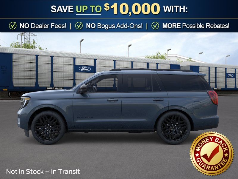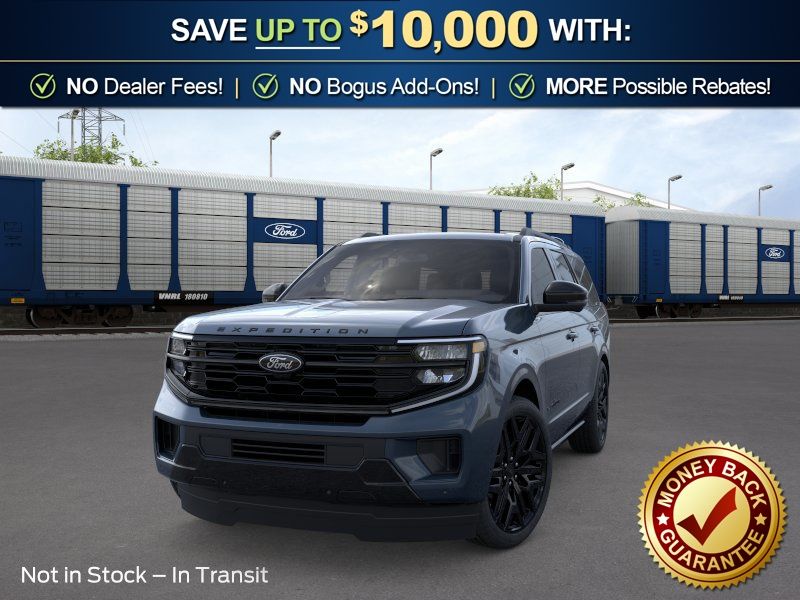 Stone Blue Metallic 2026 Ford Expedition Platinum NFT 4WD 10-Speed Automatic 3.5L V6 EcoBoost High Output 4WD, 10 Speakers, 2nd Row Power-Folding Captain's Chairs, 3.73 Axle Ratio, 3rd row seats: split-bench, 4-Wheel Disc Brakes, ABS brakes, Air Conditioning, Alloy wheels, AM/FM radio: SiriusXM with 360L, Apple CarPlay/Android Auto, Auto High-beam Headlights, Auto-dimming door mirrors, Auto-dimming Rear-View mirror, Automatic temperature control, Black Belt Molding, Black Expedition Lettering on Hood, Black Headlamp Bezel with Ebony Trim Applique, Black Onyx Painted Power Deployable Running Boards, Black Platinum Badge on Tailgate, Black Roof Rails, BlueCruise (equipment + 1-Year + 90-Day Plan), Brake assist, Bumpers: body-color, Carbon Black Front Bumper/Fascia, Compass, Delay-off headlights, Driver door bin, Driver vanity mirror, Driver's Package, Dual front impact airbags, Dual front side impact airbags, Electronic Stability Control, Emergency communication system: 911 Assist, Engine Sound Enhancer, Exterior Parking Camera Rear, Ford Connectivity Package (1-Year Included), Ford Digital Experience, Four wheel independent suspension, Front anti-roll bar, Front Bucket Seats, Front Center Armrest, Front dual zone A/C, Front License Plate Bracket, Front reading lights, Fully automatic headlights, Garage door transmitter, Genuine wood dashboard insert, Genuine wood door panel insert, Heated and Ventilated Leather Front Captain's Chairs, Heated door mirrors, Heated front seats, Heated rear seats, Heated steering wheel, High Flow Exhaust System, Illuminated entry, Intersection Assist, Leather steering wheel, Low tire pressure warning, Memory seat, Multicontour Active Motion Lthr Frnt Captains Chairs, Navigation System, Occupant sensing airbag, Outside temperature display, Overhead airbag, Overhead console, Panic alarm, Passenger door bin, Passenger vanity mirror, Power door mirrors, Power driver seat, Power moonroof: Vista Roof, Power passenger seat, Power steering, Power windows, Radio data system, Radio: B&O Play Unleashed, Radio: B&O Sound System by Bang and Olufsen, Rain sensing wipers, Rear air conditioning, Rear anti-roll bar, Rear reading lights, Rear Side Windows Laminated Glass, Rear window defroster, Rear window wiper, Reclining 3rd row seat, Remote keyless entry, Security system, Signature Grille Lighting, SiriusXM with 360L, Speed control, Speed-sensing steering, Speed-Sensitive Wipers, Split folding rear seat, Spoiler, Stealth Appearance Package, Stealth Performance Package, Steering wheel memory, Steering wheel mounted audio controls, Tachometer, Telescoping steering wheel, Tilt steering wheel, Traction control, Trip computer, Turn signal indicator mirrors, Variably intermittent wipers, Ventilated front seats, Voltmeter, Wheels: 20" x 8.5" Ebony Bright Machined Aluminum, Wheels: 22" x 9.0" Ebony Bright Machined Face Aluminum, Wheels: 24" x 9.5" Ebony Painted Aluminum, 4WD.