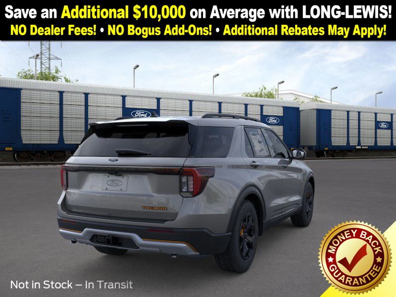 Carbonized Gray Metallic 2026 Ford Explorer Tremor NFT 4WD 10-Speed Automatic 3.0L EcoBoost V6 4WD, 10 Speakers, 3rd Row PowerFold Seats, 3rd row seats: bench, 4-Wheel Disc Brakes, ABS brakes, Air Conditioning, Alloy wheels, AM/FM radio: SiriusXM with 360L, Ambient Lighting, Apple CarPlay/Android Auto, Auto High-beam Headlights, Automatic temperature control, BlueCruise Hardware, Brake assist, Bumpers: body-color, Compass, Delay-off headlights, Driver door bin, Driver vanity mirror, Dual front impact airbags, Dual front side impact airbags, Electronic Stability Control, Emergency communication system: 911 Assist, Exterior Parking Camera Rear, Four wheel independent suspension, Front anti-roll bar, Front Bucket Seats, Front Center Armrest, Front dual zone A/C, Front fog lights, Front License Plate Bracket, Front reading lights, Fully automatic headlights, Heated door mirrors, Heated front seats, Heated rear seats, Heated steering wheel, Heated/Ventilated Miko Captain's Chairs, Illuminated entry, Internet access capable: FordPass Connect 5G, Knee airbag, Leather steering wheel, Low tire pressure warning, Memory Driver's Seat, Multicontour Seats with Front Active Motion, Navigation System, Occupant sensing airbag, Outside temperature display, Overhead airbag, Overhead console, Panic alarm, Panoramic Fixed Glass Roof with Power Shade, Passenger door bin, Passenger vanity mirror, Power door mirrors, Power driver seat, Power Liftgate, Power passenger seat, Power steering, Power windows, Power-Folding with Autofold Side Mirrors, Radio: B&O Sound System by Bang & Olufsen, Radio: B&O Sound System by Bang and Olufsen, Rain-Sensing Wipers (front Only), Rear air conditioning, Rear anti-roll bar, Rear reading lights, Rear window defroster, Rear window wiper, Remote keyless entry, SecuriCode Keyless Entry Keypad, Security system, Speed control, Speed-sensing steering, Speed-Sensitive Wipers, Split folding rear seat, Spoiler, Sport steering wheel, Steering wheel mounted audio controls, Tachometer, Telescoping steering wheel, Tilt steering wheel, Traction control, Tremor Ultimate Package, Trip computer, Variably intermittent wipers, Ventilated front seats, Wheels: 18" High Gloss Black-Painted Aluminum, 4WD.