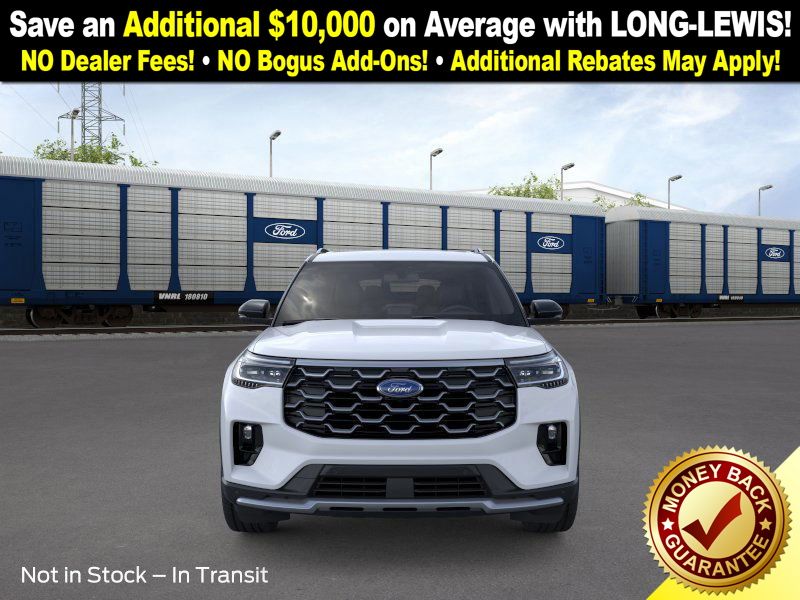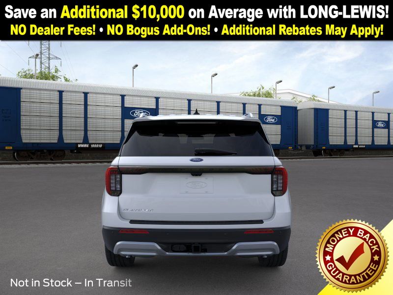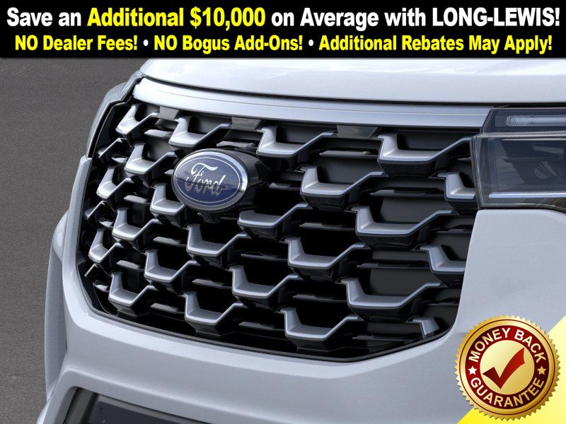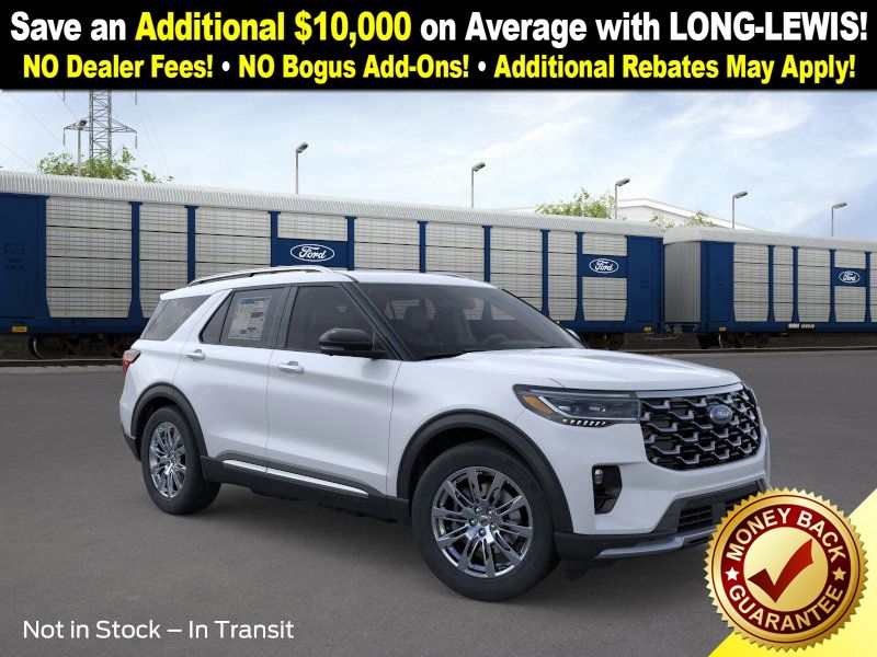 Space White Metallic 2026 Ford Explorer Platinum NFT RWD 10-Speed Automatic 2.3L EcoBoost I-4 14 Speakers, 3rd row seats: bench, 4-Wheel Disc Brakes, ABS brakes, ActiveX Trimmed Captain's Chairs, Air Conditioning, Alloy wheels, AM/FM radio: SiriusXM with 360L, Apple CarPlay/Android Auto, Auto High-beam Headlights, Auto-dimming door mirrors, Auto-dimming Rear-View mirror, Automatic temperature control, Brake assist, Bumpers: body-color, Compass, Delay-off headlights, Driver door bin, Driver vanity mirror, Dual front impact airbags, Dual front side impact airbags, Electronic Stability Control, Emergency communication system: 911 Assist, Exterior Parking Camera Rear, Four wheel independent suspension, Front anti-roll bar, Front Bucket Seats, Front Center Armrest, Front dual zone A/C, Front fog lights, Front License Plate Bracket, Front reading lights, Fully automatic headlights, Garage door transmitter, Heated door mirrors, Heated front seats, Heated rear seats, Heated steering wheel, Illuminated entry, Internet access capable: FordPass Connect 5G, Knee airbag, Leather steering wheel, Low tire pressure warning, Memory seat, Navigation System, Occupant sensing airbag, Outside temperature display, Overhead airbag, Overhead console, Panic alarm, Panoramic Fixed Glass Roof with Power Shade, Passenger door bin, Passenger vanity mirror, Power door mirrors, Power driver seat, Power Liftgate, Power passenger seat, Power steering, Power windows, Radio data system, Radio: B&O Sound System by Bang & Olufsen with HD, Rain sensing wipers, Rear air conditioning, Rear anti-roll bar, Rear reading lights, Rear window defroster, Rear window wiper, Remote keyless entry, SecuriCode Keyless Entry Keypad, Security system, Speed control, Speed-sensing steering, Speed-Sensitive Wipers, Split folding rear seat, Spoiler, Steering wheel mounted audio controls, Tachometer, Telescoping steering wheel, Tilt steering wheel, Traction control, Trip computer, Turn signal indicator mirrors, Variably intermittent wipers, Ventilated front seats, Wheels: 20" Luster Nickel-Painted Aluminum.