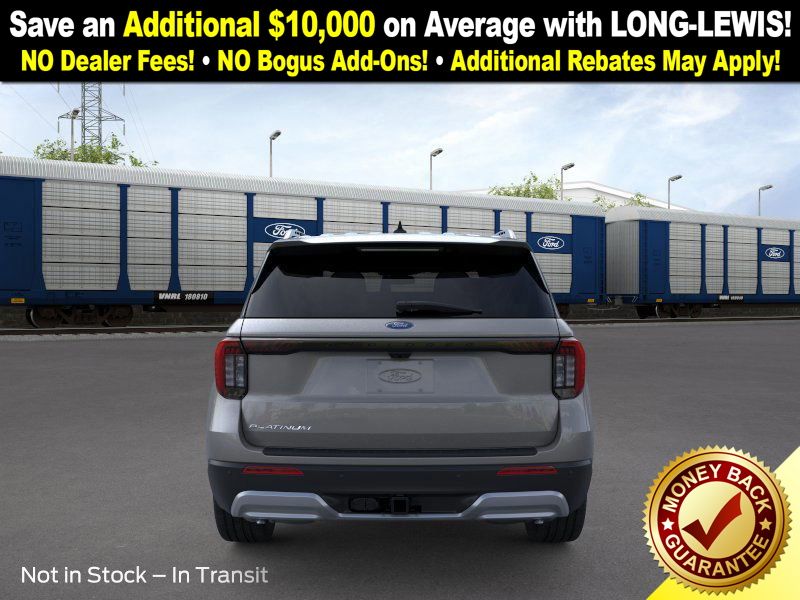 Carbonized Gray Metallic 2026 Ford Explorer Platinum NFT RWD 10-Speed Automatic 2.3L EcoBoost I-4 14 Speakers, 3rd row seats: bench, 4-Wheel Disc Brakes, ABS brakes, ActiveX Trimmed Captain's Chairs, Air Conditioning, Alloy wheels, AM/FM radio: SiriusXM with 360L, Apple CarPlay/Android Auto, Auto High-beam Headlights, Auto-dimming door mirrors, Auto-dimming Rear-View mirror, Automatic temperature control, Brake assist, Bumpers: body-color, Compass, Delay-off headlights, Driver door bin, Driver vanity mirror, Dual front impact airbags, Dual front side impact airbags, Electronic Stability Control, Emergency communication system: 911 Assist, Exterior Parking Camera Rear, Four wheel independent suspension, Front anti-roll bar, Front Bucket Seats, Front Center Armrest, Front dual zone A/C, Front fog lights, Front License Plate Bracket, Front reading lights, Fully automatic headlights, Garage door transmitter, Heated door mirrors, Heated front seats, Heated rear seats, Heated steering wheel, Illuminated entry, Internet access capable: FordPass Connect 5G, Knee airbag, Leather steering wheel, Low tire pressure warning, Memory seat, Navigation System, Occupant sensing airbag, Outside temperature display, Overhead airbag, Overhead console, Panic alarm, Panoramic Fixed Glass Roof with Power Shade, Passenger door bin, Passenger vanity mirror, Power door mirrors, Power driver seat, Power Liftgate, Power passenger seat, Power steering, Power windows, Radio data system, Radio: B&O Sound System by Bang & Olufsen with HD, Rain sensing wipers, Rear air conditioning, Rear anti-roll bar, Rear reading lights, Rear window defroster, Rear window wiper, Remote keyless entry, SecuriCode Keyless Entry Keypad, Security system, Speed control, Speed-sensing steering, Speed-Sensitive Wipers, Split folding rear seat, Spoiler, Steering wheel mounted audio controls, Tachometer, Telescoping steering wheel, Tilt steering wheel, Traction control, Trip computer, Turn signal indicator mirrors, Variably intermittent wipers, Ventilated front seats, Wheels: 20" Luster Nickel-Painted Aluminum.