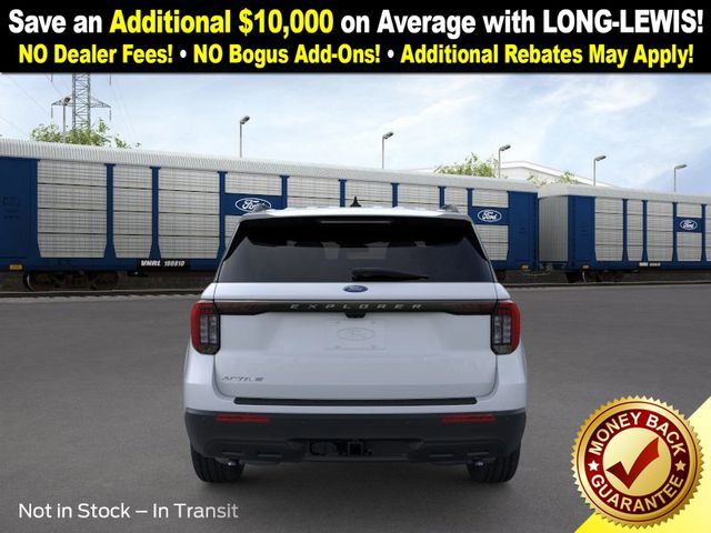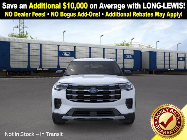 Space White Metallic 2026 Ford Explorer Active NFT RWD 10-Speed Automatic 2.3L EcoBoost I-4 2nd Row 35/30/35 Bench with E-Z Entry and Armrest, 3rd row seats: bench, 4-Wheel Disc Brakes, 6 Speakers, 8 USB Ports, ABS brakes, Active Badging, Active Noise Cancellation, Air Conditioning, Alloy wheels, AM/FM radio: SiriusXM with 360L, AM/FM Stereo, Apple CarPlay/Android Auto, Auto High-beam Headlights, Automatic temperature control, Black Lower Bodyside Cladding with Chrome Accent, Black Roof-Rack Side Rails, Brake assist, Bumpers: body-color, Compass, Delay-off headlights, Driver door bin, Driver vanity mirror, Dual front impact airbags, Dual front side impact airbags, Electronic Stability Control, Emergency communication system: 911 Assist, Equipment Group 200A Standard Package, Exterior Parking Camera Rear, Four wheel independent suspension, Front anti-roll bar, Front Bucket Seats, Front Center Armrest, Front dual zone A/C, Front reading lights, Fully automatic headlights, Heated ActiveX Seating Material Captain's Chairs, Heated door mirrors, Illuminated entry, Internet access capable: FordPass Connect 5G, Knee airbag, Low tire pressure warning, Manual-Folding Sideview Mirrors, Navigation System, Occupant sensing airbag, Outside temperature display, Overhead airbag, Overhead console, Panic alarm, Passenger door bin, Passenger vanity mirror, Power driver seat, Power Liftgate, Power steering, Power windows, Rear air conditioning, Rear anti-roll bar, Rear reading lights, Rear window defroster, Rear window wiper, Remote keyless entry, Security system, Speed control, Speed-sensing steering, Speed-Sensitive Wipers, Split folding rear seat, Spoiler, Steering wheel mounted audio controls, Tachometer, Telescoping steering wheel, Tilt steering wheel, Traction control, Trip computer, Unique Cloth Captain's Chairs, Unique Cloth Heated Captain's Chairs, Variably intermittent wipers, Vinyl-Wrapped Steering Wheel, Wheels: 18" Sparkle Silver-Painted Aluminum.