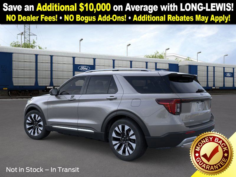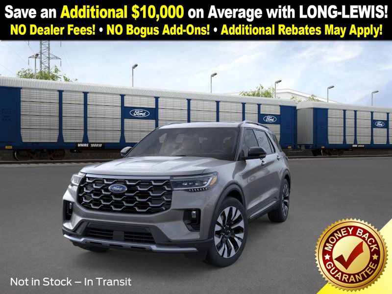 Carbonized Gray Metallic 2026 Ford Explorer Platinum NFT 4WD 10-Speed Automatic 2.3L EcoBoost I-4 4WD, 14 Speakers, 3rd row seats: bench, 4-Wheel Disc Brakes, ABS brakes, ActiveX Trimmed Captain's Chairs, Air Conditioning, Alloy wheels, AM/FM radio: SiriusXM with 360L, Apple CarPlay/Android Auto, Auto High-beam Headlights, Auto-dimming door mirrors, Auto-dimming Rear-View mirror, Automatic temperature control, Brake assist, Bumpers: body-color, Compass, Delay-off headlights, Driver door bin, Driver vanity mirror, Dual front impact airbags, Dual front side impact airbags, Electronic Stability Control, Emergency communication system: 911 Assist, Exterior Parking Camera Rear, Four wheel independent suspension, Front anti-roll bar, Front Bucket Seats, Front Center Armrest, Front dual zone A/C, Front fog lights, Front License Plate Bracket, Front reading lights, Fully automatic headlights, Garage door transmitter, Heated door mirrors, Heated front seats, Heated rear seats, Heated steering wheel, Illuminated entry, Internet access capable: FordPass Connect 5G, Knee airbag, Leather steering wheel, Low tire pressure warning, Lux Leather Package, Memory seat, Navigation System, Occupant sensing airbag, Outside temperature display, Overhead airbag, Overhead console, Panic alarm, Panoramic Fixed Glass Roof with Power Shade, Passenger door bin, Passenger vanity mirror, Platinum Badges on Front Row Seats, Power door mirrors, Power driver seat, Power Liftgate, Power passenger seat, Power steering, Power windows, Premium Leather Seating Surfaces Captain's Chairs, Quilting and Stitching on Door Panels, Quilting and Stitching on Seats, Radio data system, Radio: B&O Sound System by Bang & Olufsen with HD, Rain sensing wipers, Rear air conditioning, Rear anti-roll bar, Rear reading lights, Rear window defroster, Rear window wiper, Remote keyless entry, SecuriCode Keyless Entry Keypad, Security system, Speed control, Speed-sensing steering, Speed-Sensitive Wipers, Split folding rear seat, Spoiler, Steering wheel mounted audio controls, Tachometer, Telescoping steering wheel, Tilt steering wheel, Traction control, Trip computer, Turn signal indicator mirrors, Variably intermittent wipers, Ventilated front seats, Wheels: : 21" Bright Machined Aluminum w/Tarnish Dark Pockets, Wheels: 20" Luster Nickel-Painted Aluminum, 4WD.