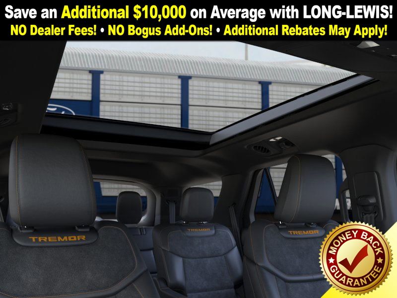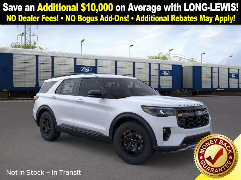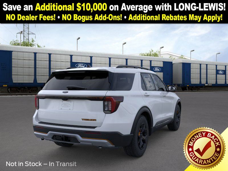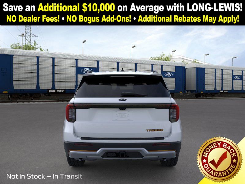 Space White Metallic 2026 Ford Explorer Tremor NFT 4WD 10-Speed Automatic 3.0L EcoBoost V6 4WD, 10 Speakers, 3rd Row PowerFold Seats, 3rd row seats: bench, 4-Wheel Disc Brakes, ABS brakes, Air Conditioning, Alloy wheels, AM/FM radio: SiriusXM with 360L, Ambient Lighting, Apple CarPlay/Android Auto, Auto High-beam Headlights, Automatic temperature control, BlueCruise Hardware, Brake assist, Bumpers: body-color, Compass, Delay-off headlights, Driver door bin, Driver vanity mirror, Dual front impact airbags, Dual front side impact airbags, Electronic Stability Control, Emergency communication system: 911 Assist, Exterior Parking Camera Rear, Four wheel independent suspension, Front anti-roll bar, Front Bucket Seats, Front Center Armrest, Front dual zone A/C, Front fog lights, Front License Plate Bracket, Front reading lights, Fully automatic headlights, Heated door mirrors, Heated front seats, Heated rear seats, Heated steering wheel, Heated/Ventilated Miko Captain's Chairs, Illuminated entry, Internet access capable: FordPass Connect 5G, Knee airbag, Leather steering wheel, Low tire pressure warning, Memory Driver's Seat, Multicontour Seats with Front Active Motion, Navigation System, Occupant sensing airbag, Outside temperature display, Overhead airbag, Overhead console, Panic alarm, Panoramic Fixed Glass Roof with Power Shade, Passenger door bin, Passenger vanity mirror, Power door mirrors, Power driver seat, Power Liftgate, Power passenger seat, Power steering, Power windows, Power-Folding with Autofold Side Mirrors, Radio: B&O Sound System by Bang & Olufsen, Radio: B&O Sound System by Bang and Olufsen, Rain-Sensing Wipers (front Only), Rear air conditioning, Rear anti-roll bar, Rear reading lights, Rear window defroster, Rear window wiper, Remote keyless entry, SecuriCode Keyless Entry Keypad, Security system, Speed control, Speed-sensing steering, Speed-Sensitive Wipers, Split folding rear seat, Spoiler, Sport steering wheel, Steering wheel mounted audio controls, Tachometer, Telescoping steering wheel, Tilt steering wheel, Traction control, Tremor Ultimate Package, Trip computer, Variably intermittent wipers, Ventilated front seats, Wheels: 18" High Gloss Black-Painted Aluminum, 4WD.