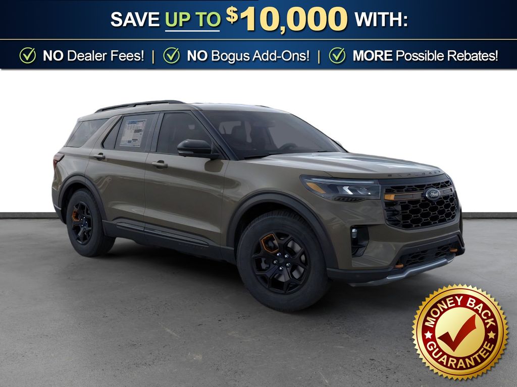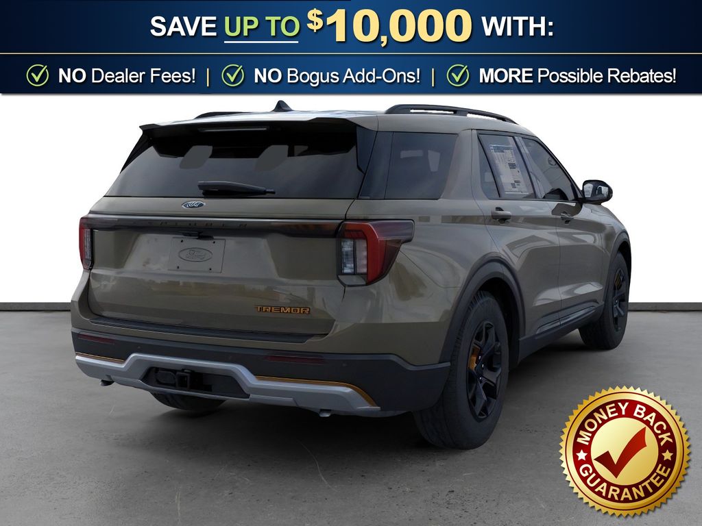 Marsh Gray 2026 Ford Explorer Tremor NFT 4WD 10-Speed Automatic 2.3L EcoBoost I-4 4WD, 10 Speakers, 3rd Row PowerFold Seats, 3rd row seats: bench, 4-Wheel Disc Brakes, ABS brakes, Air Conditioning, Alloy wheels, AM/FM radio: SiriusXM with 360L, Ambient Lighting, Apple CarPlay/Android Auto, Auto High-beam Headlights, Auto-Dimming Interior Rear-View Mirror, Automatic temperature control, Brake assist, Bumpers: body-color, Compass, Delay-off headlights, Driver door bin, Driver vanity mirror, Dual front impact airbags, Dual front side impact airbags, Electronic Stability Control, Emergency communication system: 911 Assist, Exterior Parking Camera Rear, Four wheel independent suspension, Front anti-roll bar, Front Bucket Seats, Front Center Armrest, Front dual zone A/C, Front fog lights, Front License Plate Bracket, Front reading lights, Fully automatic headlights, Garage door transmitter, Heated door mirrors, Heated front seats, Heated rear seats, Heated steering wheel, Heated/Ventilated Miko Suede Captain's Chairs, Illuminated entry, Knee airbag, Leather steering wheel, Low tire pressure warning, Manual-Folding Sideview Mirrors, Memory Driver's Seat, Navigation System, Occupant sensing airbag, Outside temperature display, Overhead airbag, Overhead console, Panic alarm, Passenger door bin, Passenger vanity mirror, Power door mirrors, Power driver seat, Power Liftgate, Power passenger seat, Power steering, Power windows, Radio: B&O Sound System by Bang and Olufsen, Rain-Sensing Wipers (front Only), Rear air conditioning, Rear anti-roll bar, Rear reading lights, Rear window defroster, Rear window wiper, Remote keyless entry, SecuriCode Keyless Entry Keypad, Security system, Speed control, Speed-sensing steering, Speed-Sensitive Wipers, Split folding rear seat, Spoiler, Sport steering wheel, Steering wheel mounted audio controls, Tachometer, Telescoping steering wheel, Tilt steering wheel, Traction control, Tremor Convenience Package, Trip computer, Variably intermittent wipers, Ventilated front seats, Wheels: 18" High Gloss Black-Painted Aluminum, 4WD.