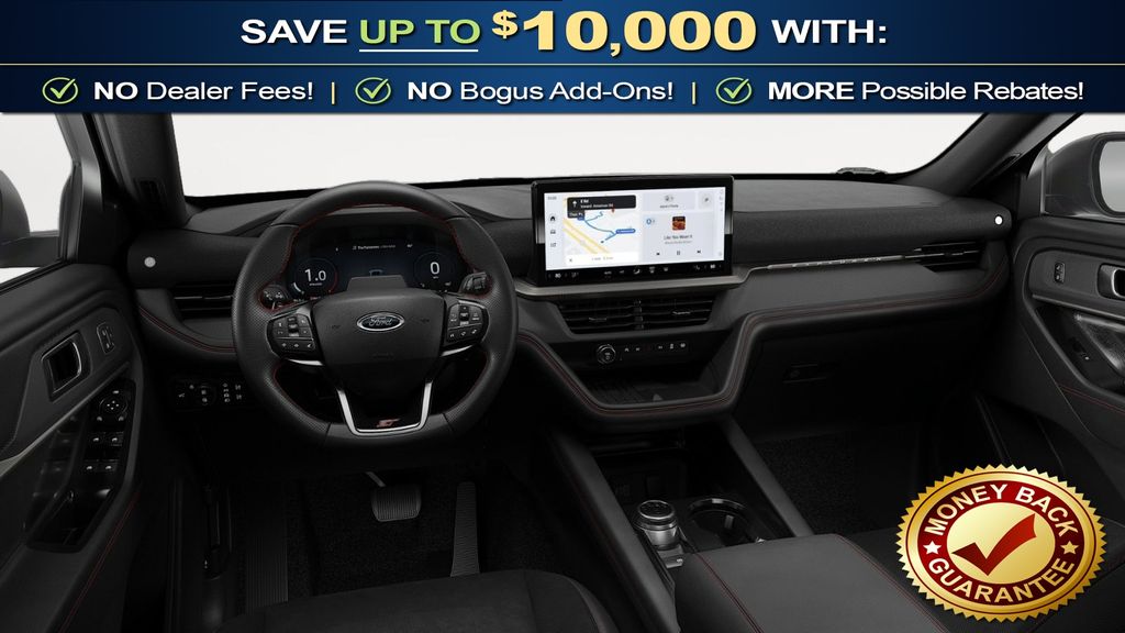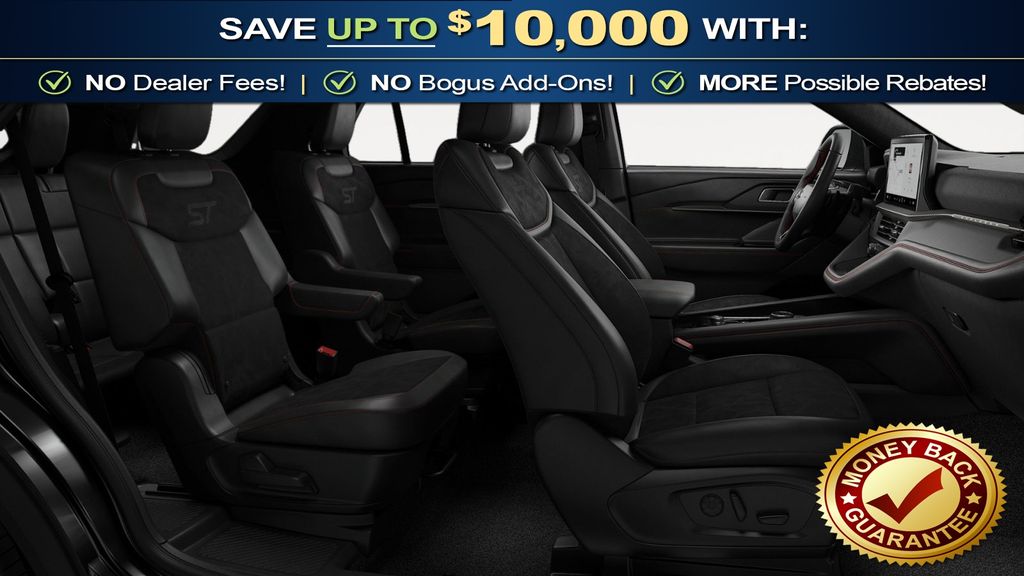 Agate Black Metallic 2026 Ford Explorer ST NFT RWD 10-Speed Automatic 3.0L EcoBoost V6 10 Speakers, 3rd row seats: bench, 4-Wheel Disc Brakes, ABS brakes, Air Conditioning, Alloy wheels, AM/FM radio: SiriusXM with 360L, Apple CarPlay/Android Auto, Auto High-beam Headlights, Auto-dimming door mirrors, Auto-dimming Rear-View mirror, Automatic temperature control, BlueCruise Equipped (1-Year + 90-Day Plan), Brake assist, Bumpers: body-color, Compass, Delay-off headlights, Driver door bin, Driver vanity mirror, Dual front impact airbags, Dual front side impact airbags, Electronic Stability Control, Emergency communication system: 911 Assist, Exterior Parking Camera Rear, Ford Connectivity Package (one-Time Purchase - 7 Years), Four wheel independent suspension, Front anti-roll bar, Front Bucket Seats, Front Center Armrest, Front dual zone A/C, Front fog lights, Front License Plate Bracket, Front reading lights, Fully automatic headlights, Garage door transmitter, Heated door mirrors, Heated front seats, Heated rear seats, Heated steering wheel, Heated/Ventilated Miko Suede Captain's Chairs, Illuminated entry, Knee airbag, Leather steering wheel, Low tire pressure warning, Memory seat, Multicontour Seats with Front Active Motion, Navigation System, Occupant sensing airbag, Outside temperature display, Overhead airbag, Overhead console, Panic alarm, Panoramic Fixed Glass Roof with Power Shade, Passenger door bin, Passenger vanity mirror, Power door mirrors, Power driver seat, Power Liftgate, Power passenger seat, Power steering, Power windows, Radio: B&O Sound System by Bang & Olufsen, Radio: B&O Sound System by Bang and Olufsen, Rain sensing wipers, Rear air conditioning, Rear anti-roll bar, Rear reading lights, Rear window defroster, Rear window wiper, Remote Control Front Windows, Remote keyless entry, SecuriCode Keyless Entry Keypad, Security system, Speed control, Speed-sensing steering, Speed-Sensitive Wipers, Split folding rear seat, Spoiler, Sport steering wheel, Steering wheel mounted audio controls, Sun and Sound Package, Tachometer, Telescoping steering wheel, Tilt steering wheel, Traction control, Trip computer, Turn signal indicator mirrors, Variably intermittent wipers, Ventilated front seats, Wheels: 21" Magnetite-Painted Aluminum.