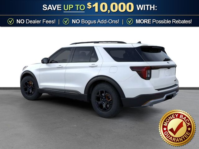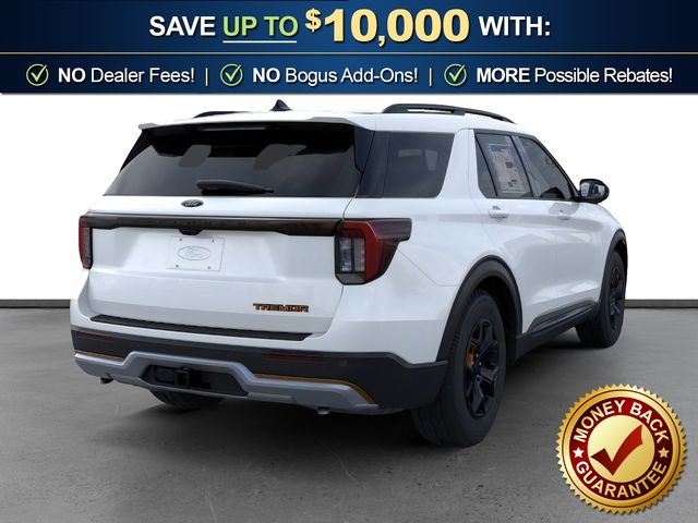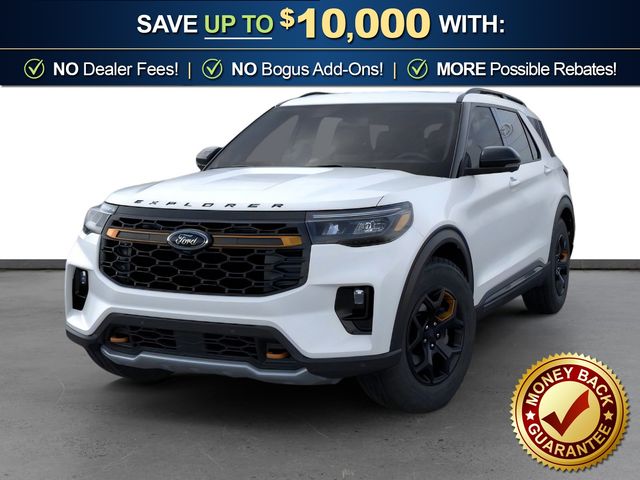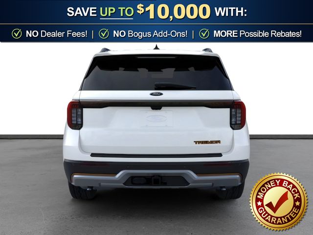 2026 Ford Explorer Tremor NFT Star White Metallic Tri-Coat Tremor NFT 4WD 10-Speed Automatic 3.0L EcoBoost V6 4WD, 10 Speakers, 3rd Row PowerFold Seats, 3rd row seats: bench, 4-Wheel Disc Brakes, ABS brakes, Air Conditioning, Alloy wheels, AM/FM radio: SiriusXM with 360L, Ambient Lighting, Apple CarPlay/Android Auto, Auto High-beam Headlights, Automatic temperature control, BlueCruise Hardware, Brake assist, Bumpers: body-color, Compass, Delay-off headlights, Driver door bin, Driver vanity mirror, Dual front impact airbags, Dual front side impact airbags, Electronic Stability Control, Emergency communication system: 911 Assist, Exterior Parking Camera Rear, Four wheel independent suspension, Front anti-roll bar, Front Bucket Seats, Front Center Armrest, Front dual zone A/C, Front fog lights, Front reading lights, Fully automatic headlights, Garage door transmitter, Heated door mirrors, Heated front seats, Heated rear seats, Heated steering wheel, Heated/Ventilated Miko Suede Captain's Chairs, Illuminated entry, Knee airbag, Leather steering wheel, Low tire pressure warning, Memory Driver's Seat, Multicontour Seats with Front Active Motion, Navigation System, Occupant sensing airbag, Outside temperature display, Overhead airbag, Overhead console, Panic alarm, Panoramic Fixed Glass Roof with Power Shade, Passenger door bin, Passenger vanity mirror, Power door mirrors, Power driver seat, Power Liftgate, Power passenger seat, Power steering, Power windows, Power-Folding with Autofold Side Mirrors, Radio: B&O Sound System by Bang & Olufsen, Radio: B&O Sound System by Bang and Olufsen, Rain-Sensing Wipers (front Only), Rear air conditioning, Rear anti-roll bar, Rear reading lights, Rear window defroster, Rear window wiper, Remote keyless entry, Security system, Speed control, Speed-sensing steering, Speed-Sensitive Wipers, Split folding rear seat, Spoiler, Sport steering wheel, Steering wheel mounted audio controls, Tachometer, Telescoping steering wheel, Tilt steering wheel, Traction control, Tremor Ultimate Package, Trip computer, Variably intermittent wipers, Ventilated front seats, Wheels: 18" High Gloss Black-Painted Aluminum, 4WD.