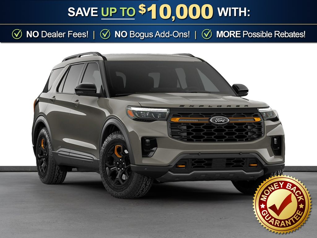 Marsh Gray 2026 Ford Explorer Tremor NFT 4WD 10-Speed Automatic 3.0L EcoBoost V6 4WD, 10 Speakers, 3rd Row PowerFold Seats, 3rd row seats: bench, 4-Wheel Disc Brakes, ABS brakes, Air Conditioning, Alloy wheels, AM/FM radio: SiriusXM with 360L, Ambient Lighting, Apple CarPlay/Android Auto, Auto High-beam Headlights, Automatic temperature control, BlueCruise Hardware, Brake assist, Bumpers: body-color, Compass, Delay-off headlights, Driver door bin, Driver vanity mirror, Dual front impact airbags, Dual front side impact airbags, Electronic Stability Control, Emergency communication system: 911 Assist, Exterior Parking Camera Rear, Four wheel independent suspension, Front anti-roll bar, Front Bucket Seats, Front Center Armrest, Front dual zone A/C, Front fog lights, Front License Plate Bracket, Front reading lights, Fully automatic headlights, Garage door transmitter, Heated door mirrors, Heated front seats, Heated rear seats, Heated steering wheel, Heated/Ventilated Miko Suede Captain's Chairs, Illuminated entry, Knee airbag, Leather steering wheel, Low tire pressure warning, Memory Driver's Seat, Multicontour Seats with Front Active Motion, Navigation System, Occupant sensing airbag, Outside temperature display, Overhead airbag, Overhead console, Panic alarm, Panoramic Fixed Glass Roof with Power Shade, Passenger door bin, Passenger vanity mirror, Power door mirrors, Power driver seat, Power Liftgate, Power passenger seat, Power steering, Power windows, Power-Folding with Autofold Side Mirrors, Radio: B&O Sound System by Bang & Olufsen, Radio: B&O Sound System by Bang and Olufsen, Rain-Sensing Wipers (front Only), Rear air conditioning, Rear anti-roll bar, Rear reading lights, Rear window defroster, Rear window wiper, Remote keyless entry, SecuriCode Keyless Entry Keypad, Security system, Speed control, Speed-sensing steering, Speed-Sensitive Wipers, Split folding rear seat, Spoiler, Sport steering wheel, Steering wheel mounted audio controls, Tachometer, Telescoping steering wheel, Tilt steering wheel, Traction control, Tremor Ultimate Package, Trip computer, Variably intermittent wipers, Ventilated front seats, Wheels: 18" High Gloss Black-Painted Aluminum, 4WD.
