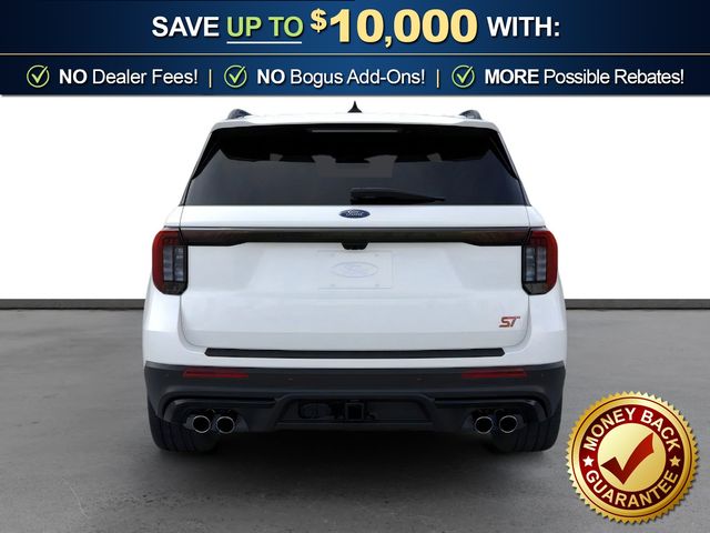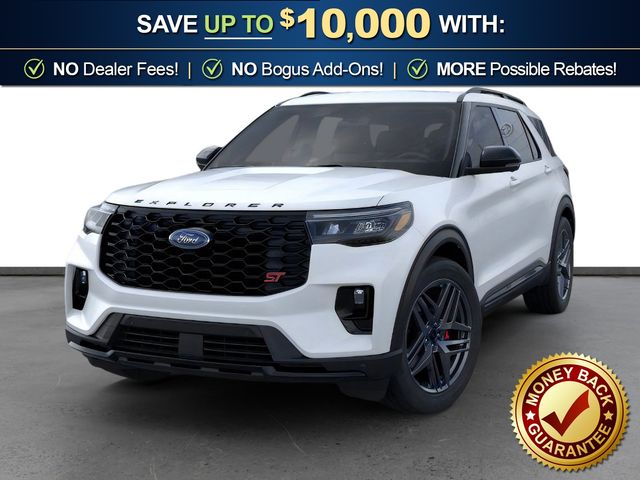 2026 Ford Explorer ST FCT Star White Metallic Tri-Coat ST FCT RWD 10-Speed Automatic 3.0L EcoBoost V6 10 Speakers, 3rd row seats: bench, 4-Wheel Disc Brakes, ABS brakes, Air Conditioning, Alloy wheels, AM/FM radio: SiriusXM with 360L, Apple CarPlay/Android Auto, Auto High-beam Headlights, Auto-dimming door mirrors, Auto-dimming Rear-View mirror, Automatic temperature control, BlueCruise Equipped (1-Year + 90-Day Plan), Brake assist, Bumpers: body-color, Compass, Delay-off headlights, Driver door bin, Driver vanity mirror, Dual front impact airbags, Dual front side impact airbags, Electronic Stability Control, Emergency communication system: 911 Assist, Exterior Parking Camera Rear, Four wheel independent suspension, Front anti-roll bar, Front Bucket Seats, Front Center Armrest, Front dual zone A/C, Front fog lights, Front reading lights, Fully automatic headlights, Garage door transmitter, Heated door mirrors, Heated front seats, Heated rear seats, Heated steering wheel, Heated/Ventilated Miko Suede Captain's Chairs, Illuminated entry, Knee airbag, Leather steering wheel, Low tire pressure warning, Memory seat, Multicontour Seats with Front Active Motion, Navigation System, Occupant sensing airbag, Outside temperature display, Overhead airbag, Overhead console, Panic alarm, Panoramic Fixed Glass Roof with Power Shade, Passenger door bin, Passenger vanity mirror, Power door mirrors, Power driver seat, Power Liftgate, Power passenger seat, Power steering, Power windows, Radio: B&O Sound System by Bang & Olufsen, Radio: B&O Sound System by Bang and Olufsen, Rain sensing wipers, Rear air conditioning, Rear anti-roll bar, Rear reading lights, Rear window defroster, Rear window wiper, Remote Control Front Windows, Remote keyless entry, Security system, Speed control, Speed-sensing steering, Speed-Sensitive Wipers, Split folding rear seat, Spoiler, Sport steering wheel, Steering wheel mounted audio controls, Sun and Sound Package, Tachometer, Telescoping steering wheel, Tilt steering wheel, Traction control, Trip computer, Turn signal indicator mirrors, Variably intermittent wipers, Ventilated front seats, Wheels: 21" Magnetite-Painted Aluminum.