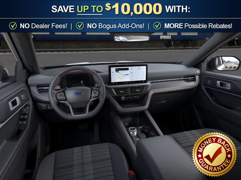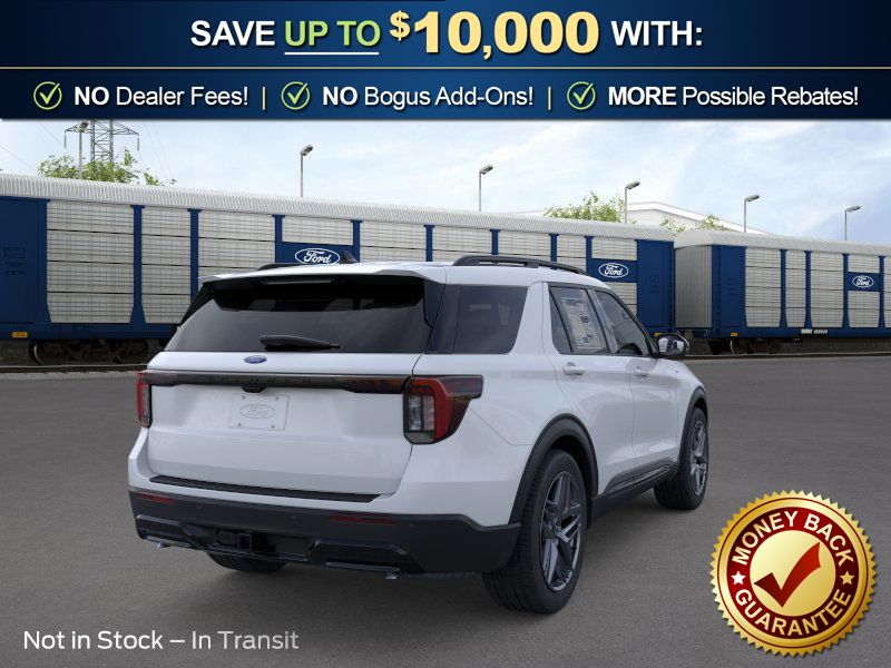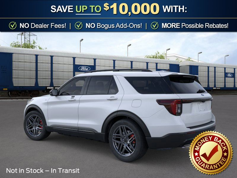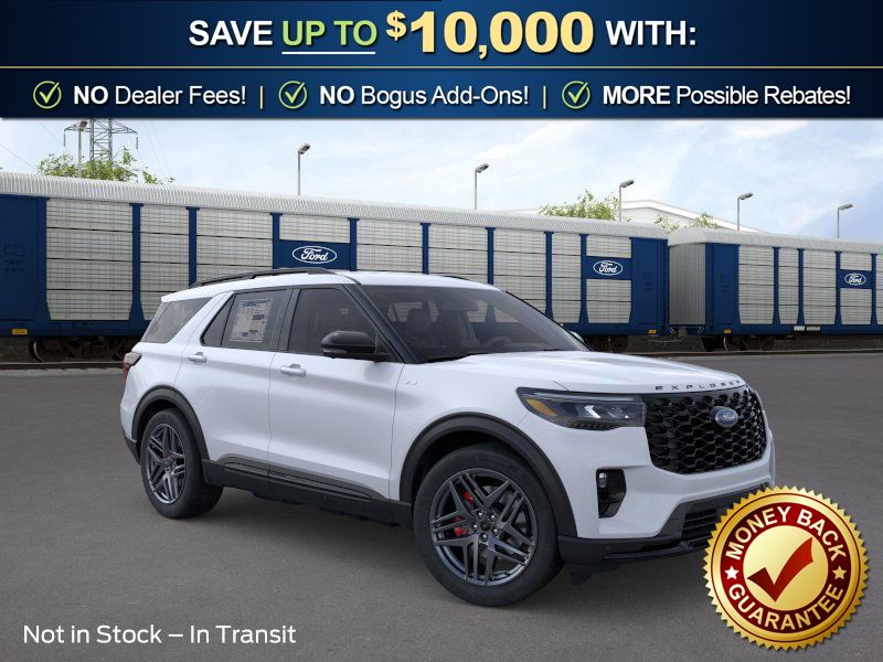 Space White Metallic 2026 Ford Explorer ST-Line NFT RWD 10-Speed Automatic 2.3L EcoBoost I-4 10 Speakers, 110V/150W AC Power Outlet, 2nd Row Captain's Chairs w/E-Z Entry and Armrest, 2nd Row Heated Seats, 3rd row seats: bench, 4-Wheel Disc Brakes, ABS brakes, Air Conditioning, Alloy wheels, AM/FM radio: SiriusXM with 360L, Ambient Lighting, Apple CarPlay/Android Auto, Auto High-beam Headlights, Auto-Dimming Interior Rear-View Mirror, Automatic temperature control, BlueCruise (equipment + 1-Year + 90-Day Plan), BlueCruise Hardware, Brake assist, Bumpers: body-color, Compass, Delay-off headlights, Driver door bin, Driver vanity mirror, Dual front impact airbags, Dual front side impact airbags, Electronic Stability Control, Emergency communication system: 911 Assist, Exterior Parking Camera Rear, Ford Connectivity Package (one-Time Purchase - 7 Years), Four wheel independent suspension, Front anti-roll bar, Front Bucket Seats, Front Center Armrest, Front dual zone A/C, Front fog lights, Front License Plate Bracket, Front reading lights, Fully automatic headlights, Garage door transmitter, Heated door mirrors, Heated front seats, Heated steering wheel, Heated Unique Cloth Captain's Chairs, Illuminated entry, Knee airbag, Leather steering wheel, Low tire pressure warning, Manual-Folding Sideview Mirrors, Memory Driver's Seat, Navigation System, Occupant sensing airbag, Outside temperature display, Overhead airbag, Overhead console, Panic alarm, Passenger door bin, Passenger vanity mirror, Performance Brakes, Power door mirrors, Power driver seat, Power Liftgate, Power passenger seat, Power steering, Power windows, Premium Package, Radio: B&O Sound System by Bang and Olufsen, Rain-Sensing Wipers (front Only), Rear air conditioning, Rear anti-roll bar, Rear reading lights, Rear window defroster, Rear window wiper, Red Painted Performance Front and Rear Brake Calipers, Remote keyless entry, SecuriCode Keyless Entry Keypad, Security system, Speed control, Speed-sensing steering, Speed-Sensitive Wipers, Split folding rear seat, Spoiler, ST-Line Street Pack, Steering wheel mounted audio controls, Tachometer, Telescoping steering wheel, Tilt steering wheel, Traction control, Trip computer, Variably intermittent wipers, Wheels: 20" Ebony-Painted Machined Aluminum, Wheels: 21" Magnetite-Painted Aluminum.