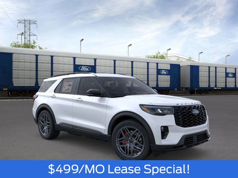 Star White Metallic Tri-Coat 2026 Ford Explorer ST NFT 4WD 10-Speed Automatic 3.0L EcoBoost V6 4WD, 10 Speakers, 3rd row seats: bench, 4-Wheel Disc Brakes, ABS brakes, Air Conditioning, Alloy wheels, AM/FM radio: SiriusXM with 360L, Apple CarPlay/Android Auto, Auto High-beam Headlights, Auto-dimming door mirrors, Auto-dimming Rear-View mirror, Automatic temperature control, Brake assist, Bumpers: body-color, Compass, Delay-off headlights, Driver door bin, Driver vanity mirror, Dual front impact airbags, Dual front side impact airbags, Electronic Stability Control, Emergency communication system: 911 Assist, Exterior Parking Camera Rear, Four wheel independent suspension, Front anti-roll bar, Front Bucket Seats, Front Center Armrest, Front dual zone A/C, Front fog lights, Front License Plate Bracket, Front reading lights, Fully automatic headlights, Garage door transmitter, Heated door mirrors, Heated front seats, Heated rear seats, Heated steering wheel, Heated/Ventilated Miko Captain's Chairs, Illuminated entry, Internet access capable: FordPass Connect 5G, Knee airbag, Leather steering wheel, Low tire pressure warning, Memory seat, Multicontour Seats with Front Active Motion, Navigation System, Occupant sensing airbag, Outside temperature display, Overhead airbag, Overhead console, Panic alarm, Panoramic Fixed Glass Roof with Power Shade, Passenger door bin, Passenger vanity mirror, Power door mirrors, Power driver seat, Power Liftgate, Power passenger seat, Power steering, Power windows, Radio: B&O Sound System by Bang & Olufsen, Radio: B&O Sound System by Bang and Olufsen, Rain sensing wipers, Rear air conditioning, Rear anti-roll bar, Rear reading lights, Rear window defroster, Rear window wiper, Remote Control Front Windows, Remote keyless entry, SecuriCode Keyless Entry Keypad, Security system, Speed control, Speed-sensing steering, Speed-Sensitive Wipers, Split folding rear seat, Spoiler, Sport steering wheel, Steering wheel mounted audio controls, Sun and Sound Package, Tachometer, Telescoping steering wheel, Tilt steering wheel, Traction control, Trip computer, Turn signal indicator mirrors, Variably intermittent wipers, Ventilated front seats, Wheels: 21" Magnetite-Painted Aluminum, 4WD.