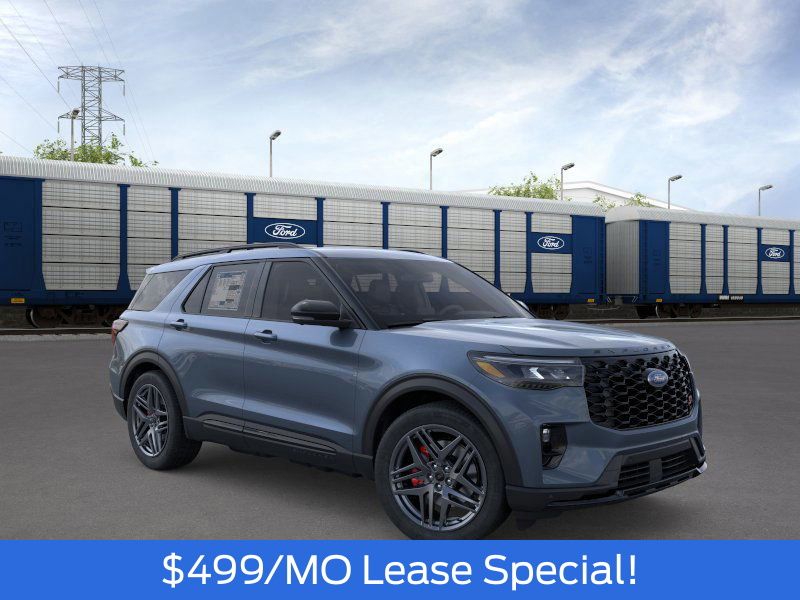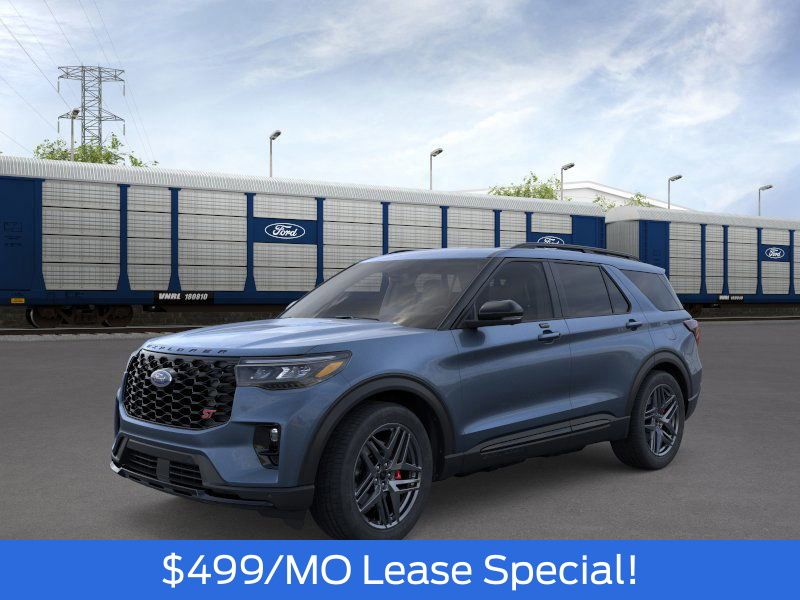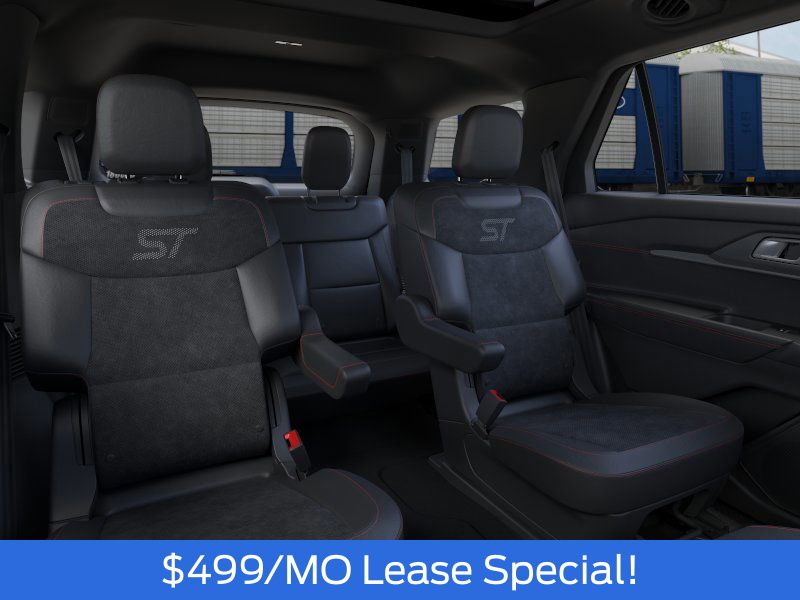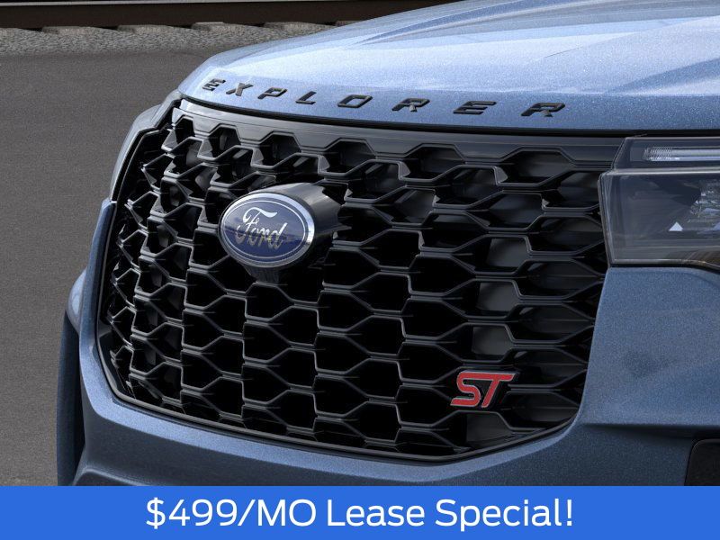 Vapor Blue Metallic 2026 Ford Explorer ST NFT RWD 10-Speed Automatic 3.0L EcoBoost V6 10 Speakers, 3rd row seats: bench, 4-Wheel Disc Brakes, ABS brakes, Air Conditioning, Alloy wheels, AM/FM radio: SiriusXM with 360L, Apple CarPlay/Android Auto, Auto High-beam Headlights, Auto-dimming door mirrors, Auto-dimming Rear-View mirror, Automatic temperature control, Brake assist, Bumpers: body-color, Compass, Delay-off headlights, Driver door bin, Driver vanity mirror, Dual front impact airbags, Dual front side impact airbags, Electronic Stability Control, Emergency communication system: 911 Assist, Exterior Parking Camera Rear, Four wheel independent suspension, Front anti-roll bar, Front Bucket Seats, Front Center Armrest, Front dual zone A/C, Front fog lights, Front License Plate Bracket, Front reading lights, Fully automatic headlights, Garage door transmitter, Heated door mirrors, Heated front seats, Heated rear seats, Heated steering wheel, Heated/Ventilated Miko Captain's Chairs, Illuminated entry, Internet access capable: FordPass Connect 5G, Knee airbag, Leather steering wheel, Low tire pressure warning, Memory seat, Multicontour Seats with Front Active Motion, Navigation System, Occupant sensing airbag, Outside temperature display, Overhead airbag, Overhead console, Panic alarm, Panoramic Fixed Glass Roof with Power Shade, Passenger door bin, Passenger vanity mirror, Power door mirrors, Power driver seat, Power Liftgate, Power passenger seat, Power steering, Power windows, Radio: B&O Sound System by Bang & Olufsen, Radio: B&O Sound System by Bang and Olufsen, Rain sensing wipers, Rear air conditioning, Rear anti-roll bar, Rear reading lights, Rear window defroster, Rear window wiper, Remote Control Front Windows, Remote keyless entry, SecuriCode Keyless Entry Keypad, Security system, Speed control, Speed-sensing steering, Speed-Sensitive Wipers, Split folding rear seat, Spoiler, Sport steering wheel, Steering wheel mounted audio controls, Sun and Sound Package, Tachometer, Telescoping steering wheel, Tilt steering wheel, Traction control, Trip computer, Turn signal indicator mirrors, Variably intermittent wipers, Ventilated front seats, Wheels: 21" Magnetite-Painted Aluminum.