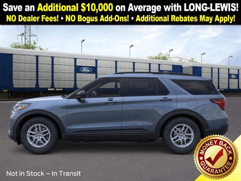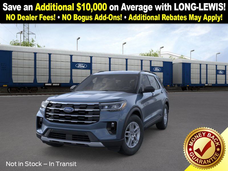 Vapor Blue Metallic 2026 Ford Explorer Active NFT RWD 10-Speed Automatic 2.3L EcoBoost I-4 3rd row seats: bench, 4-Wheel Disc Brakes, 6 Speakers, ABS brakes, Active Comfort Package, Air Conditioning, Alloy wheels, AM/FM radio: SiriusXM with 360L, AM/FM Stereo, Apple CarPlay/Android Auto, Auto High-beam Headlights, Automatic temperature control, Brake assist, Bumpers: body-color, Compass, Delay-off headlights, Driver door bin, Driver vanity mirror, Dual front impact airbags, Dual front side impact airbags, Electronic Stability Control, Emergency communication system: 911 Assist, Exterior Parking Camera Rear, Four wheel independent suspension, Front anti-roll bar, Front Bucket Seats, Front Center Armrest, Front dual zone A/C, Front Fascia, Front License Plate Bracket, Front reading lights, Fully automatic headlights, Heated ActiveX Seating Material Captain's Chairs, Heated door mirrors, Heated Steering Wheel, Illuminated entry, Internet access capable: FordPass Connect 5G, Knee airbag, Low tire pressure warning, Navigation System, Occupant sensing airbag, Outside temperature display, Overhead airbag, Overhead console, Panic alarm, Passenger door bin, Passenger vanity mirror, Power driver seat, Power steering, Power windows, Rear air conditioning, Rear anti-roll bar, Rear reading lights, Rear window defroster, Rear window wiper, Remote keyless entry, Remote Start System, Second Row Hvac Controls, SecuriCode Keyless Entry Keypad, Security system, Speed control, Speed-sensing steering, Speed-Sensitive Wipers, Split folding rear seat, Spoiler, Steering wheel mounted audio controls, Tachometer, Telescoping steering wheel, Tilt steering wheel, Traction control, Trip computer, Unique Cloth Captain's Chairs, Variably intermittent wipers, Wheels: 18" Sparkle Silver-Painted Aluminum.