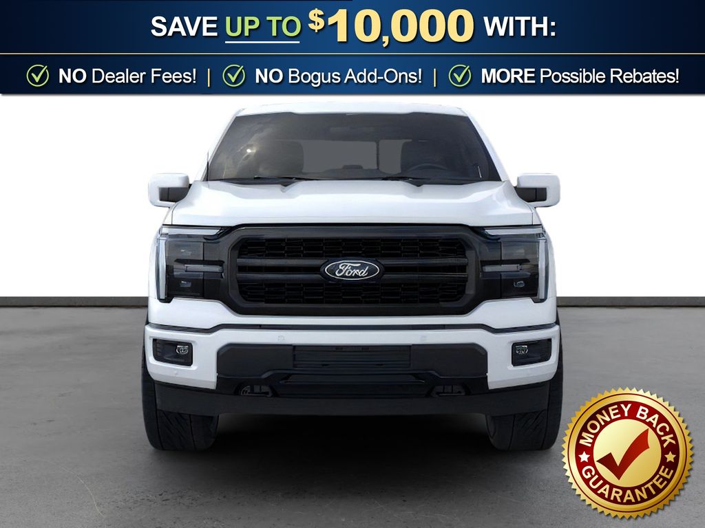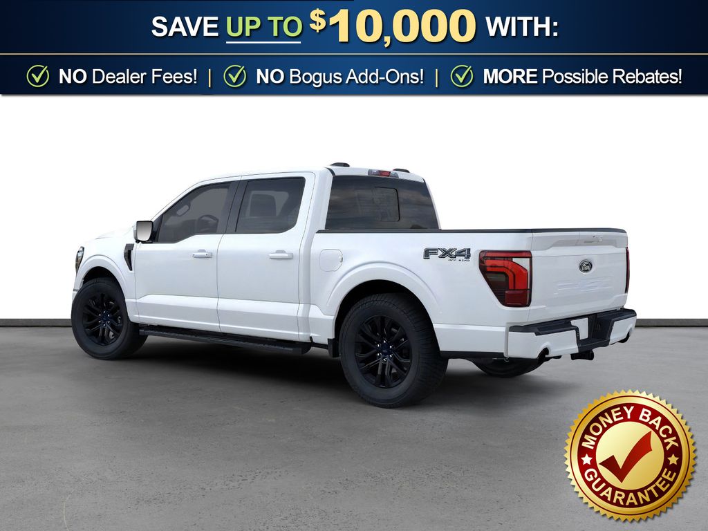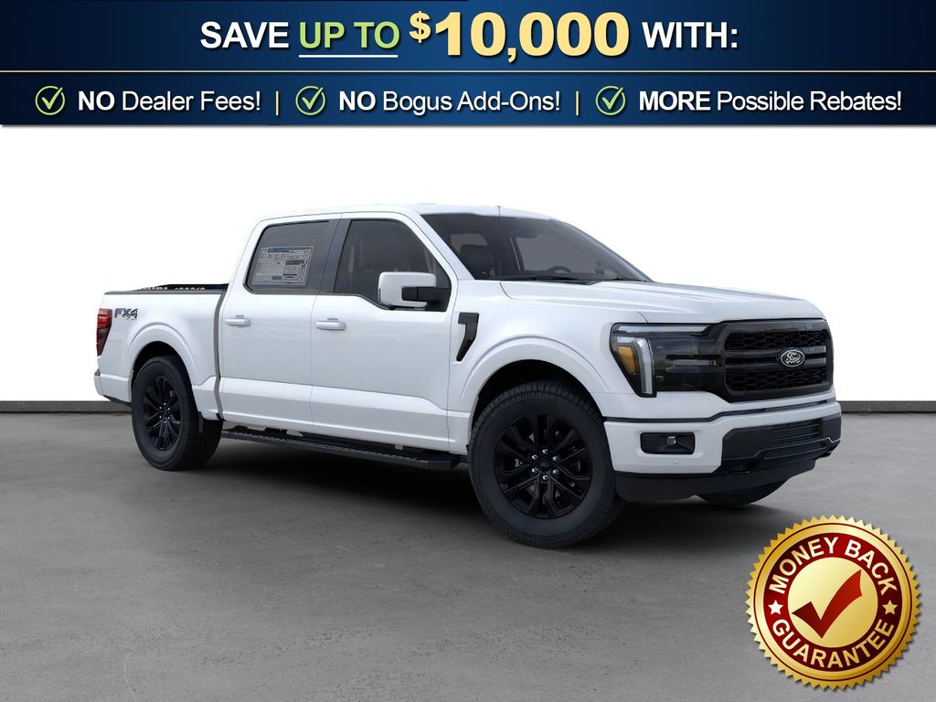 Star White Metallic Tri-Coat 2026 Ford F-150 Lariat NFT 4WD 10-Speed Automatic 5.0L V8 4WD, 4-Wheel Disc Brakes, 4x4 FX4 Off-Road Bodyside Decal, 8 Speakers, ABS brakes, ActiveX Trimmed Bucket Seats, Air Conditioning, Alloy wheels, AM/FM radio: SiriusXM with 360L, Auto High-beam Headlights, Auto-dimming door mirrors, Auto-dimming Rear-View mirror, Automatic temperature control, Black Exterior Badging, Black Grille, Black Taillamp Bezels, Body-Color Front and Rear Bumpers, Brake assist, Bumpers: chrome, Chrome wheels, Compass, Dark Interior Appliques, Delay-off headlights, Driver door bin, Driver vanity mirror, Driver's Side SecuriCode Keyless-Entry Keypad, Dual front impact airbags, Dual front side impact airbags, Electronic Stability Control, Emergency communication system: SYNC 4 911 Assist, Ford Connectivity Package (1-Year Included), Front anti-roll bar, Front Bucket Seats, Front Center Armrest, Front dual zone A/C, Front fog lights, Front License Plate Bracket, Front reading lights, Front wheel independent suspension, Fully automatic headlights, FX4 Off-Road Package, Garage door transmitter, Gray Box Side Decal, Heated door mirrors, Heated front seats, Heated steering wheel, Hill Descent Control, Illuminated entry, Integrated Trailer Brake Controller, Internet access capable: 5G Modem - Ford Connectivity Package, Lariat Black Appearance Package, Low tire pressure warning, Matte Black Tailgate F-150 Decal, Memory seat, Monotube Rear Shocks, Navigation system: Connected Navigation, Occupant sensing airbag, Off-Road Tuned Front Shock Absorbers, Outside temperature display, Overhead airbag, Overhead console, Panic alarm, Passenger door bin, Passenger vanity mirror, Power door mirrors, Power driver seat, Power passenger seat, Power steering, Power windows, Radio data system, Radio: B&O Sound System by Bang and Olufsen, Rain sensing wipers, Rear reading lights, Rear seat center armrest, Rear step bumper, Rear window defroster, Remote keyless entry, Rock Crawl Mode, Security system, Speed control, Split folding rear seat, Steering wheel mounted audio controls, SYNC 4 with Enhanced Voice Recognition, Tachometer, Telescoping steering wheel, Tilt steering wheel, Tow/Haul Package, Traction control, Tray Style Floor Liner Without Carpet Mats, Trip computer, Turn signal indicator mirrors, Twin Panel Moonroof, Variably intermittent wipers, Ventilated front seats, Wheels: 18" Chrome-Like PVD, 4WD.