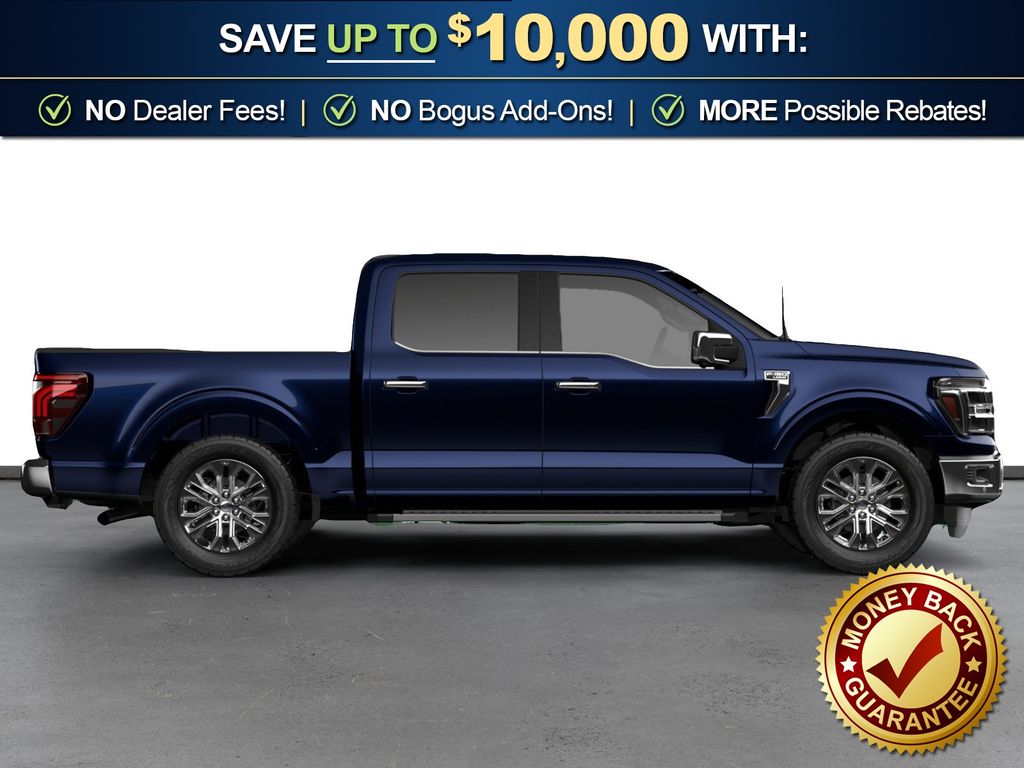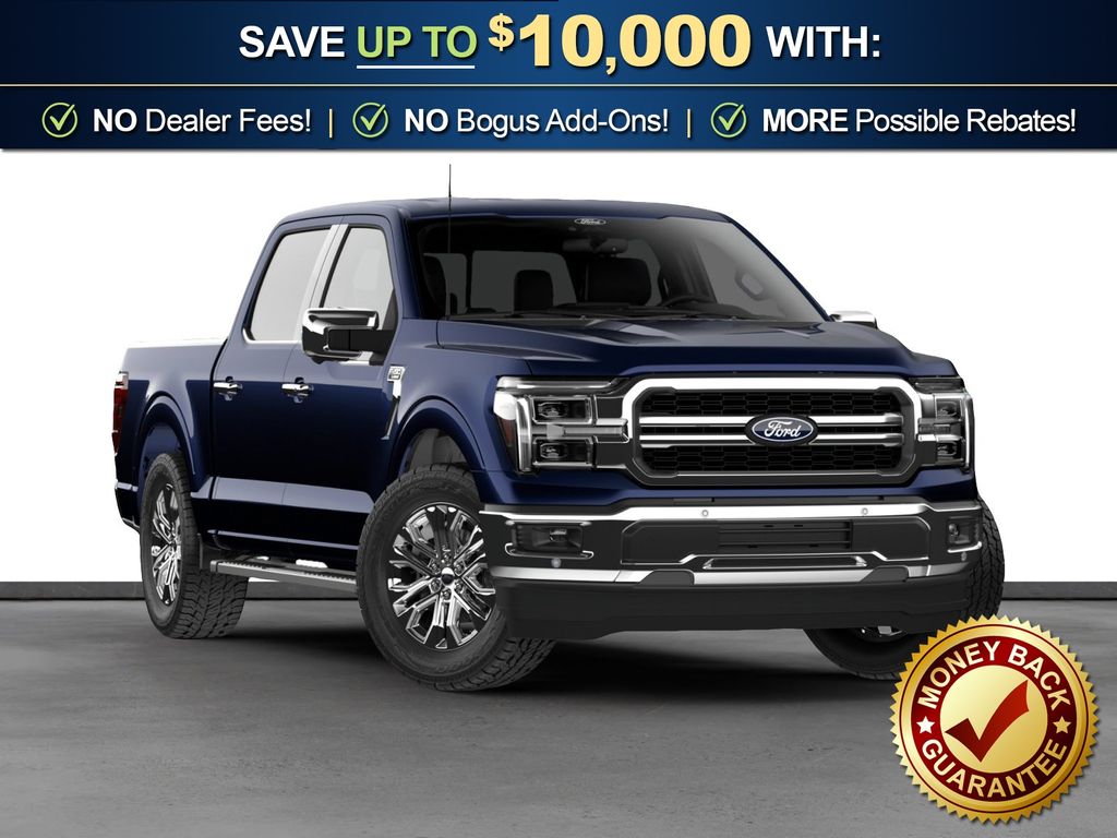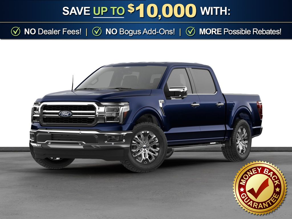 Antimatter Blue Metallic 2026 Ford F-150 Lariat NFT 4WD 10-Speed Automatic 5.0L V8 4WD, 4-Wheel Disc Brakes, 4x4 FX4 Off-Road Bodyside Decal, 8 Speakers, ABS brakes, ActiveX Trimmed Bucket Seats, Air Conditioning, Alloy wheels, AM/FM radio: SiriusXM with 360L, Auto High-beam Headlights, Auto-dimming door mirrors, Auto-dimming Rear-View mirror, Automatic temperature control, Brake assist, Bumpers: chrome, Chrome wheels, Compass, Delay-off headlights, Driver door bin, Driver vanity mirror, Dual front impact airbags, Dual front side impact airbags, Electronic Stability Control, Emergency communication system: SYNC 4 911 Assist, Ford Connectivity Package (1-Year Included), Front anti-roll bar, Front Bucket Seats, Front Center Armrest, Front dual zone A/C, Front fog lights, Front License Plate Bracket, Front reading lights, Front wheel independent suspension, Fully automatic headlights, FX4 Off-Road Package, Garage door transmitter, Heated door mirrors, Heated front seats, Heated steering wheel, Hill Descent Control, Illuminated entry, Internet access capable: 5G Modem - Ford Connectivity Package, Low tire pressure warning, Memory seat, Monotube Rear Shocks, Navigation system: Connected Navigation, Occupant sensing airbag, Off-Road Tuned Front Shock Absorbers, Outside temperature display, Overhead airbag, Overhead console, Panic alarm, Passenger door bin, Passenger vanity mirror, Power door mirrors, Power driver seat, Power passenger seat, Power steering, Power windows, Radio data system, Radio: B&O Sound System by Bang and Olufsen, Rain sensing wipers, Rear reading lights, Rear seat center armrest, Rear step bumper, Rear window defroster, Remote keyless entry, Rock Crawl Mode, Security system, Speed control, Split folding rear seat, Steering wheel mounted audio controls, SYNC 4 with Enhanced Voice Recognition, Tachometer, Telescoping steering wheel, Tilt steering wheel, Traction control, Tray Style Floor Liner Without Carpet Mats, Trip computer, Turn signal indicator mirrors, Variably intermittent wipers, Ventilated front seats, Wheels: 18" Chrome-Like PVD, 4WD.