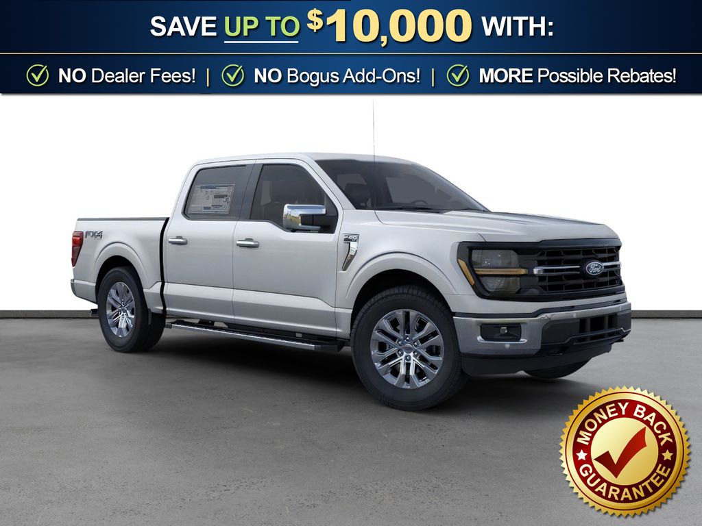 Iconic Silver Metallic 2026 Ford F-150 XLT NFT 4WD 10-Speed Automatic 3.5L V6 EcoBoost 4WD, 18" Painted Aluminum Wheels, 4 Pickup Box Tie-Down Plates, 4-Wheel Disc Brakes, 7 Speakers, ABS brakes, Air Conditioning, Alloy wheels, AM/FM radio: SiriusXM with 360L, Auto High-beam Headlights, Bed Storage Boxes, Bed Utility Package, Brake assist, Bumpers: body-color, Cloth 40/20/40 Front Seat, Compass, Delay-off headlights, Driver door bin, Driver vanity mirror, Dual front impact airbags, Dual front side impact airbags, Electronic Stability Control, Emergency communication system: SYNC 4 911 Assist, Front anti-roll bar, Front Center Armrest, Front fog lights, Front License Plate Bracket, Front reading lights, Front wheel independent suspension, Fully automatic headlights, FX4 Off-Road Package, Heated door mirrors, Illuminated entry, Internet access capable: 5G Modem - Ford Connectivity Package, LED Box Lighting, Low tire pressure warning, Occupant sensing airbag, Outside temperature display, Overhead airbag, Overhead console, Panic alarm, Passenger door bin, Passenger vanity mirror, Power door mirrors, Power steering, Power windows, Radio data system, Radio: AM/FM Stereo with SiriusXM 360L, Rear reading lights, Rear step bumper, Rear window defroster, Remote keyless entry, Security system, Speed control, Split folding rear seat, Steering wheel mounted audio controls, SYNC 4 with Enhanced Voice Recognition, Tachometer, Tailgate Step with Work Surface, Telescoping steering wheel, Tilt steering wheel, Tow/Haul Package, Traction control, Trip computer, Variably intermittent wipers, XLT Chrome Appearance Package, 4WD.