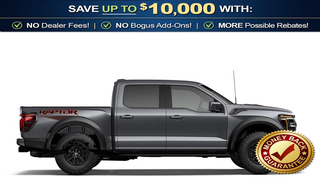 Carbonized Gray Metallic 2026 Ford F-150 Raptor NFT 4WD 10-Speed Automatic 3.5L V6 EcoBoost 4WD, 14 Speakers, 17" Cast Aluminum Wheels, 4-Wheel Disc Brakes, ABS brakes, Adjustable pedals, Air Conditioning, Alloy wheels, AM/FM radio: SiriusXM with 360L, Auto High-beam Headlights, Auto tilt-away steering wheel, Auto-dimming door mirrors, Auto-dimming Rear-View mirror, Automatic temperature control, Brake assist, Bumpers: body-color, Compass, Delay-off headlights, Driver door bin, Driver vanity mirror, Driver's Side SecuriCode Keyless-Entry Keypad, Dual front impact airbags, Dual front side impact airbags, Electronic Locking with 4.10 Axle Ratio, Electronic Stability Control, Emergency communication system: SYNC 4 911 Assist, Ford Connectivity Package (1-Year Included), Front anti-roll bar, Front Bucket Seats, Front Center Armrest, Front dual zone A/C, Front fog lights, Front License Plate Bracket, Front reading lights, Front wheel independent suspension, Fully automatic headlights, Garage door transmitter, Heated door mirrors, Heated front seats, Heated rear seats, Heated steering wheel, Illuminated entry, Internet access capable: 5G Modem - Ford Connectivity Package, Lane Departure Warning System, Leather steering wheel, Leather Trimmed Seats, Low tire pressure warning, Memory seat, Navigation system: Connected Navigation, Occupant sensing airbag, Outside temperature display, Overhead airbag, Overhead console, Panic alarm, Passenger door bin, Passenger vanity mirror, Pedal memory, Power door mirrors, Power driver seat, Power passenger seat, Power steering, Power windows, Radio data system, Radio: B&O Unleashed Sound System by Bang & Olufsen, Rain sensing wipers, Rear reading lights, Rear step bumper, Rear window defroster, RECARO with Code Orange Stitching Front Seats, Remote keyless entry, Security system, Speed control, Speed-sensing steering, Split folding rear seat, Steering wheel memory, Steering wheel mounted audio controls, SYNC 4 with Enhanced Voice Recognition, Tachometer, Telescoping steering wheel, Tilt steering wheel, Traction control, Trip computer, Turn signal indicator mirrors, Twin Panel Moonroof, Variably intermittent wipers, Ventilated front seats, 4WD.