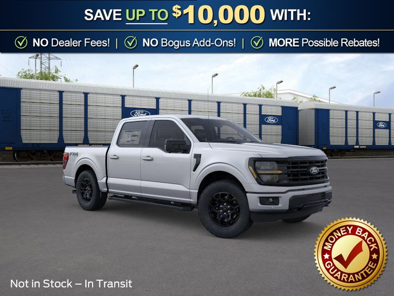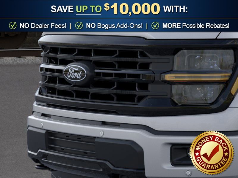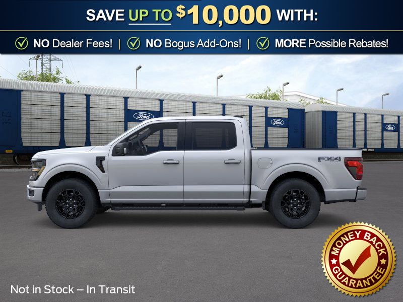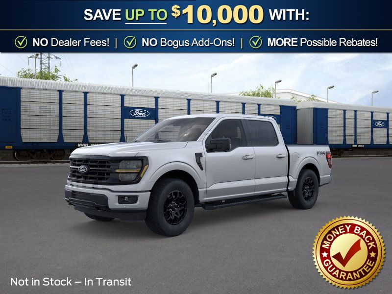 Iconic Silver Metallic 2026 Ford F-150 XLT NFT 4WD 10-Speed Automatic 5.0L V8 4WD, 18" Painted Aluminum Wheels, 4-Wheel Disc Brakes, 6 Speakers, ABS brakes, Air Conditioning, Alloy wheels, AM/FM radio: SiriusXM with 360L, Auto High-beam Headlights, Brake assist, Bumpers: body-color, Compass, Delay-off headlights, Driver door bin, Driver vanity mirror, Dual front impact airbags, Dual front side impact airbags, Electronic Stability Control, Emergency communication system: SYNC 4 911 Assist, Ford Connectivity Package (1-Year Included), Front anti-roll bar, Front Center Armrest, Front fog lights, Front License Plate Bracket, Front reading lights, Front wheel independent suspension, Fully automatic headlights, FX4 Off-Road Package, Heated door mirrors, Illuminated entry, Internet access capable: 5G Modem - Ford Connectivity Package, Low tire pressure warning, Occupant sensing airbag, Outside temperature display, Overhead airbag, Overhead console, Panic alarm, Passenger door bin, Passenger vanity mirror, Power door mirrors, Power steering, Power windows, Radio data system, Radio: AM/FM Stereo with SiriusXM 360L, Rear Parking Sensors, Rear reading lights, Rear step bumper, Rear window defroster, Remote keyless entry, Security system, Speed control, Split folding rear seat, Steering wheel mounted audio controls, SYNC 4 with Enhanced Voice Recognition, Tachometer, Telescoping steering wheel, Tilt steering wheel, Tow/Haul Package, Traction control, Trip computer, Unique Sport Cloth 40/Console/40 Front-Seats, Variably intermittent wipers, XLT Black Appearance Package, 4WD.