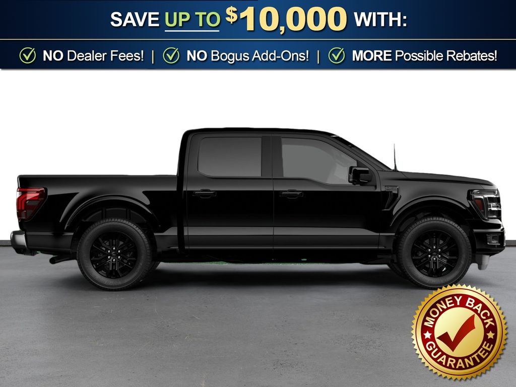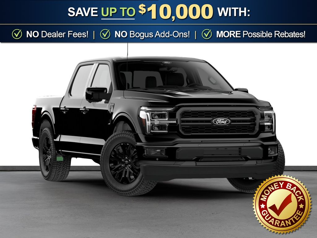 Agate Black Metallic 2026 Ford F-150 Lariat NFT 4WD 10-Speed Automatic 3.5L V6 EcoBoost 4WD, 4-Wheel Disc Brakes, 4x4 FX4 Off-Road Bodyside Decal, 8 Speakers, ABS brakes, ActiveX Trimmed Bucket Seats, Air Conditioning, Alloy wheels, AM/FM radio: SiriusXM with 360L, Auto High-beam Headlights, Auto-dimming door mirrors, Auto-dimming Rear-View mirror, Automatic temperature control, Black Exterior Badging, Black Grille, Black Taillamp Bezels, Body-Color Front and Rear Bumpers, Body-Color Skull Caps and Door Handles, Brake assist, Bumpers: chrome, Chrome wheels, Compass, Dark Interior Appliques, Delay-off headlights, Driver door bin, Driver vanity mirror, Dual front impact airbags, Dual front side impact airbags, Electronic Stability Control, Emergency communication system: SYNC 4 911 Assist, Ford Connectivity Package (1-Year Included), Front anti-roll bar, Front Bucket Seats, Front Center Armrest, Front dual zone A/C, Front fog lights, Front License Plate Bracket, Front reading lights, Front wheel independent suspension, Fully automatic headlights, FX4 Off-Road Package, Garage door transmitter, Gray Box Side Decal, Heated door mirrors, Heated front seats, Heated steering wheel, Hill Descent Control, Illuminated entry, Integrated Trailer Brake Controller, Internet access capable: 5G Modem - Ford Connectivity Package, Lariat Black Appearance Package, Low tire pressure warning, Memory seat, Monotube Rear Shocks, Navigation system: Connected Navigation, Occupant sensing airbag, Off-Road Tuned Front Shock Absorbers, Outside temperature display, Overhead airbag, Overhead console, Panic alarm, Passenger door bin, Passenger vanity mirror, Power door mirrors, Power driver seat, Power passenger seat, Power steering, Power windows, Radio data system, Radio: B&O Sound System by Bang and Olufsen, Rain sensing wipers, Rear reading lights, Rear seat center armrest, Rear step bumper, Rear window defroster, Remote keyless entry, Security system, Speed control, Split folding rear seat, Steering wheel mounted audio controls, SYNC 4 with Enhanced Voice Recognition, Tachometer, Telescoping steering wheel, Tilt steering wheel, Tow/Haul Package, Traction control, Tray Style Floor Liner Without Carpet Mats, Trip computer, Turn signal indicator mirrors, Twin Panel Moonroof, Variably intermittent wipers, Ventilated front seats, Wheels: 18" Chrome-Like PVD, 4WD.