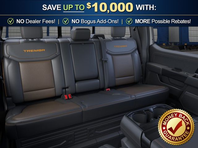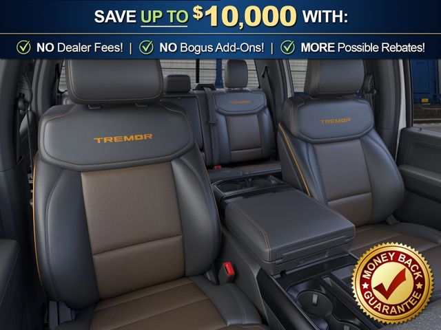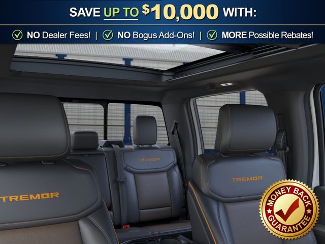 2026 Ford F-150 Tremor NFT Oxford White Tremor NFT 4WD 10-Speed Automatic 5.0L V8 4WD, 4 Pickup Box Tie-Down Plates, 4-Wheel Disc Brakes, 8 Speakers, ABS brakes, Adjustable pedals, Air Conditioning, Alloy wheels, AM/FM radio: SiriusXM with 360L, Auto High-beam Headlights, Auto-dimming Rear-View mirror, Automatic temperature control, Bed Utility Package, Brake assist, Bumpers: body-color, Compass, Console Worksurface, Delay-off headlights, Driver door bin, Driver vanity mirror, Driver's Side SecuriCode Keyless-Entry Keypad, Dual front impact airbags, Dual front side impact airbags, Electronic Locking with 3.73 Axle Ratio, Electronic Stability Control, Emergency communication system: SYNC 4 911 Assist, Ford Connectivity Package (1-Year Included), Front anti-roll bar, Front Bucket Seats, Front Center Armrest, Front dual zone A/C, Front fog lights, Front reading lights, Front wheel independent suspension, Fully automatic headlights, GVWR: 7,050 lbs Payload Package, Heated door mirrors, Heated front seats, Illuminated entry, Integrated Trailer Brake Controller, Internet access capable: 5G Modem - Ford Connectivity Package, LED Box Lighting, Low tire pressure warning, Mobile Office Package, Navigation system: Connected Navigation, Occupant sensing airbag, Outside temperature display, Overhead airbag, Overhead console, Panic alarm, Partitioned Lockable Rear Storage, Passenger door bin, Passenger vanity mirror, Power door mirrors, Power driver seat, Power passenger seat, Power steering, Power Tailgate, Power windows, Radio data system, Radio: B&O Sound System by Bang and Olufsen, Rear reading lights, Rear step bumper, Rear window defroster, Remote keyless entry, Security system, Speed control, Split folding rear seat, Steering wheel mounted audio controls, SYNC 4 with Enhanced Voice Recognition, Tachometer, Tailgate Step with Work Surface, Telescoping steering wheel, Tilt steering wheel, Tow/Haul Package, Traction control, Trip computer, Turn signal indicator mirrors, Twin Panel Moonroof, Unique Sport Cloth 40/Console/40 Power Front Seat, Unique Tremor Leather-Trimmed Seats, Variably intermittent wipers, Wheels: 18" Alloy with Dark Matte Finish, Wireless Charging, 4WD.