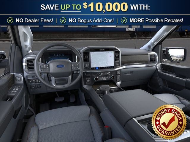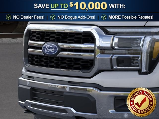 2026 Ford F-150 Lariat NFT Iconic Silver Metallic Lariat NFT 4WD 10-Speed Automatic 5.0L V8 4WD, 4-Wheel Disc Brakes, 4x4 FX4 Off-Road Bodyside Decal, 8 Speakers, ABS brakes, Air Conditioning, Alloy wheels, AM/FM radio: SiriusXM with 360L, Auto High-beam Headlights, Auto-dimming door mirrors, Auto-dimming Rear-View mirror, Automatic temperature control, Brake assist, Bumpers: chrome, Chrome wheels, Compass, Delay-off headlights, Driver door bin, Driver vanity mirror, Dual front impact airbags, Dual front side impact airbags, Electronic Stability Control, Emergency communication system: SYNC 4 911 Assist, Ford Connectivity Package (1-Year Included), Front anti-roll bar, Front Bucket Seats, Front Center Armrest, Front dual zone A/C, Front fog lights, Front reading lights, Front wheel independent suspension, Fully automatic headlights, FX4 Off-Road Package, Garage door transmitter, Heated door mirrors, Heated front seats, Heated steering wheel, Hill Descent Control, Illuminated entry, Internet access capable: 5G Modem - Ford Connectivity Package, Low tire pressure warning, Memory seat, Monotube Rear Shocks, Navigation system: Connected Navigation, Occupant sensing airbag, Off-Road Tuned Front Shock Absorbers, Outside temperature display, Overhead airbag, Overhead console, Panic alarm, Passenger door bin, Passenger vanity mirror, Power door mirrors, Power driver seat, Power passenger seat, Power steering, Power windows, Radio data system, Radio: B&O Sound System by Bang and Olufsen, Rain sensing wipers, Rear reading lights, Rear seat center armrest, Rear step bumper, Rear window defroster, Remote keyless entry, Security system, Speed control, Split folding rear seat, Steering wheel mounted audio controls, SYNC 4 with Enhanced Voice Recognition, Tachometer, Telescoping steering wheel, Tilt steering wheel, Traction control, Tray Style Floor Liner Without Carpet Mats, Trip computer, Turn signal indicator mirrors, Variably intermittent wipers, Ventilated front seats, Wheels: 18" Chrome-Like PVD, 4WD.